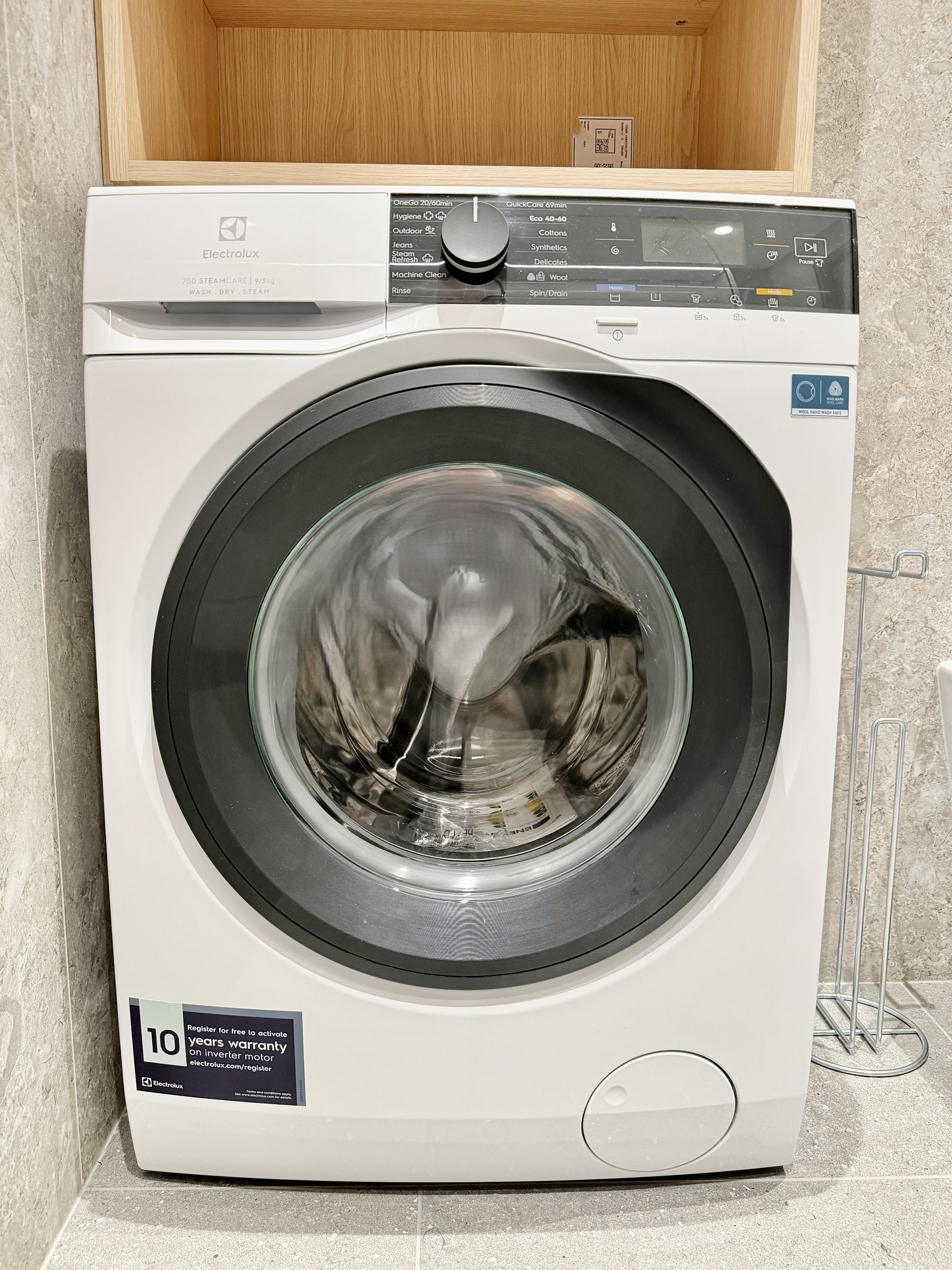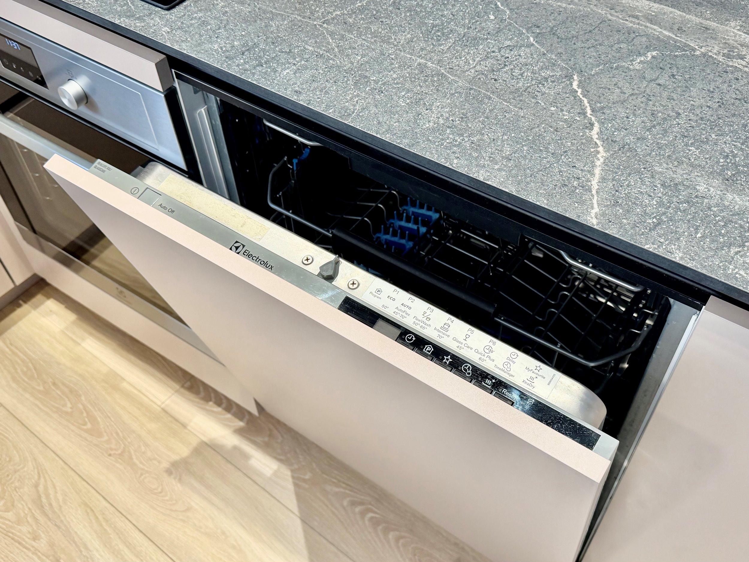 Bute yra visi reikalingiausi baldai: skalbimo mašina su džiovykle, indaplovė, šaldytuvas su šaldikliu, kaitlentė ir t.t.