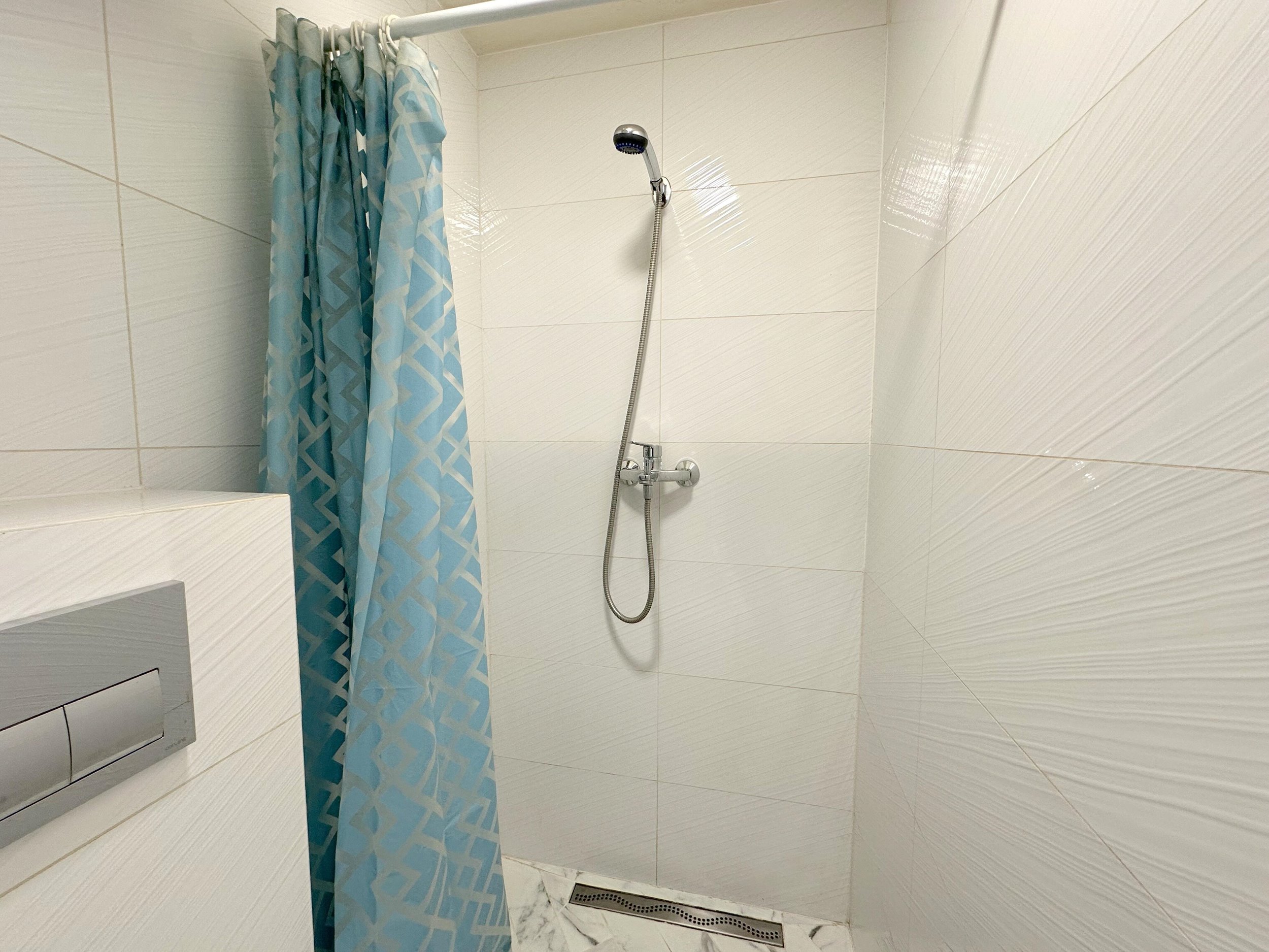 Išplanavimas: miegamasis kambarys su svetaine ir virtuve, tualetas ir dušas.