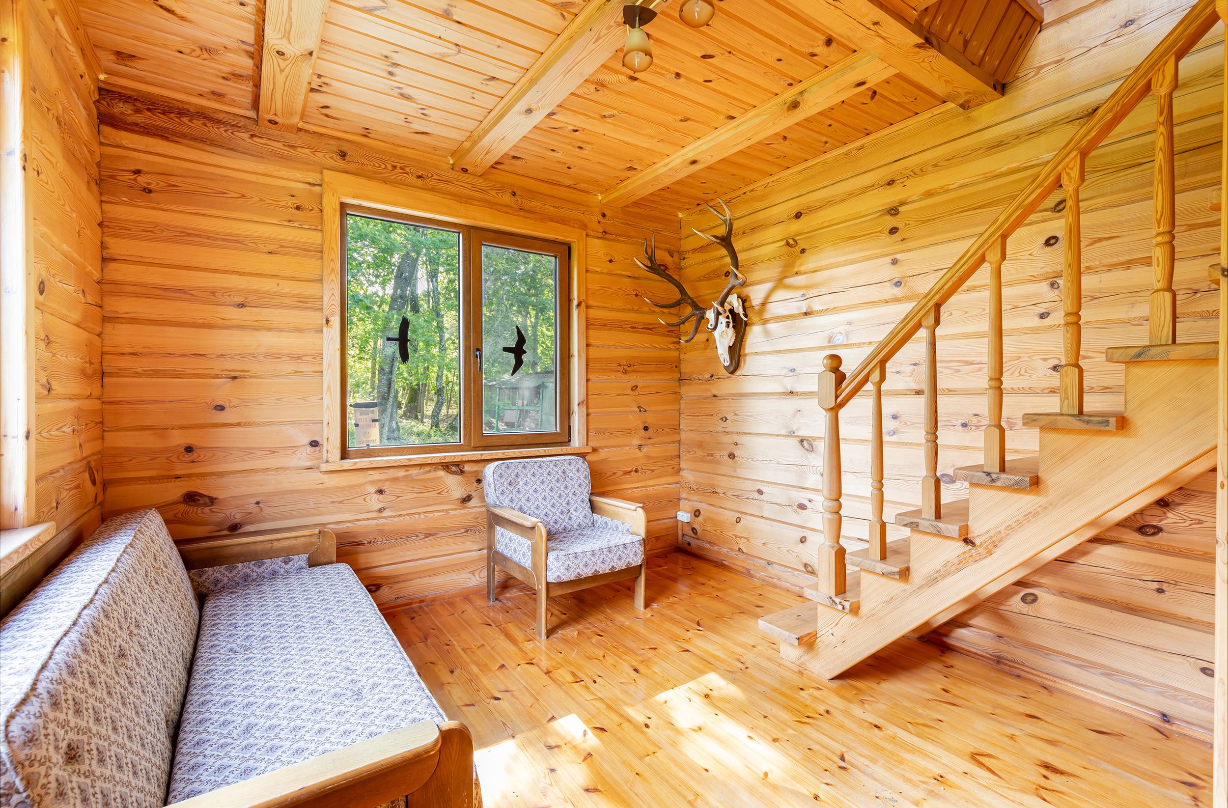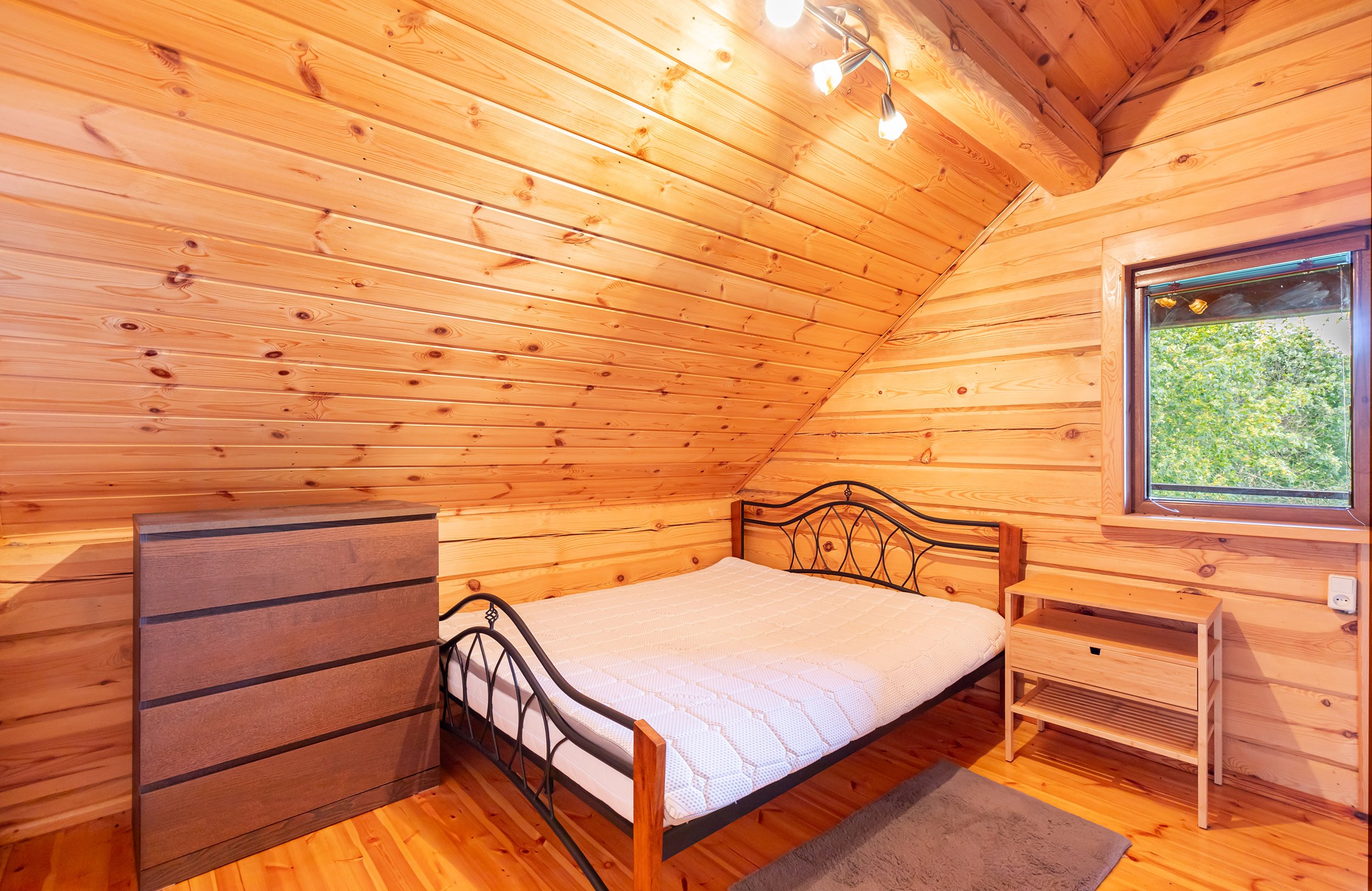 Pagrindinis gyvenamasis namas – dviejų aukštų perlas, kurio bendra plotas siekia 97,38 kv. m. Čia įrengti 7 izoliuoti kambariai, įskaitant erdvią svetainę, atskirą virtuvę su pilnu komplektu buitinių prietaisų (šaldytuvas, skalbimo mašina, indaplovė, viryklė) ir jaukius miegamuosius. Namas pilnai apstatytas ir įrengtas, su balkonu ir terasa, nuo kurių atsiveria kvapą gniaužianti panorama į ežerą. Šildymas organizuotas elektriniais elementais, užtikrinančiais šilumą net pačiomis šalčiausiomis žiemomis.