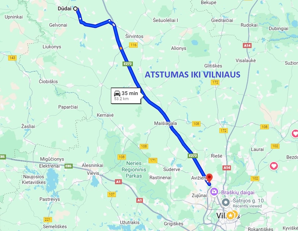 Puiki vieta su patogiu susisiekimu – Dūdų kaimas yra vos 3 km nuo Bagaslaviškio centro, kur rasite artimiausias parduotuves, iki Širvintų miesto yra 16 km, ten galima rasti parduotuves, vaistines, kavines ir kitas kasdienes paslaugas, 22 km atstumas iki Ukmergės miesto. Iki Vilniaus miesto – apie 50 km, o iki Vilniaus oro uosto – maždaug 59 km, nedidelis atstumas iki išvažiavimų į autostradas, tad kelionės į sostinę ar kitus miestus bus greitos ir patogios. Šalia plyti miškai ir ežeras, suteikdami galimybę mėgautis ramybe, bet vis tiek būdami netoli civilizacijos.