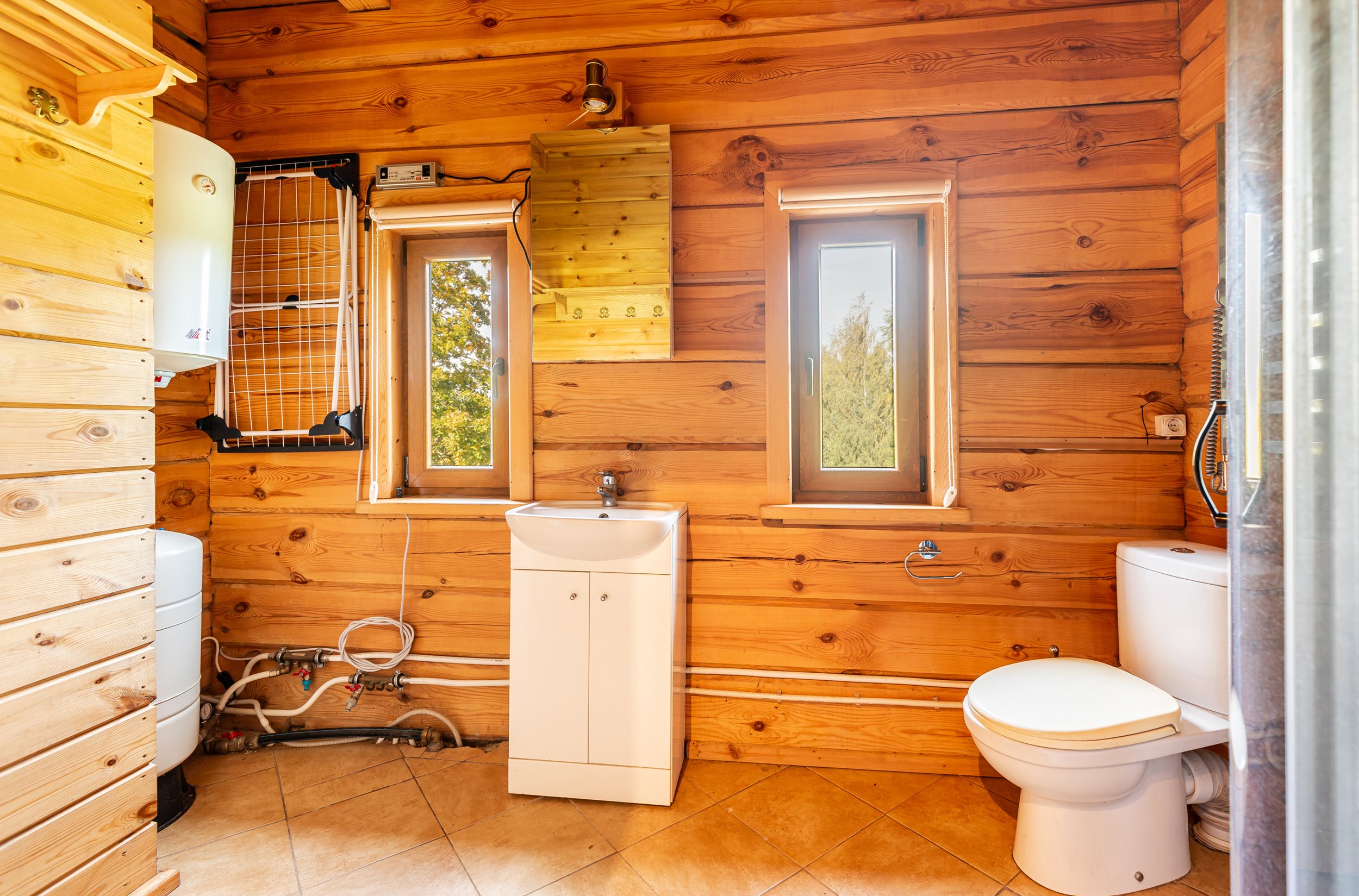Atskirai stovinti pirtis – tikras sielos atgaivinimo centras, užimantis 58 kv. m su 3 kambariais. Joje rasite tradicinę erdvią pirties zoną su dušo kabina, poilsio kambarį, tinkantį romantiškiems vakarams ar šeimos susiėjimams. Šis pastatas ne tik prideda autentiškumo sodybai, bet ir suteikia privatumo – pirtis stovi atskirai, apsupta žalumos, prie pat Gelvės ežero kranto.