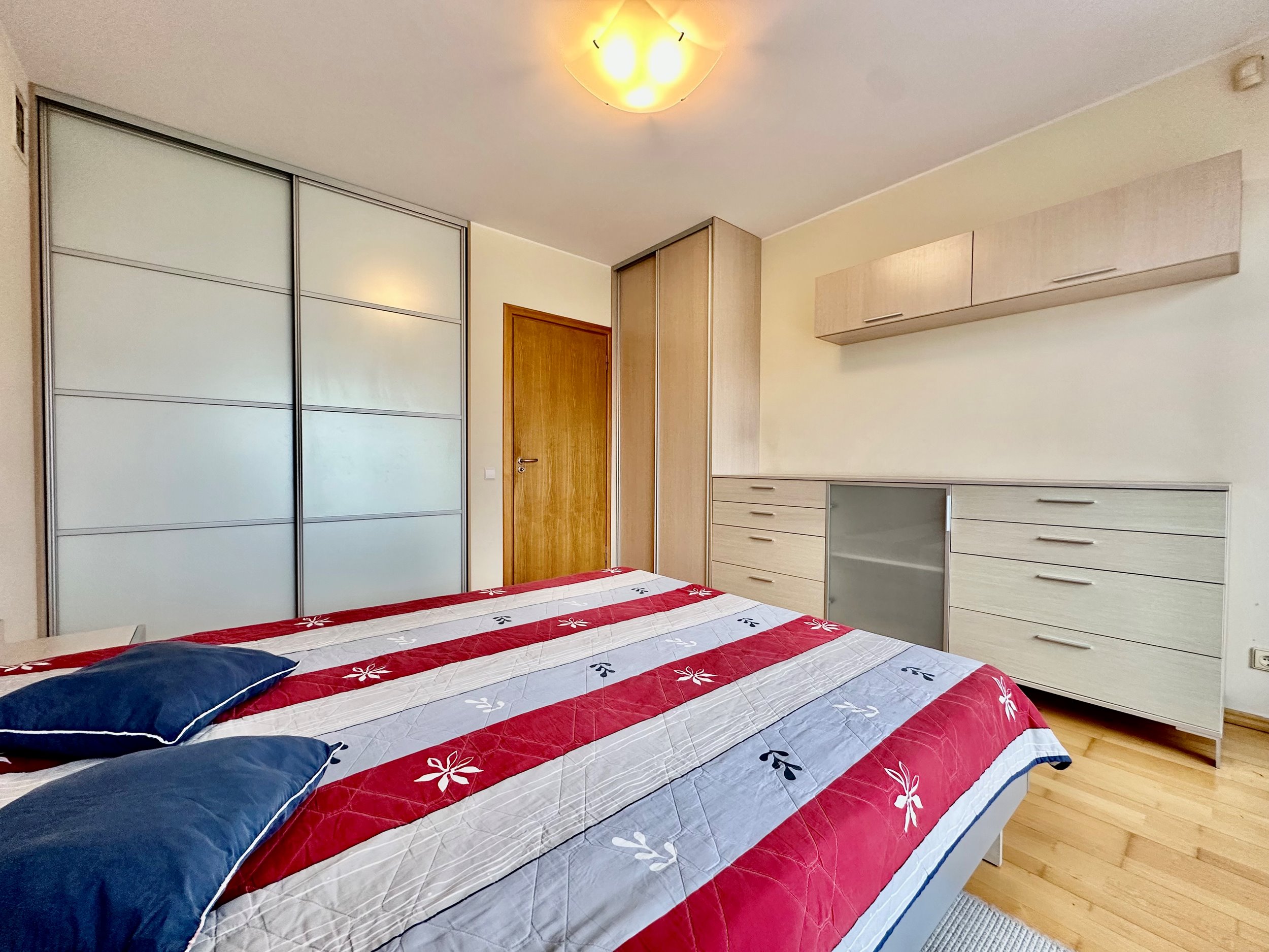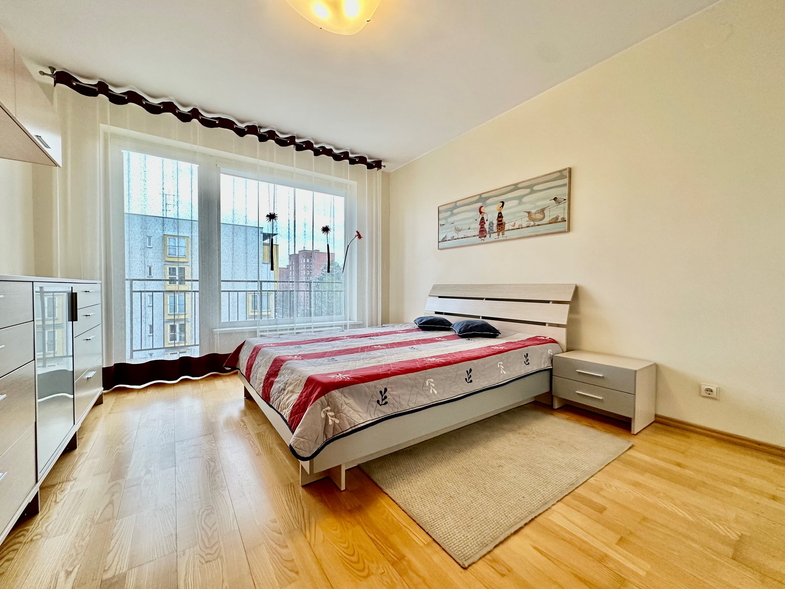 Išplanavimas: svetainė, 2 miegamieji, virtuvė, valgomasis, tualetas ir vonia/dušas atskirai, 2 balkonai.