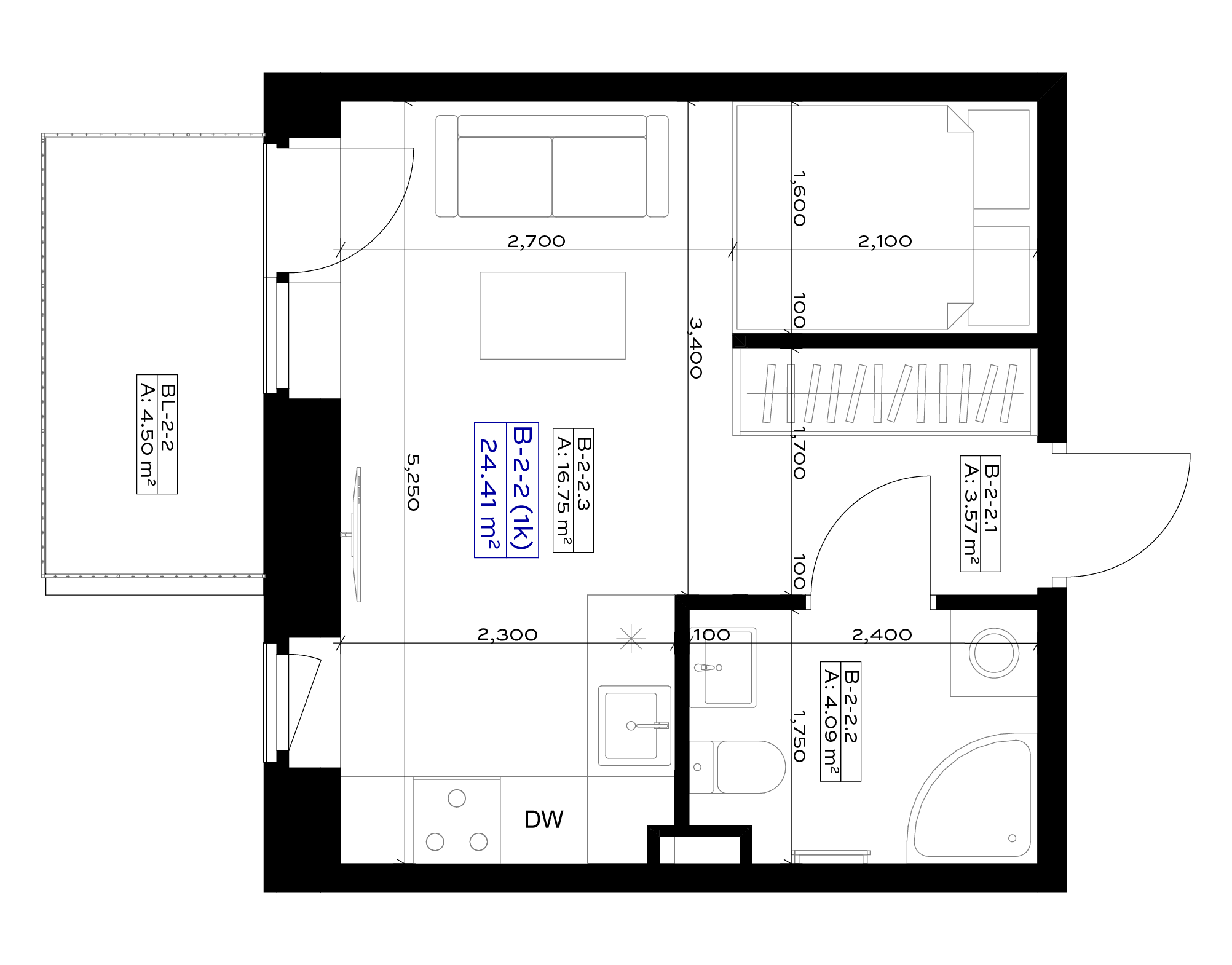 Išplanavimas: svetainė su virtuve, miegamoji niša, tualetas ir dušas, erdvus balkonas, prieškambaris-rūbinė.