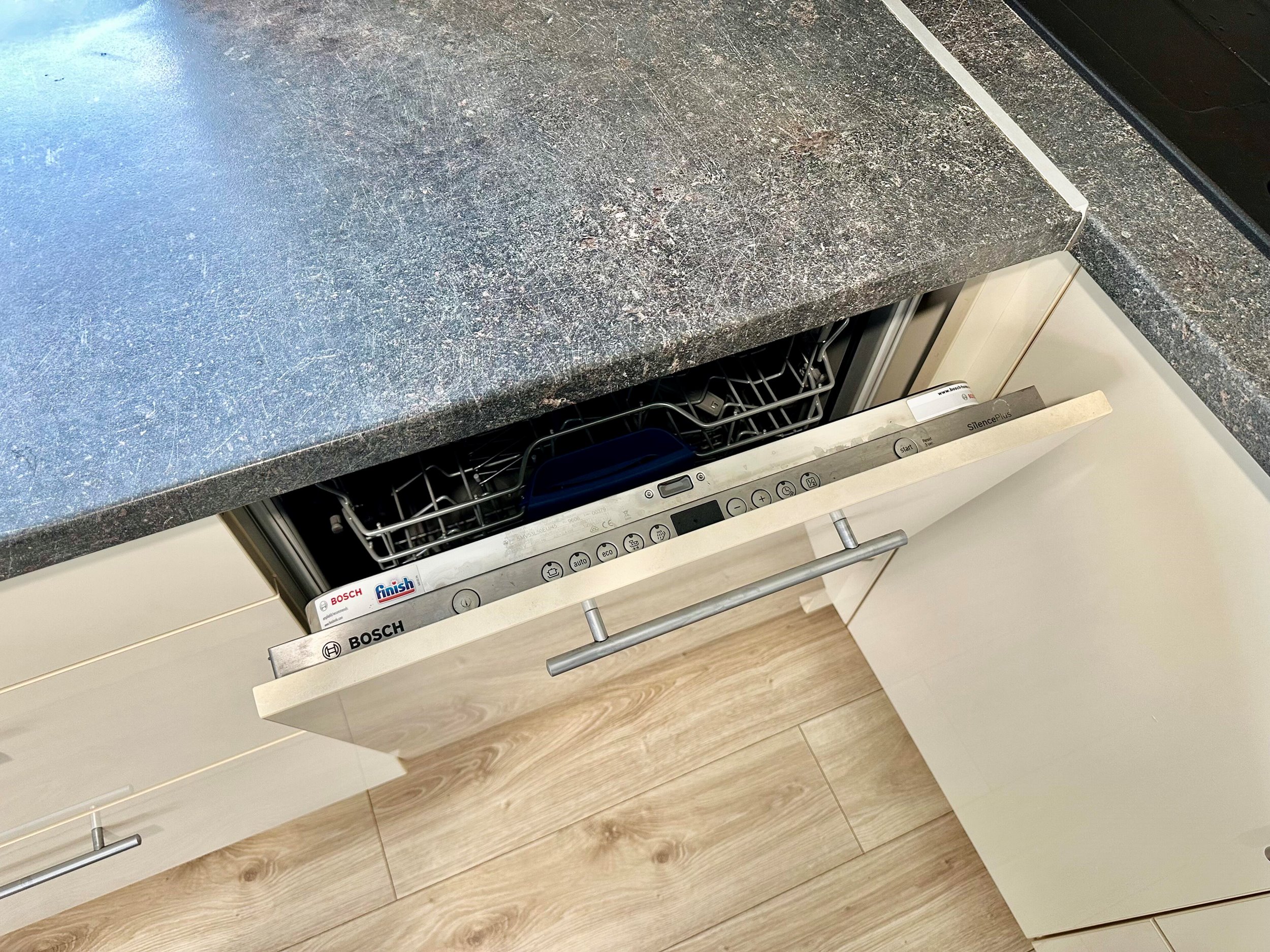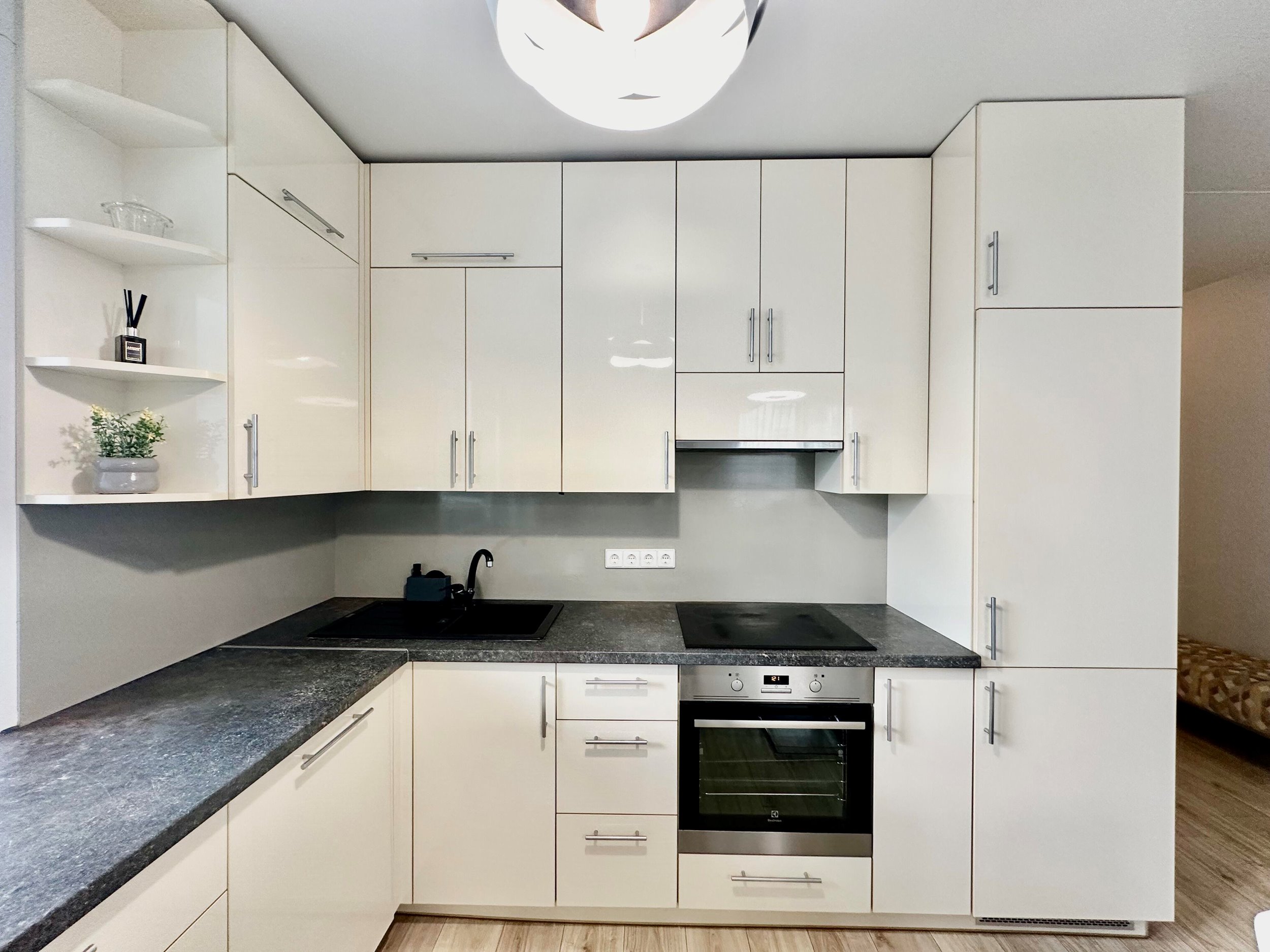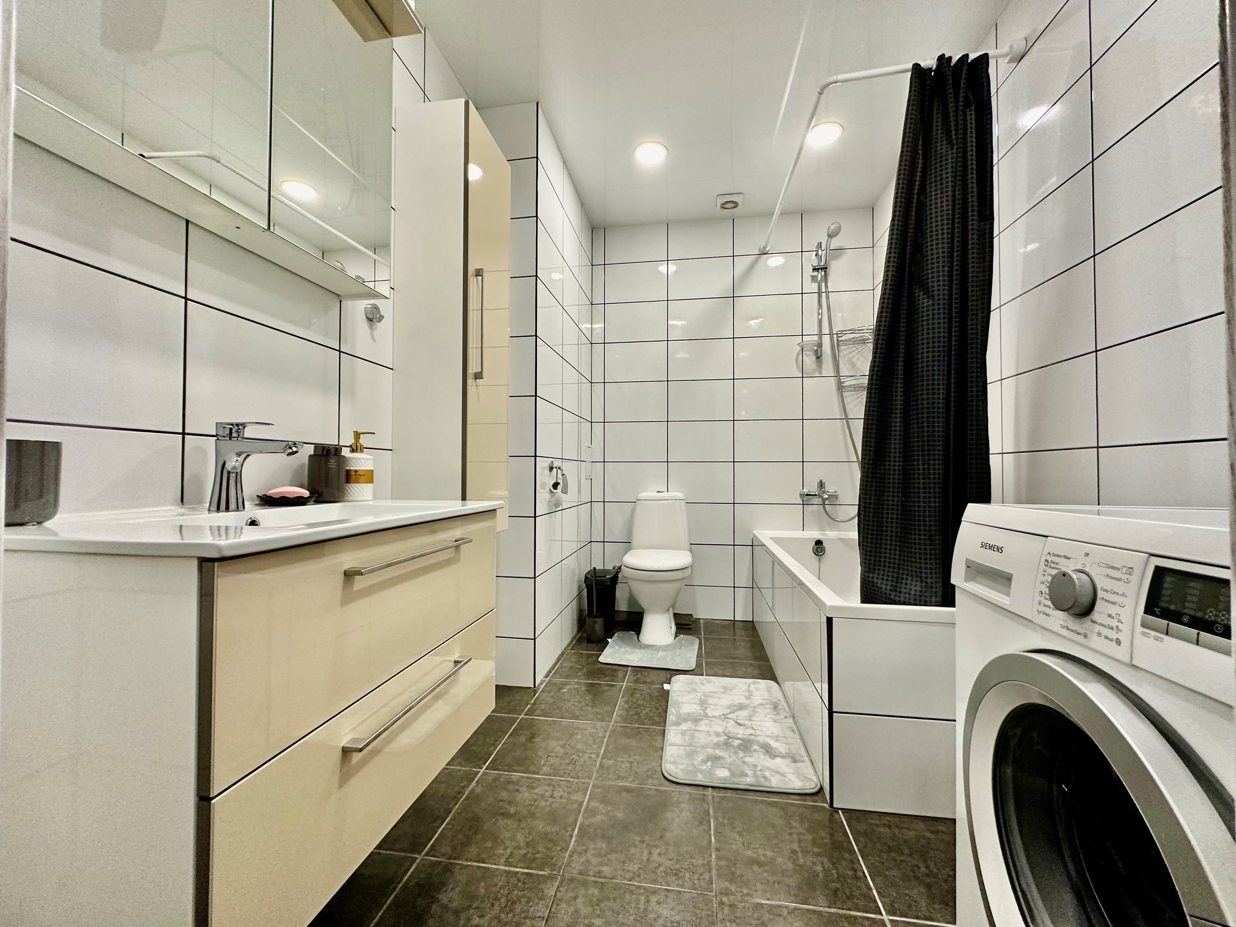 Bute yra visi reikalingiausi baldai: skalbimo mašina, indaplovė, šaldytuvas su šaldikliu, kaitlentė ir t.t.