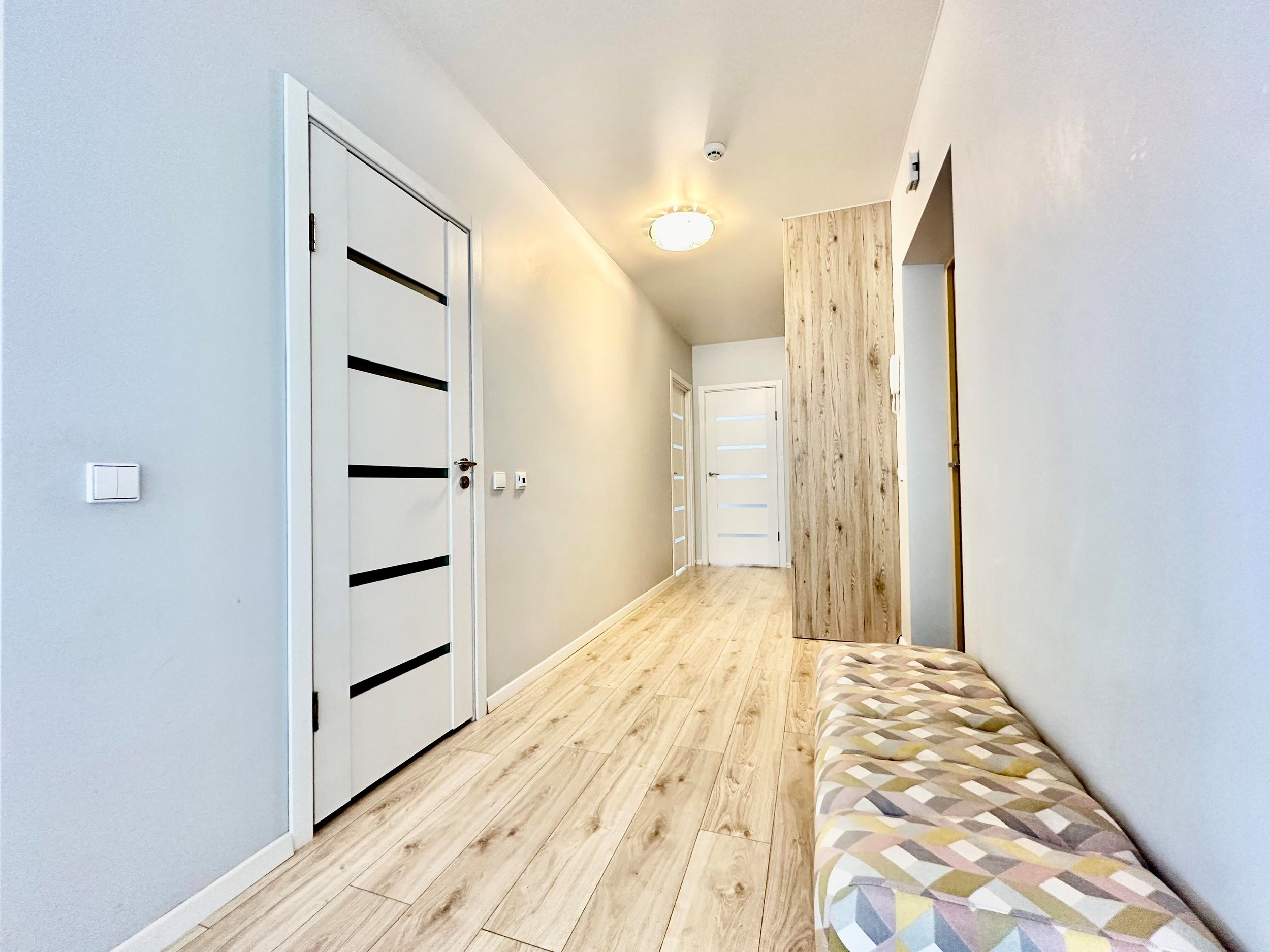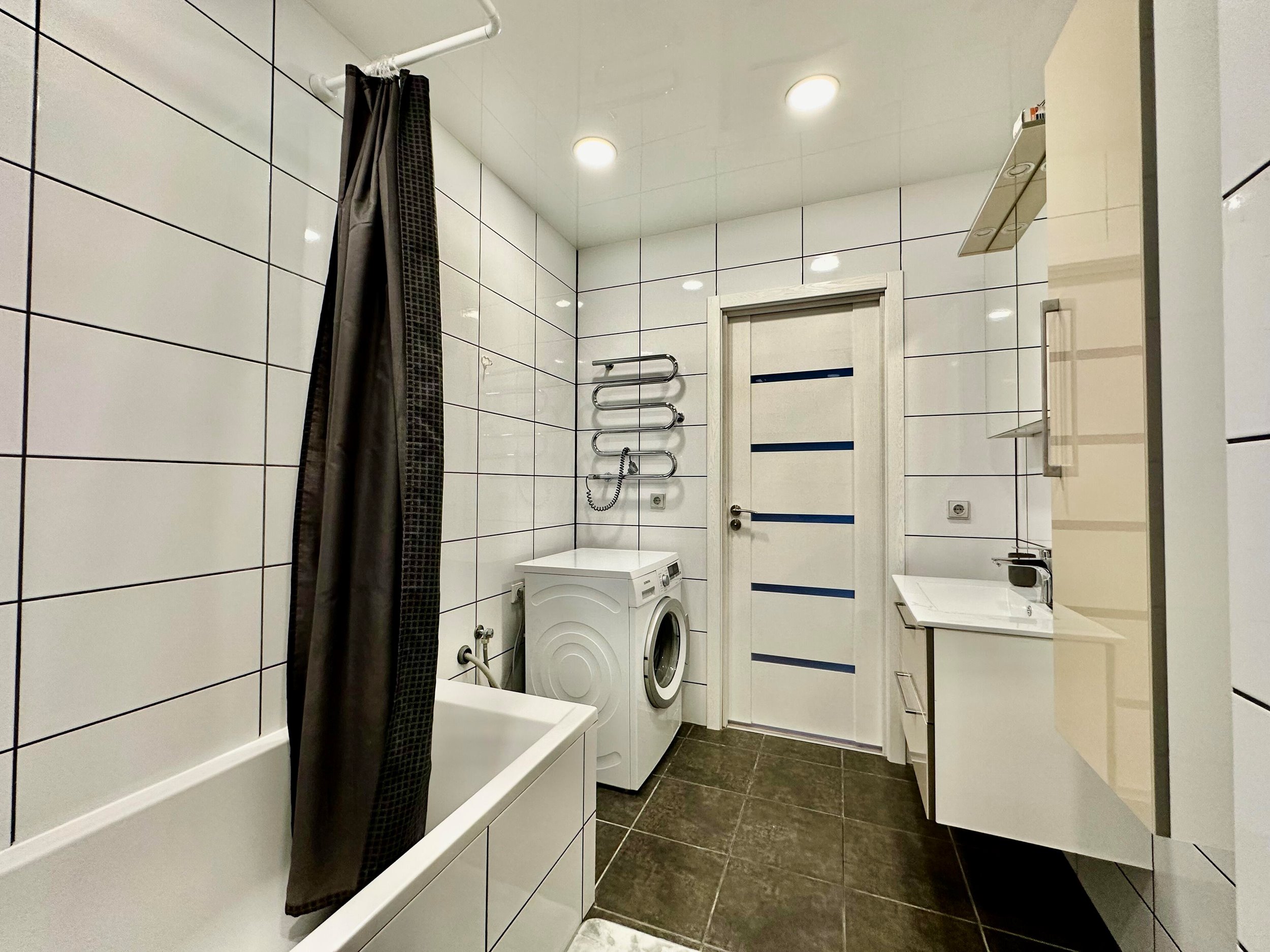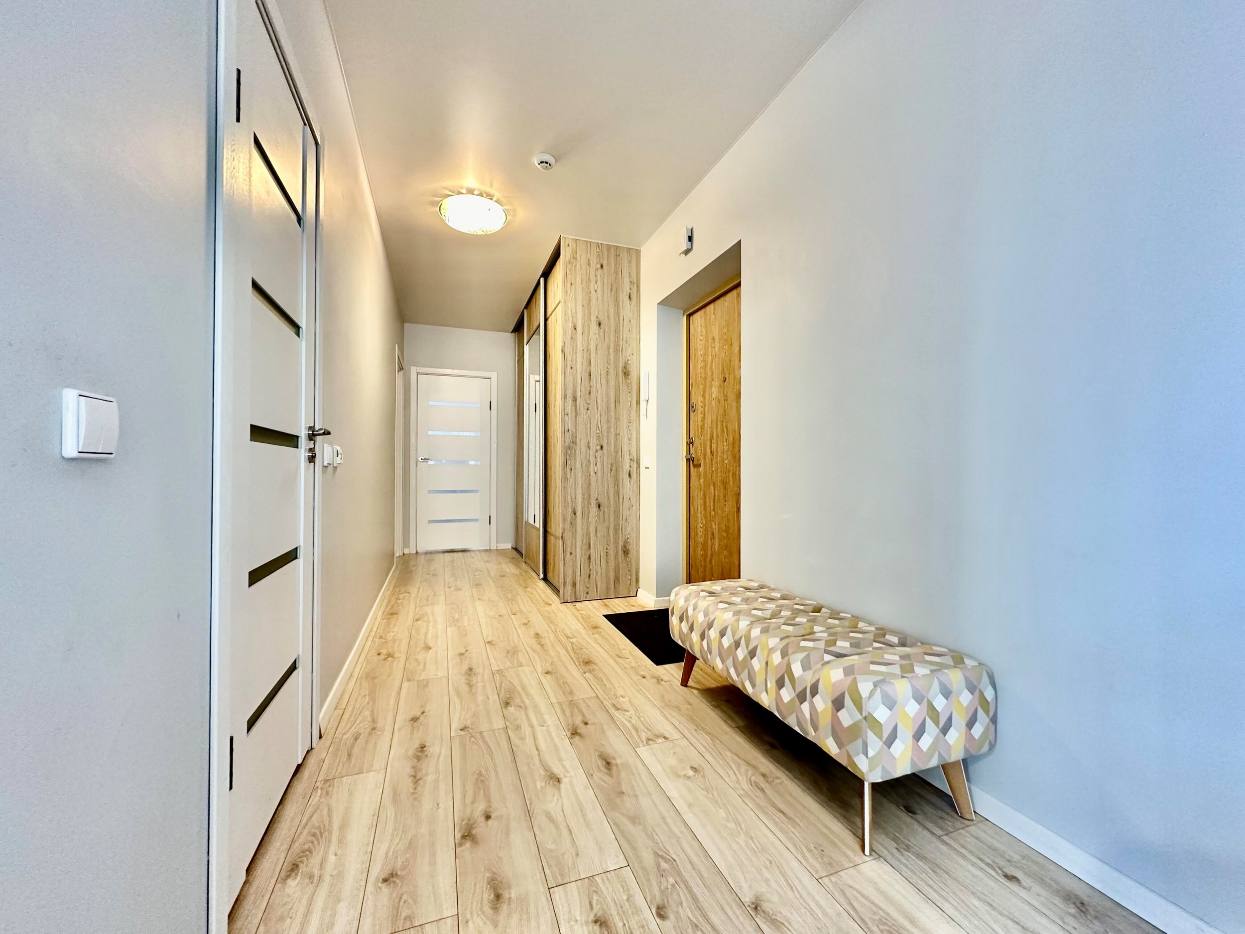 Bute yra visi reikalingiausi baldai: skalbimo mašina, indaplovė, šaldytuvas su šaldikliu, kaitlentė ir t.t.