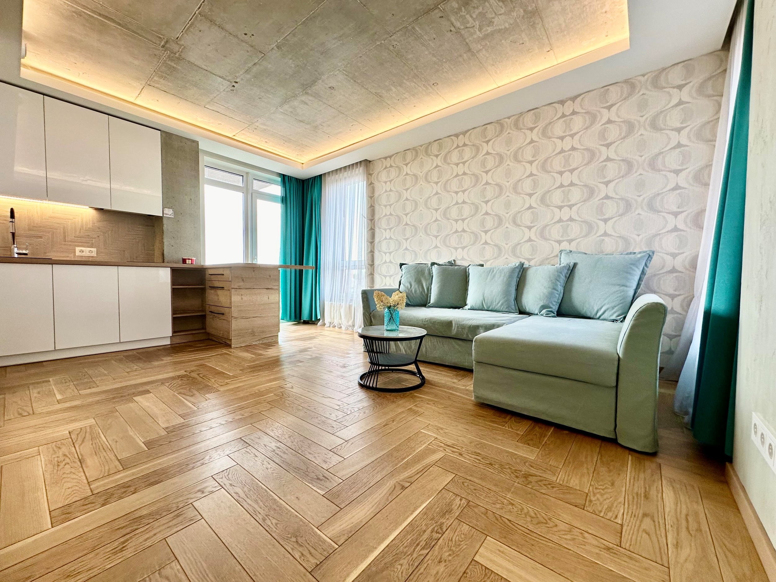 Išplanavimas: svetainė, miegamasis, virtuvė, tualetas ir dušas atskirai, balkonas/terasa.