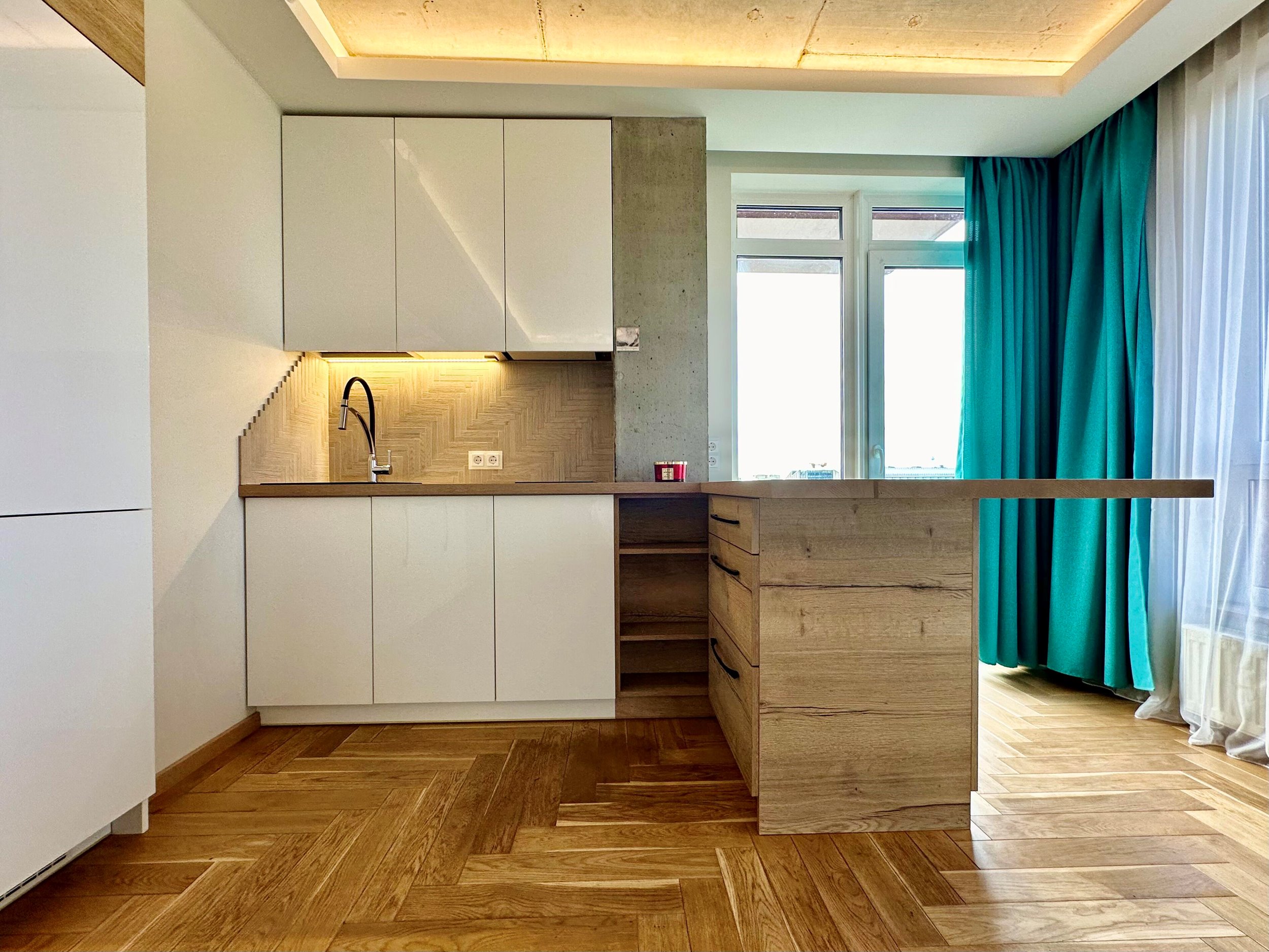 Puikioje, ramioje vietoje, Naujamiestyje, išnuomojamas įrengtas 45 kv.m. ploto, dviejų kambarių jaukus, šviesus butas.