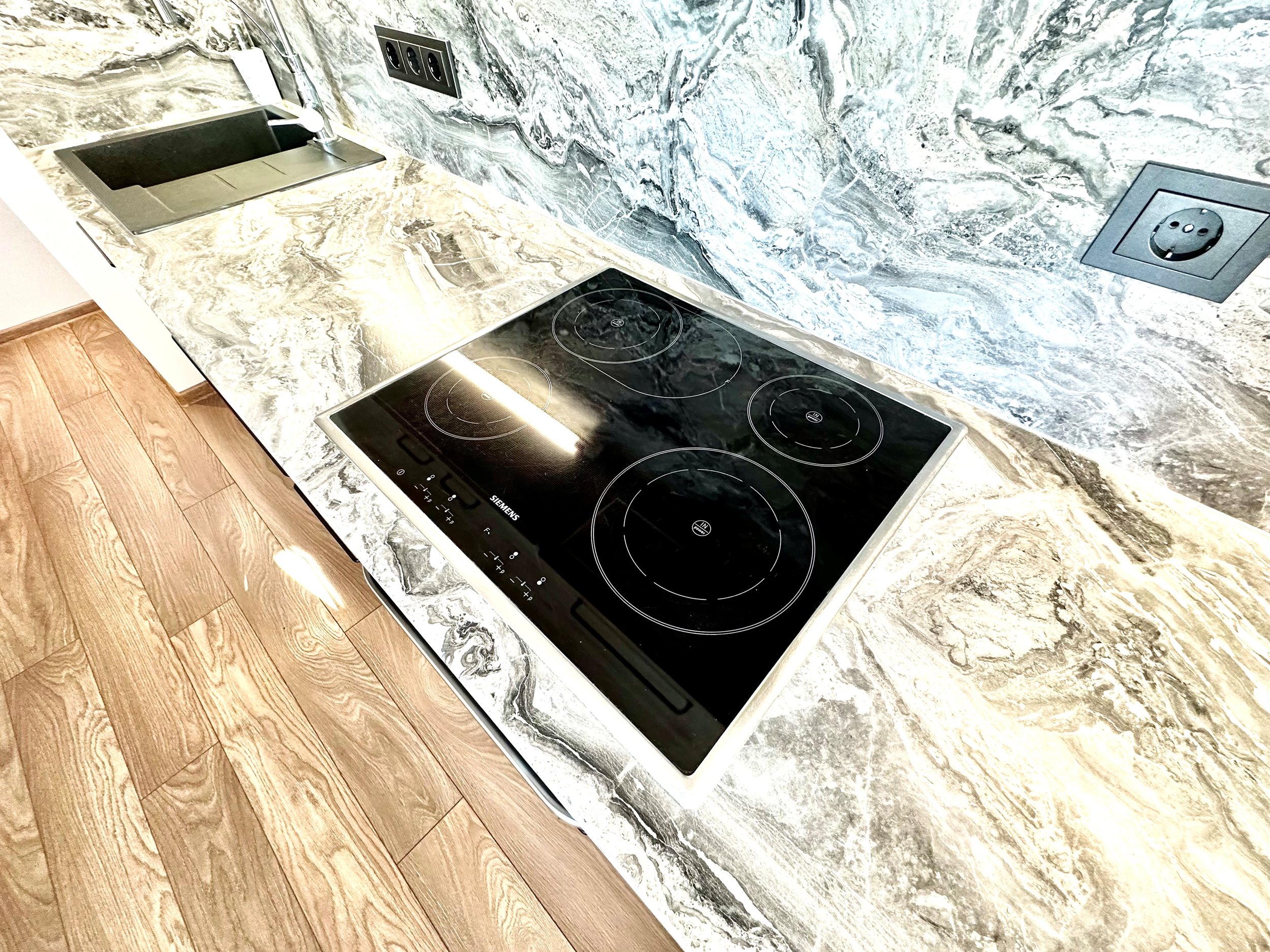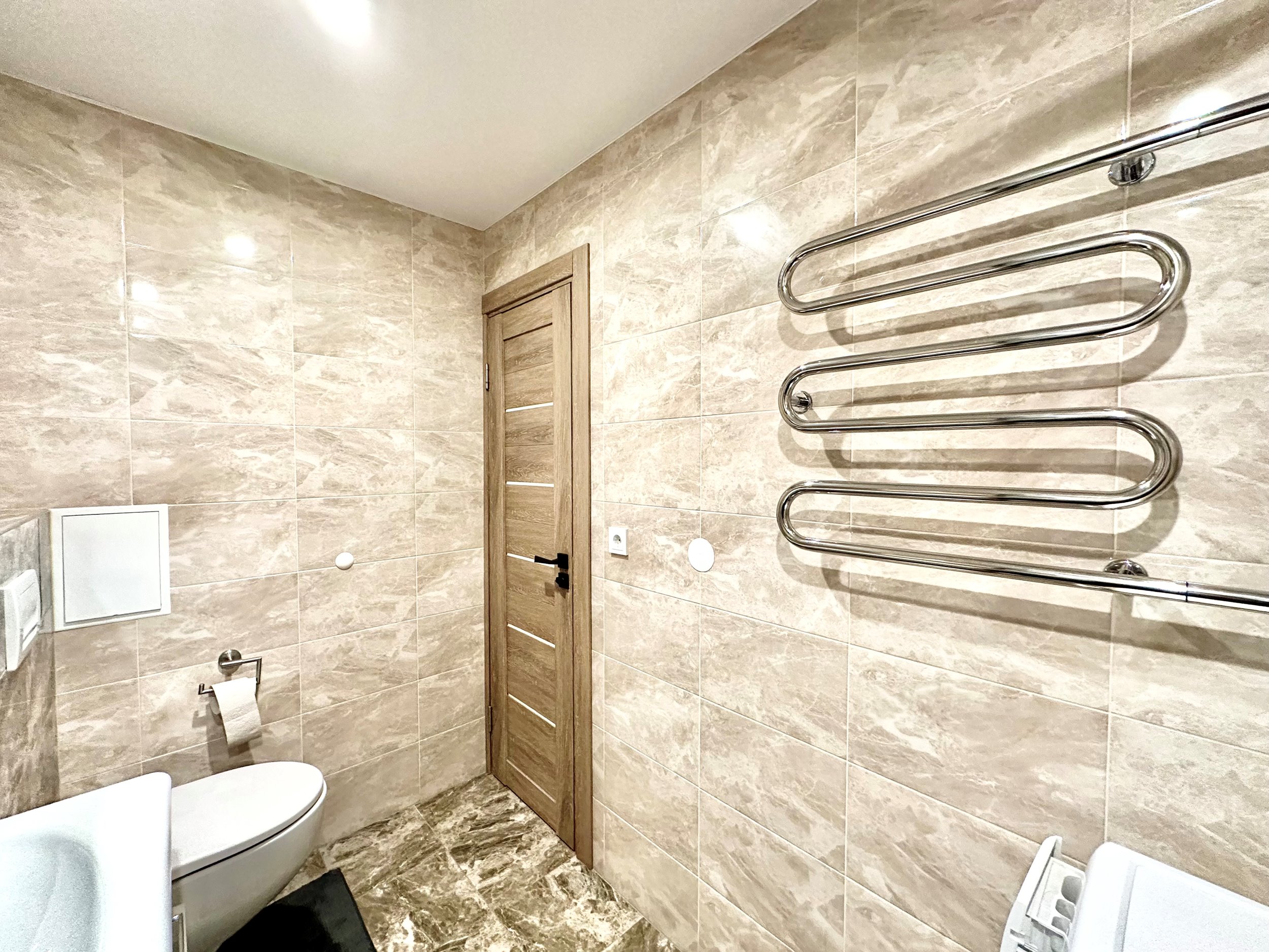 Bute yra visi reikalingiausi baldai: skalbimo mašina, šaldytuvas su šaldikliu, kaitlentė ir t.t.
