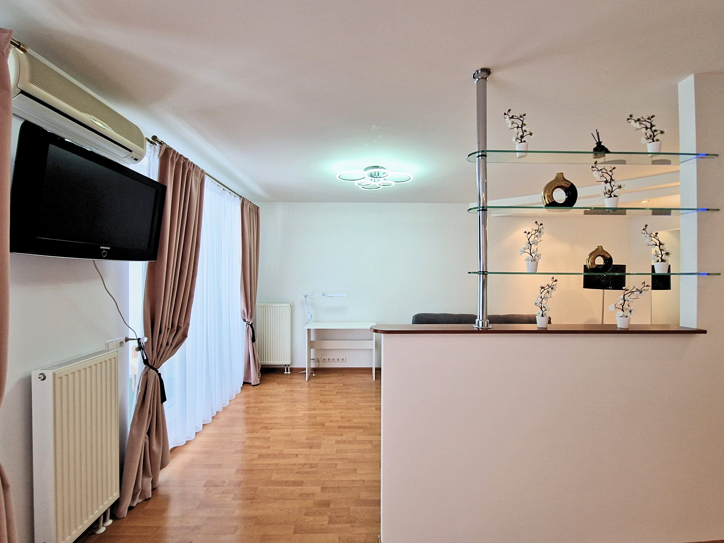 Nuomojamas moderniai ir kokybiškai įrengtas 1 kambario butas Taikos g. 263, Vilniuje. Butas labai erdvus, funkcionalaus išplanavimo, puikiai tinkantis komfortiškam gyvenimui vienam asmeniui ar porai.