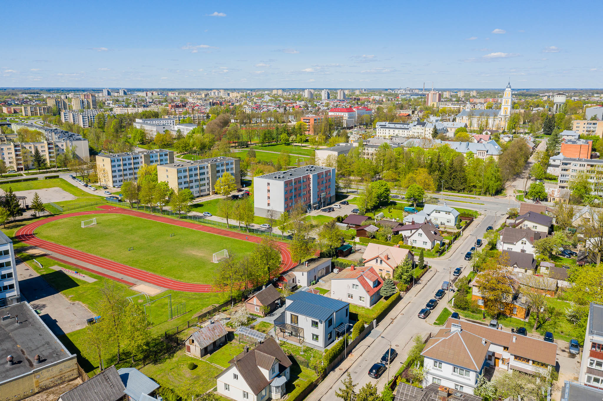 • Kampinis sklypas, ribojasi tik su vienu kaimynu ir stadionu