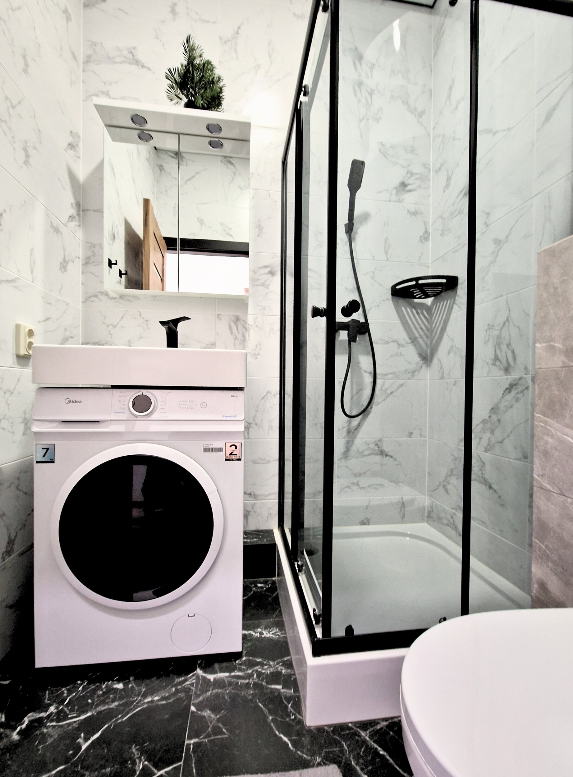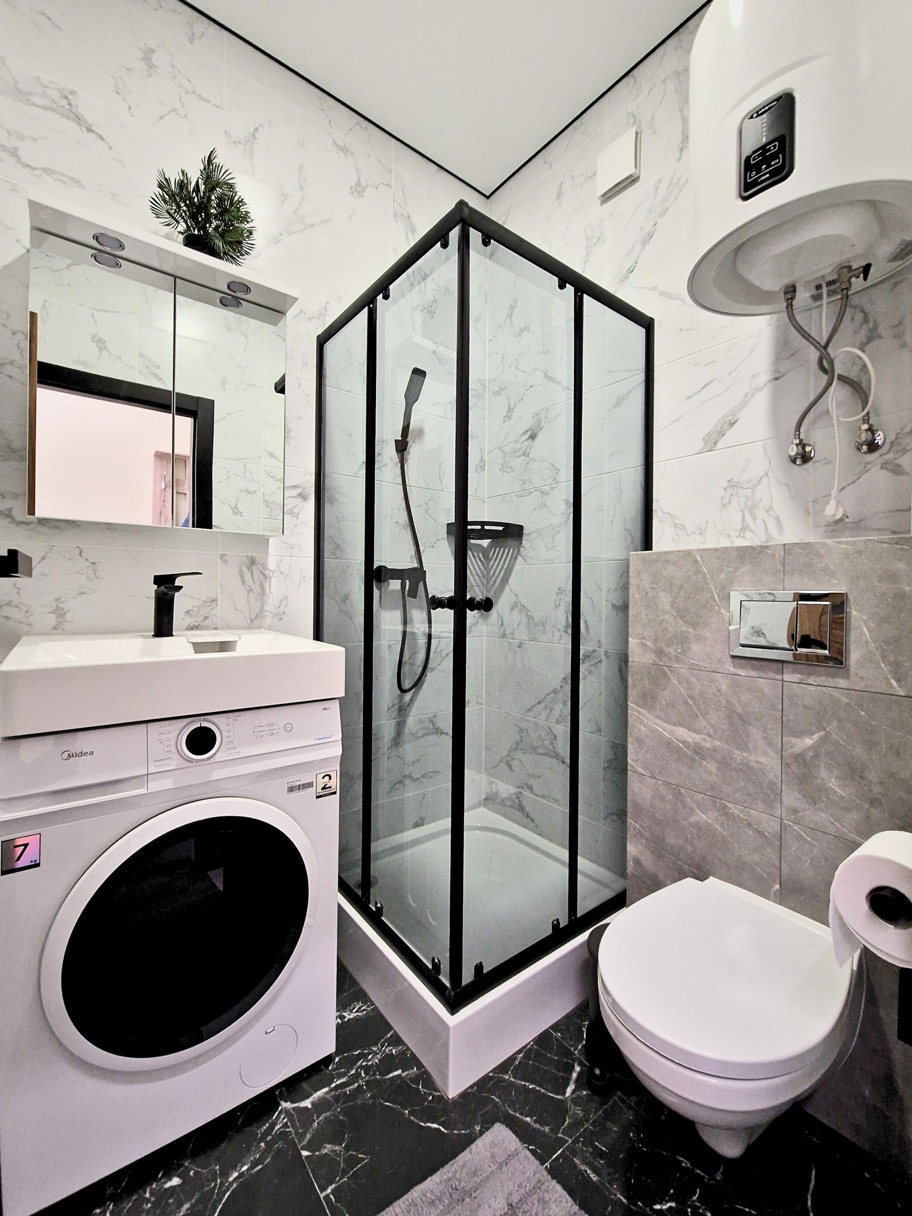 Vonios kambarys su skalbimo mašina ir boileriu;