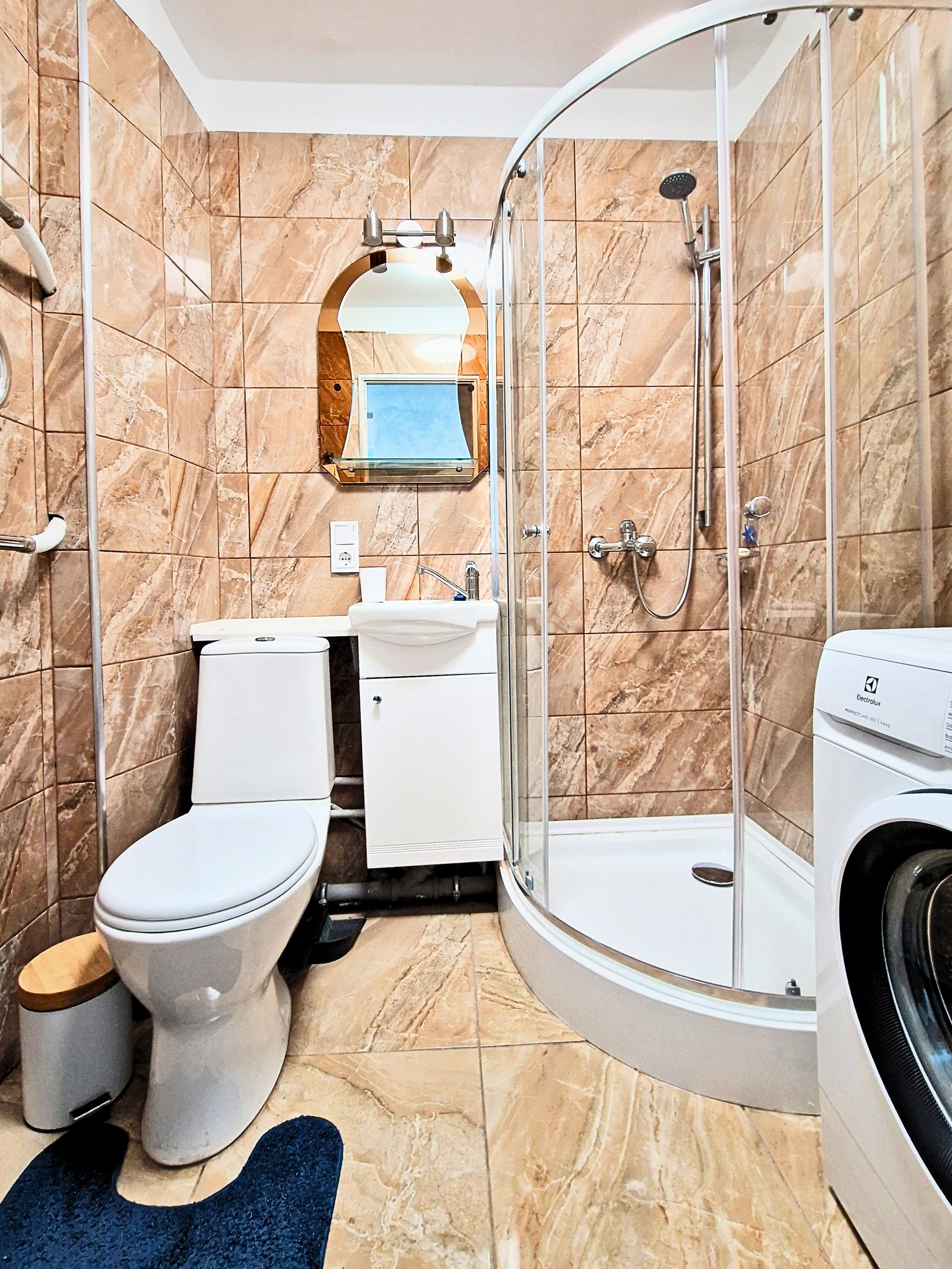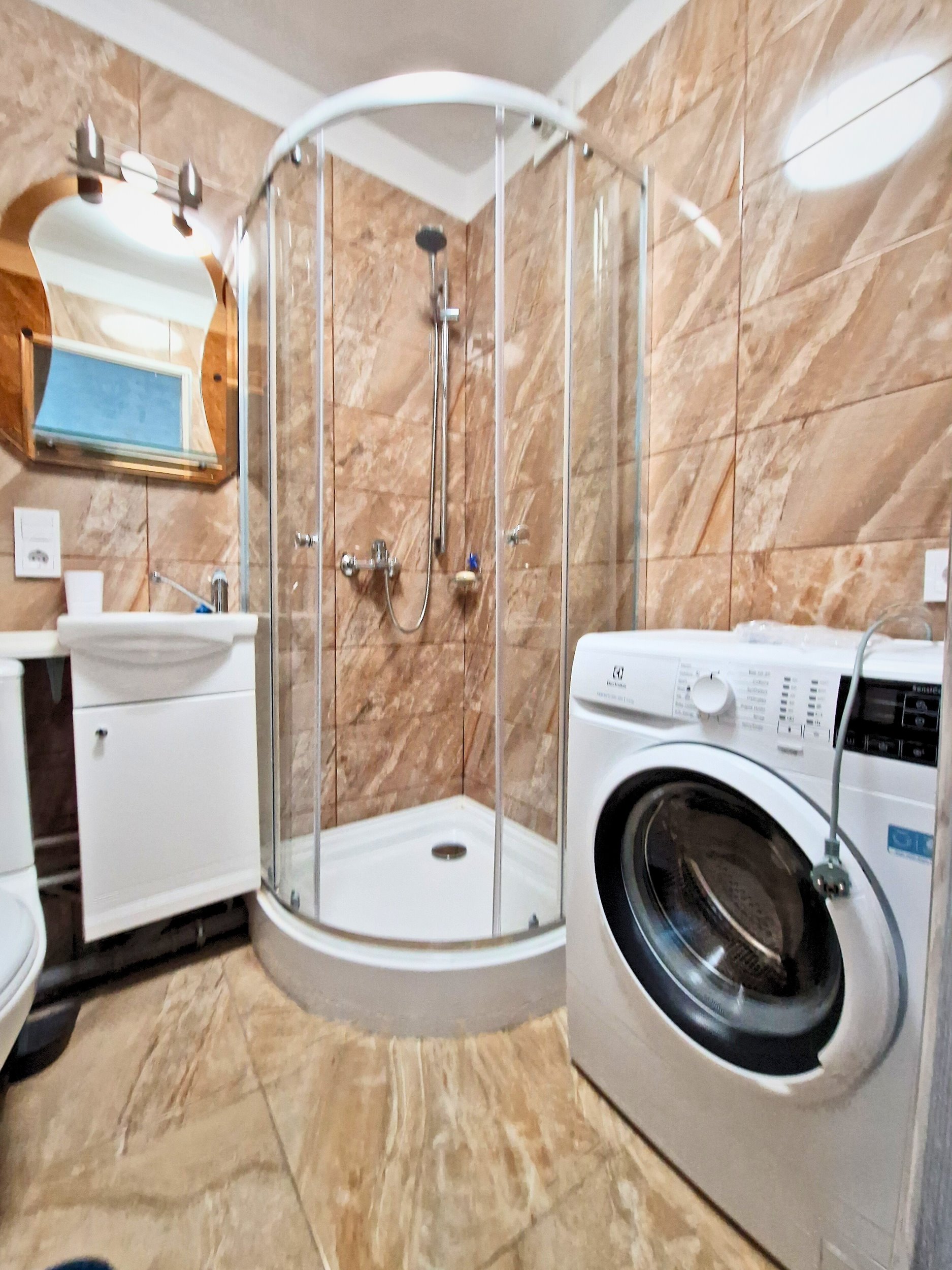 Bute yra visi reikalingiausi baldai, sofa-lova, skalbimo mašina, šaldytuvas su šaldikliu, viryklė ir t.t.