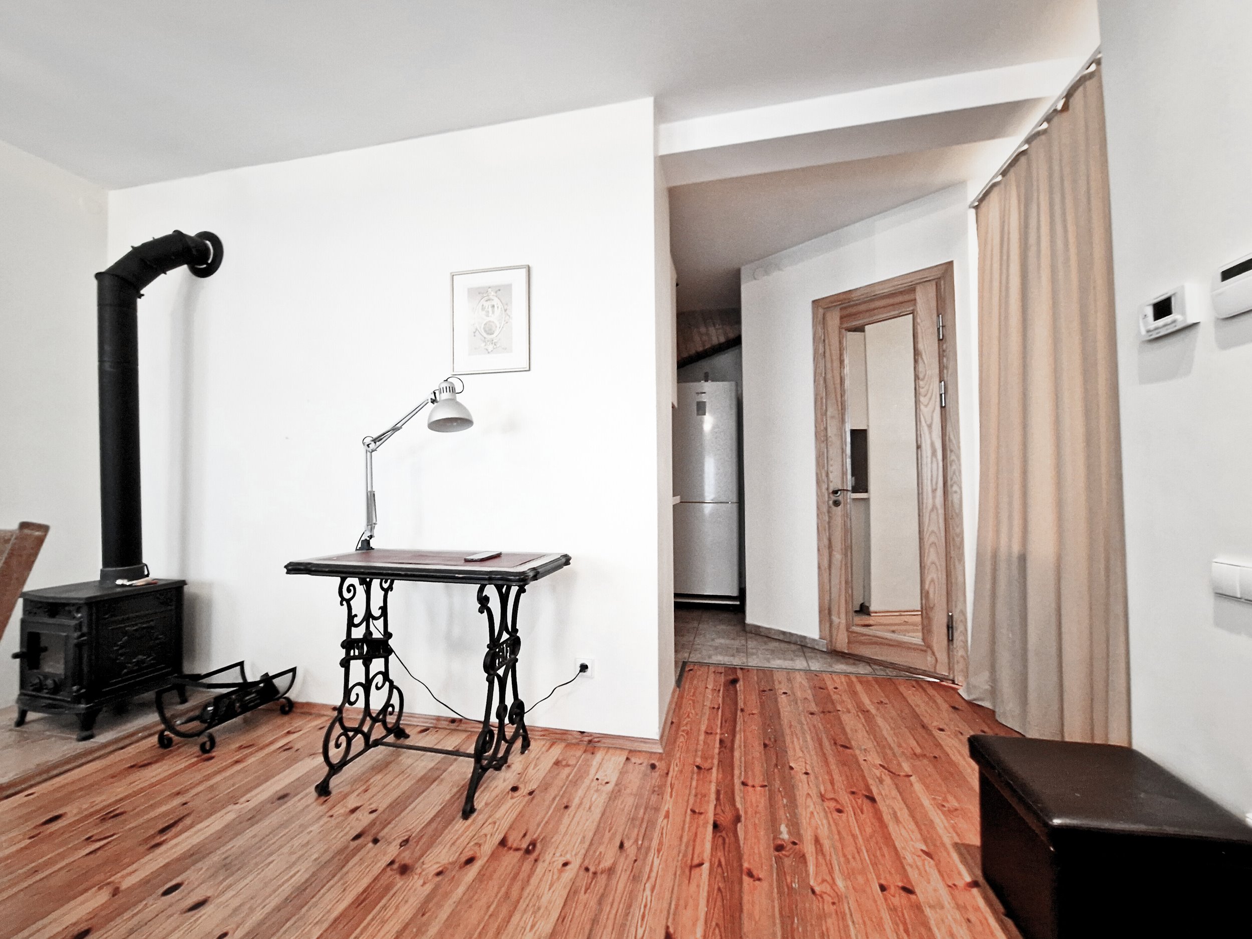 Svetainėje – veikiantis židinys, kuris suteikia jaukumo rudens ir žiemos vakarais