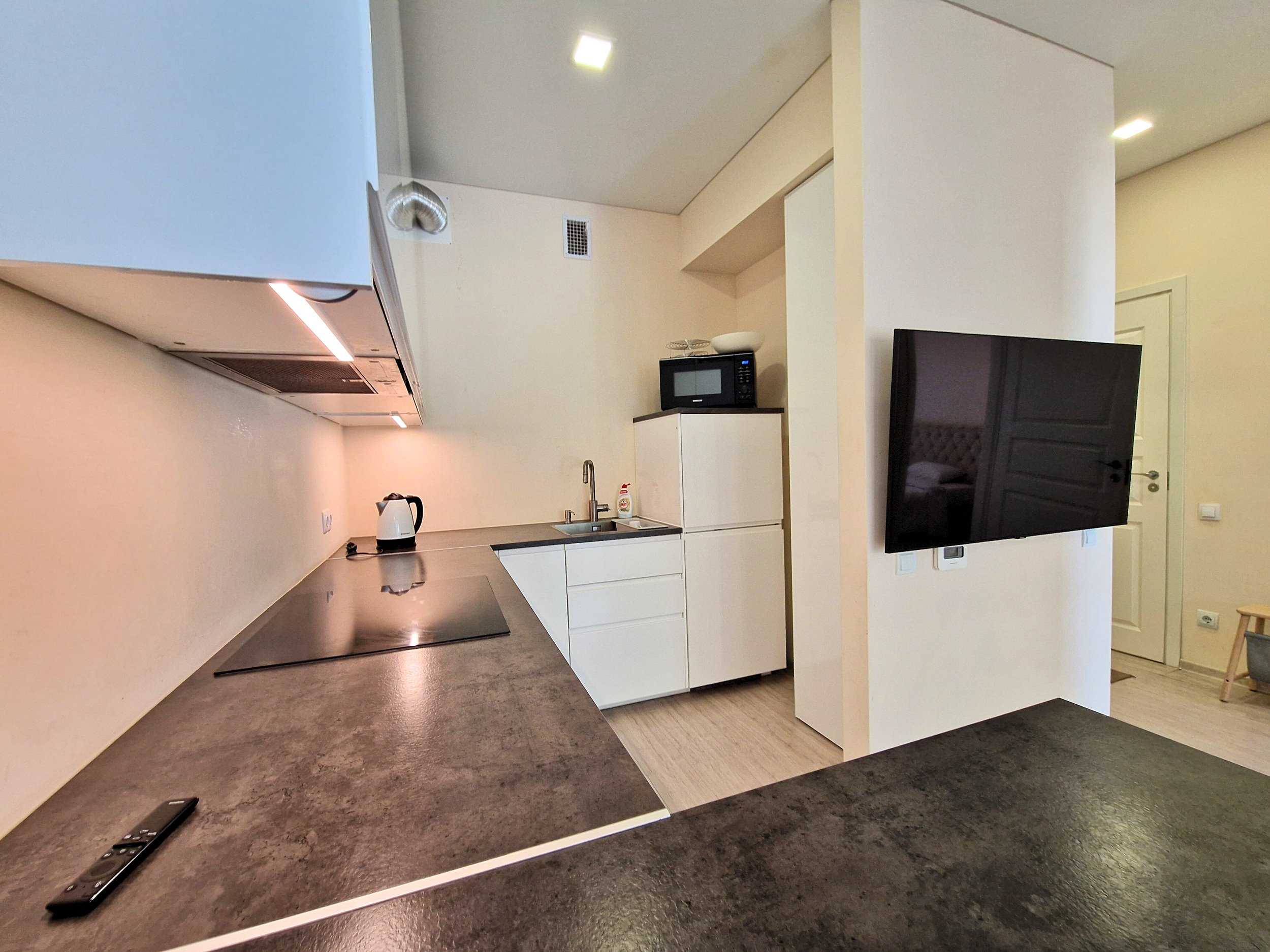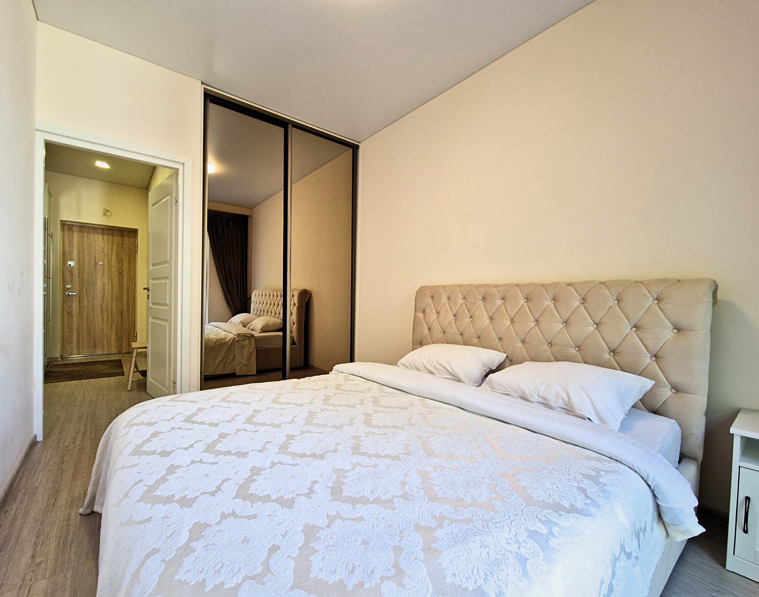 Butas įrengtas taip, kad nuomininkas jaustųsi kaip namuose – čia rasite viską, ko reikia komfortiškam gyvenimui. Daug reguliuojamo foninio apšvietimo sprendimų leis sukurti jaukią, individualią atmosferą kiekvienam vakarui. Šiltą ir šviesią buto aurą papildo langai į saulėtą pusę – tai ideali vieta poilsiui po įtemptos dienos. Svetainėje, mėgaudamiesi kava, galėsite jausti pušyno kvapą.