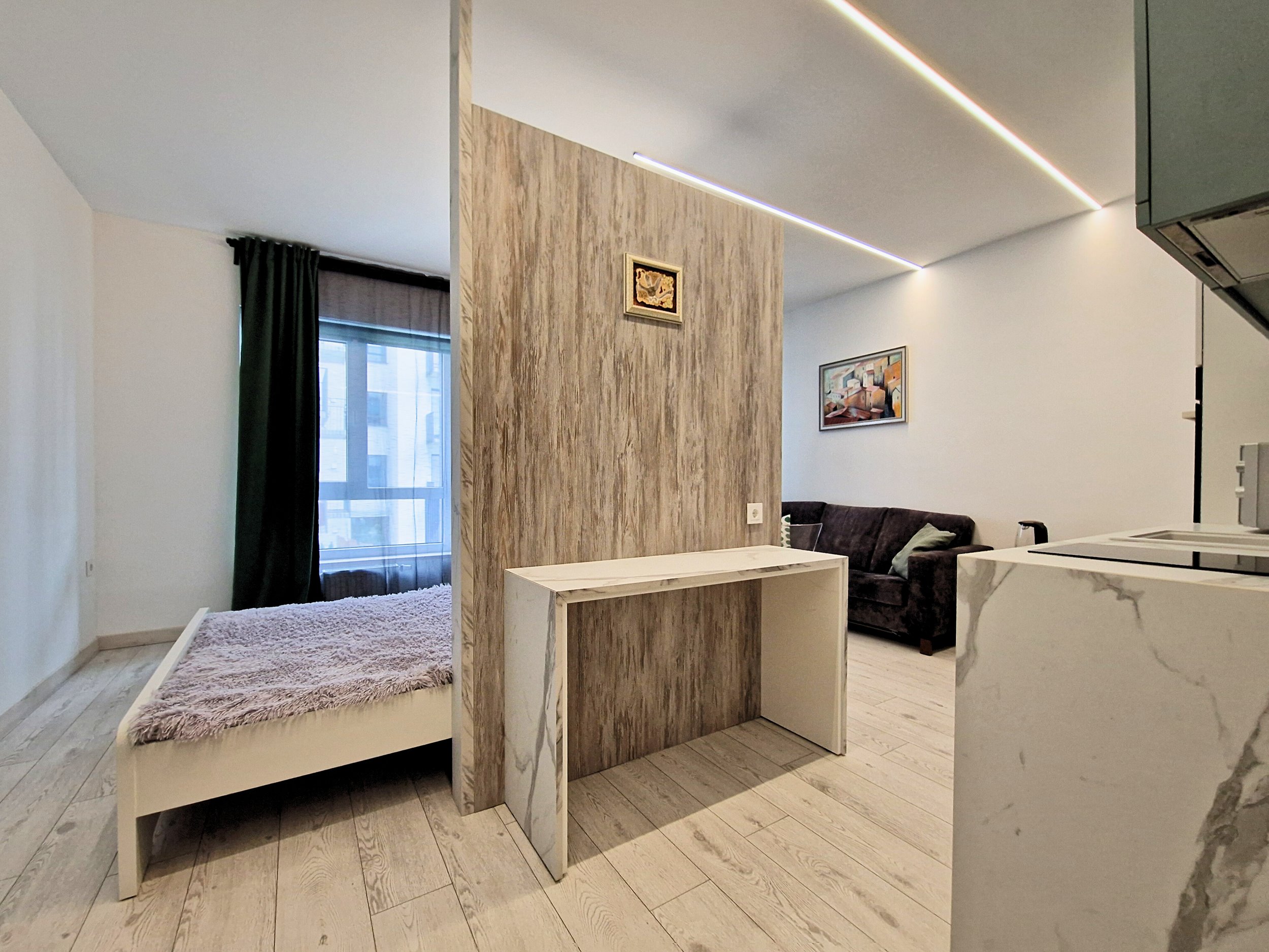 Butas ką tik įrengtas profesionalų – apgalvotas dizainas, kokybiškos medžiagos, stilingi baldai ir visa reikalinga buitinė technika (skalbimo mašina, orkaitė, viryklė, šaldytuvas, indaplovė ir kt.).