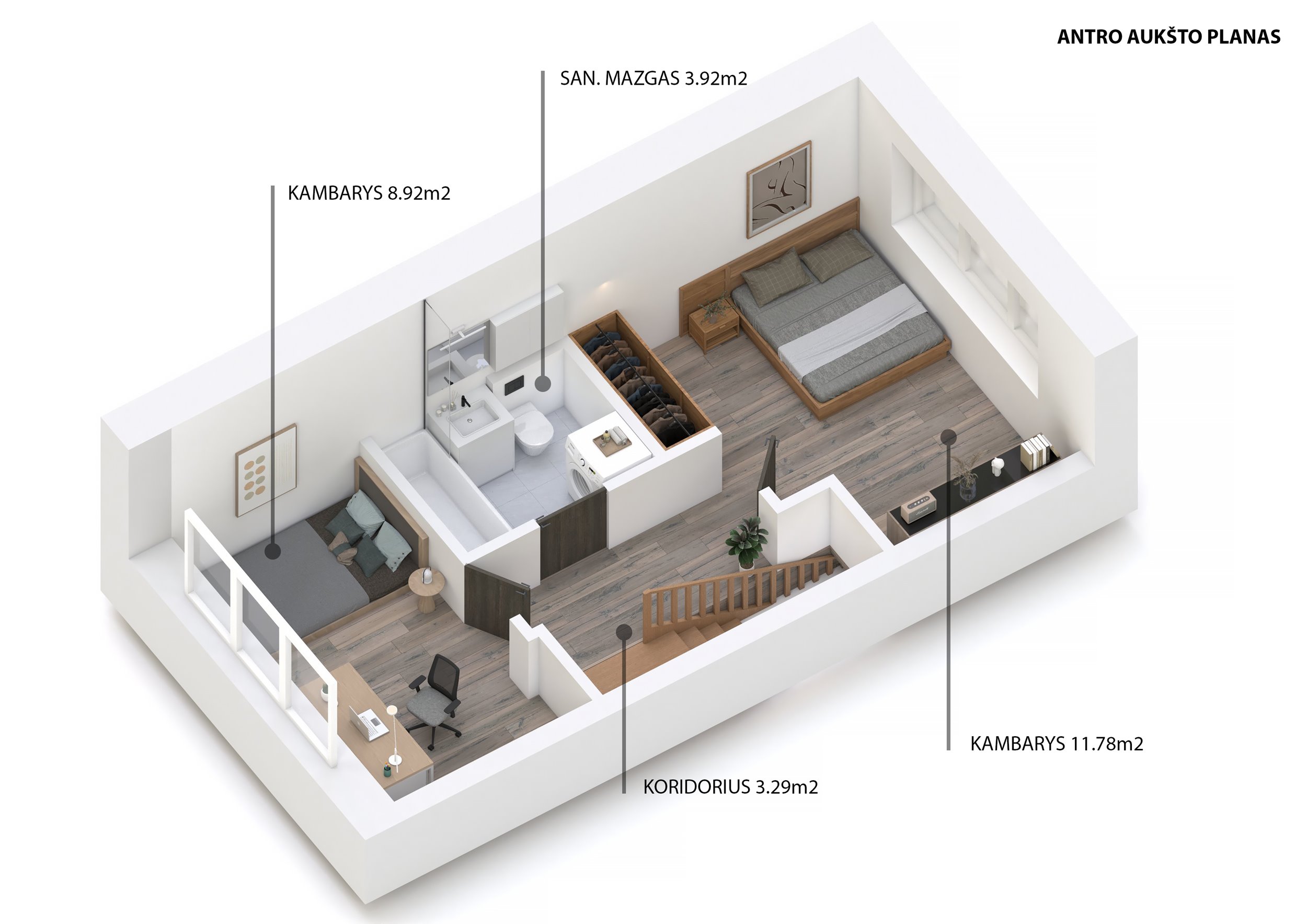 Bendras plotas: 58.11 kv. m + III aukšto patalpa