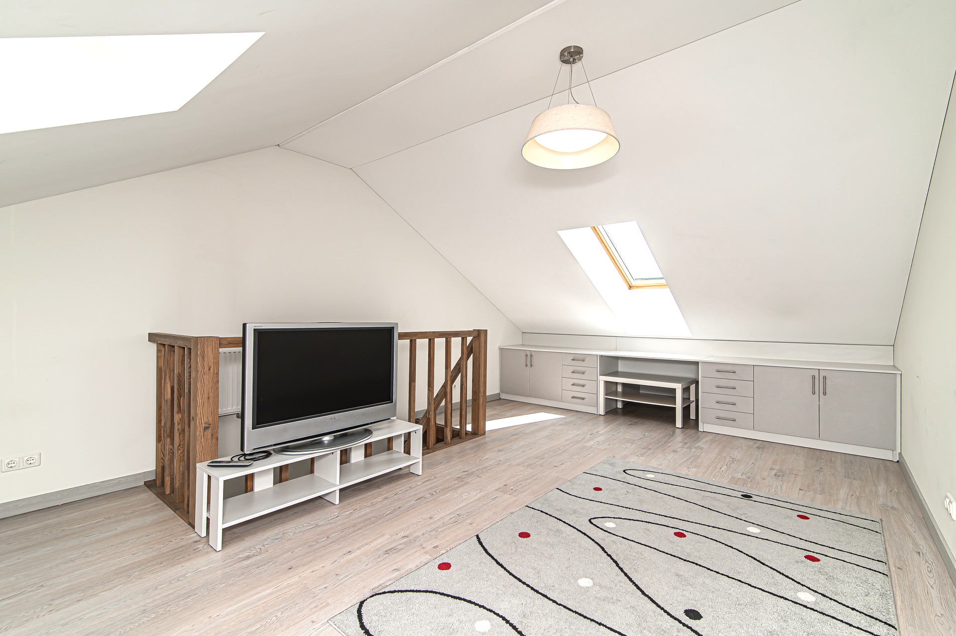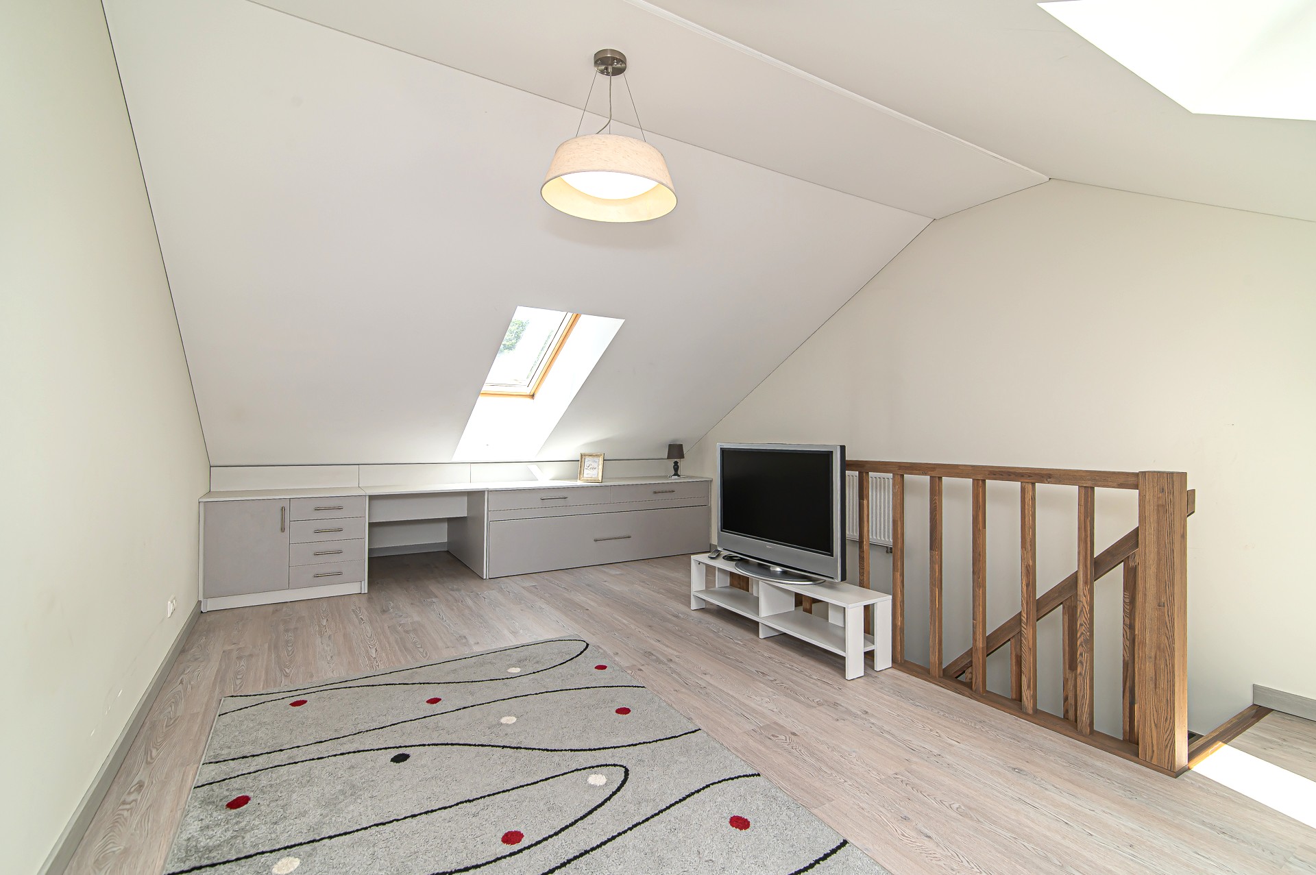Šviesi ir jauki erdvė su dviem stoglangiais – puikiai tinka vaikų/svečių kambariui, darbo zonai ar hobiui