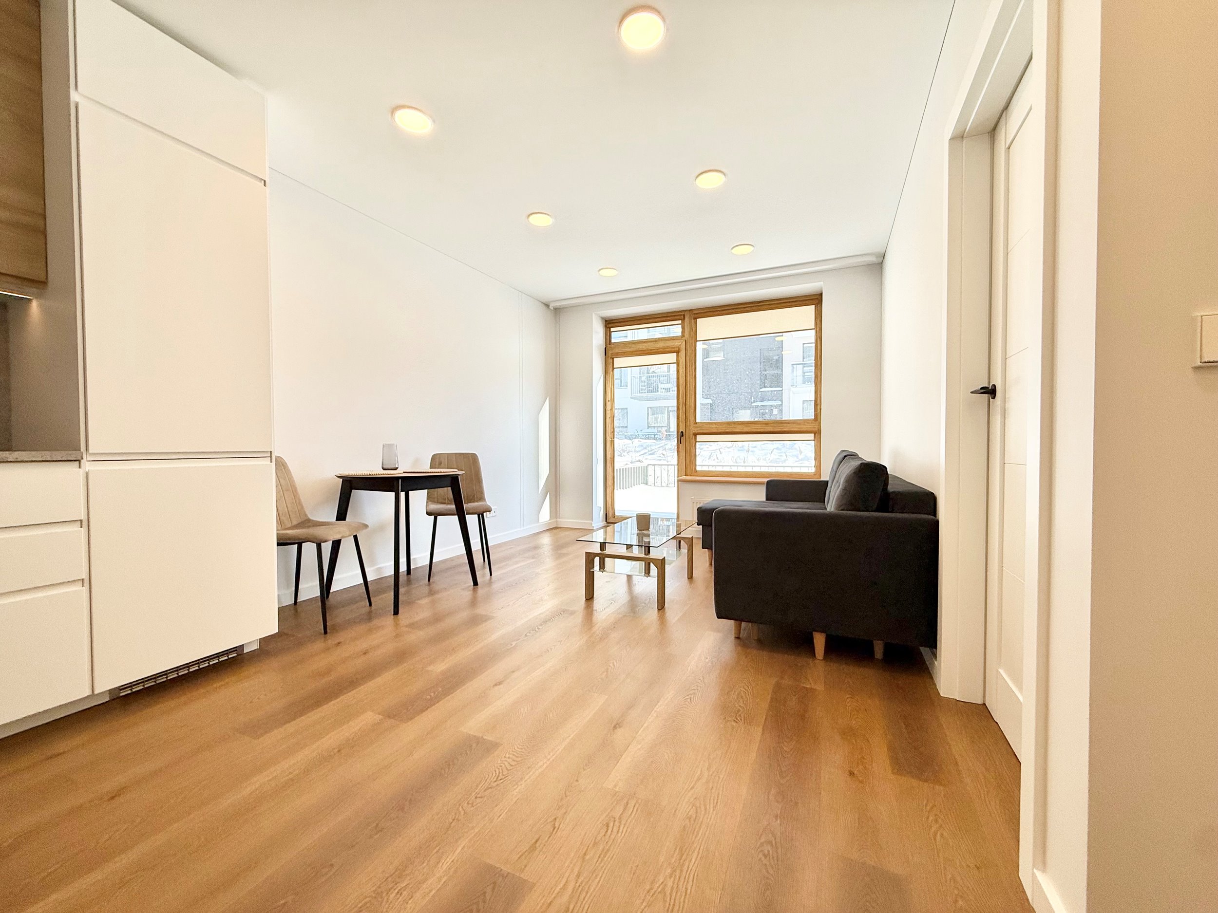 Puikioje vietoje, naujame projekte, Karoliniškėse, išnuomojamas 38 kv.m. ploto, 2 kambarių stilingai įrengtas butas su terasa.