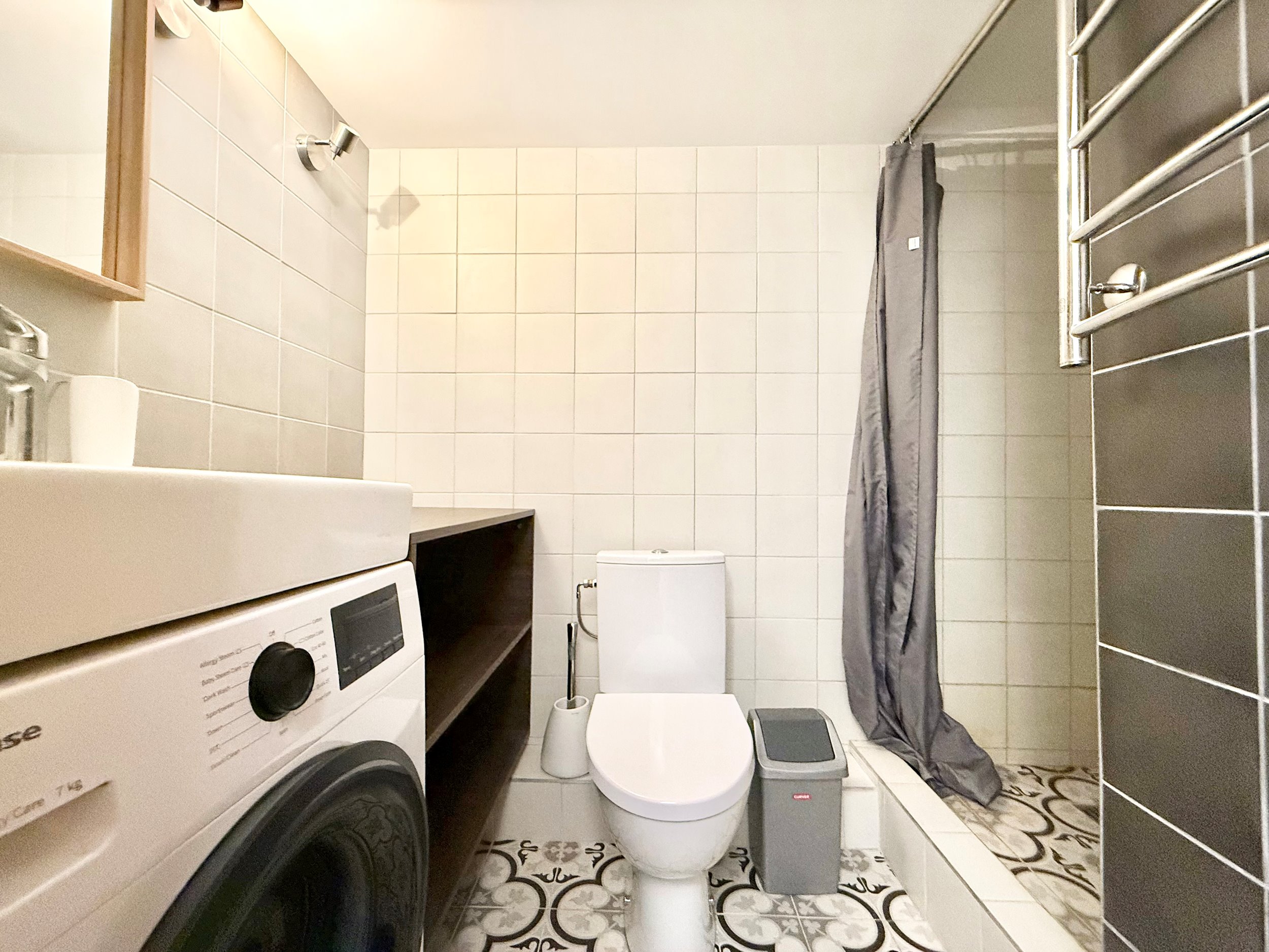 Bute yra visi reikalingiausi baldai, sofa-lova, skalbimo mašina, šaldytuvas, viryklė ir t.t.
