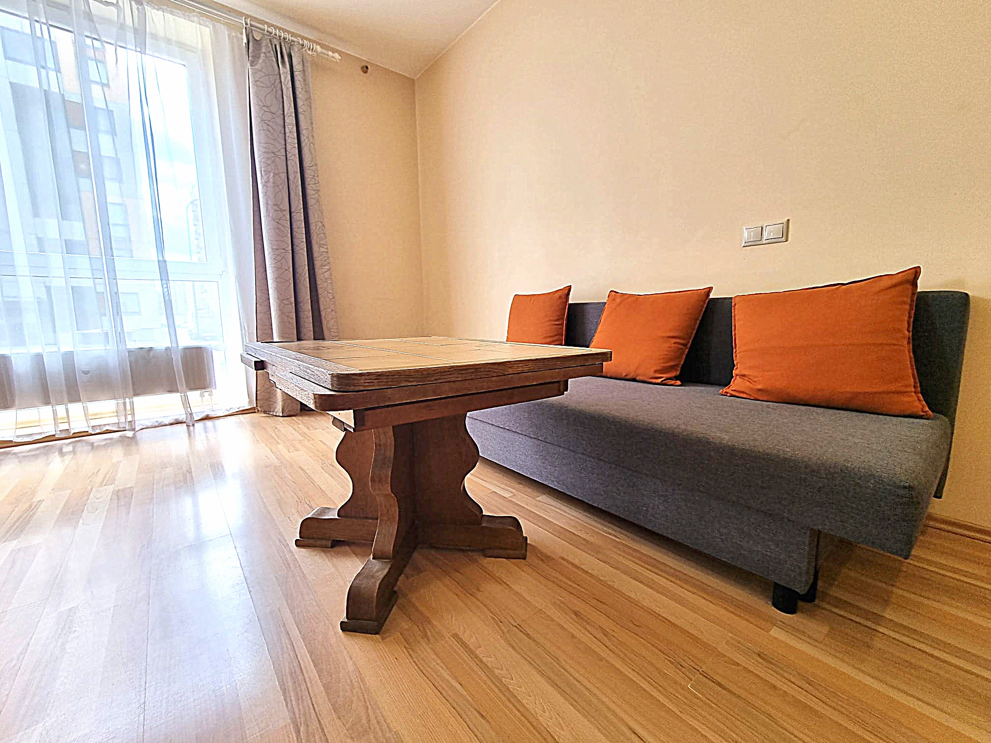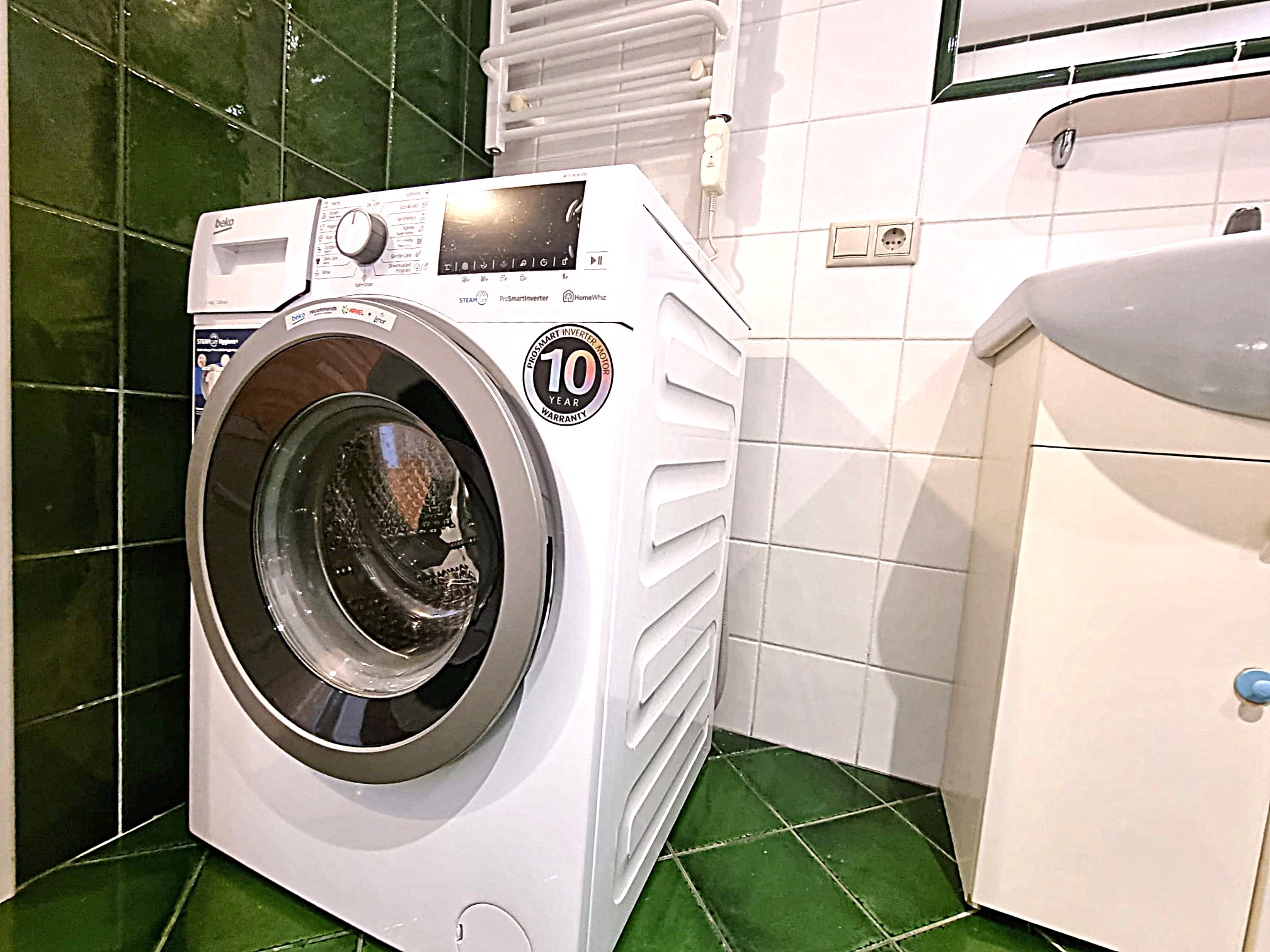 • Butas nuomojamas su visais nuotraukose matomais baldais ir buitine technika (orkaitė, šaldytuvas, mikrobangų krosnelė, skalbimo mašina), minimaliais virtuvės indais (įrankiai, lėkštės, puodeliai).