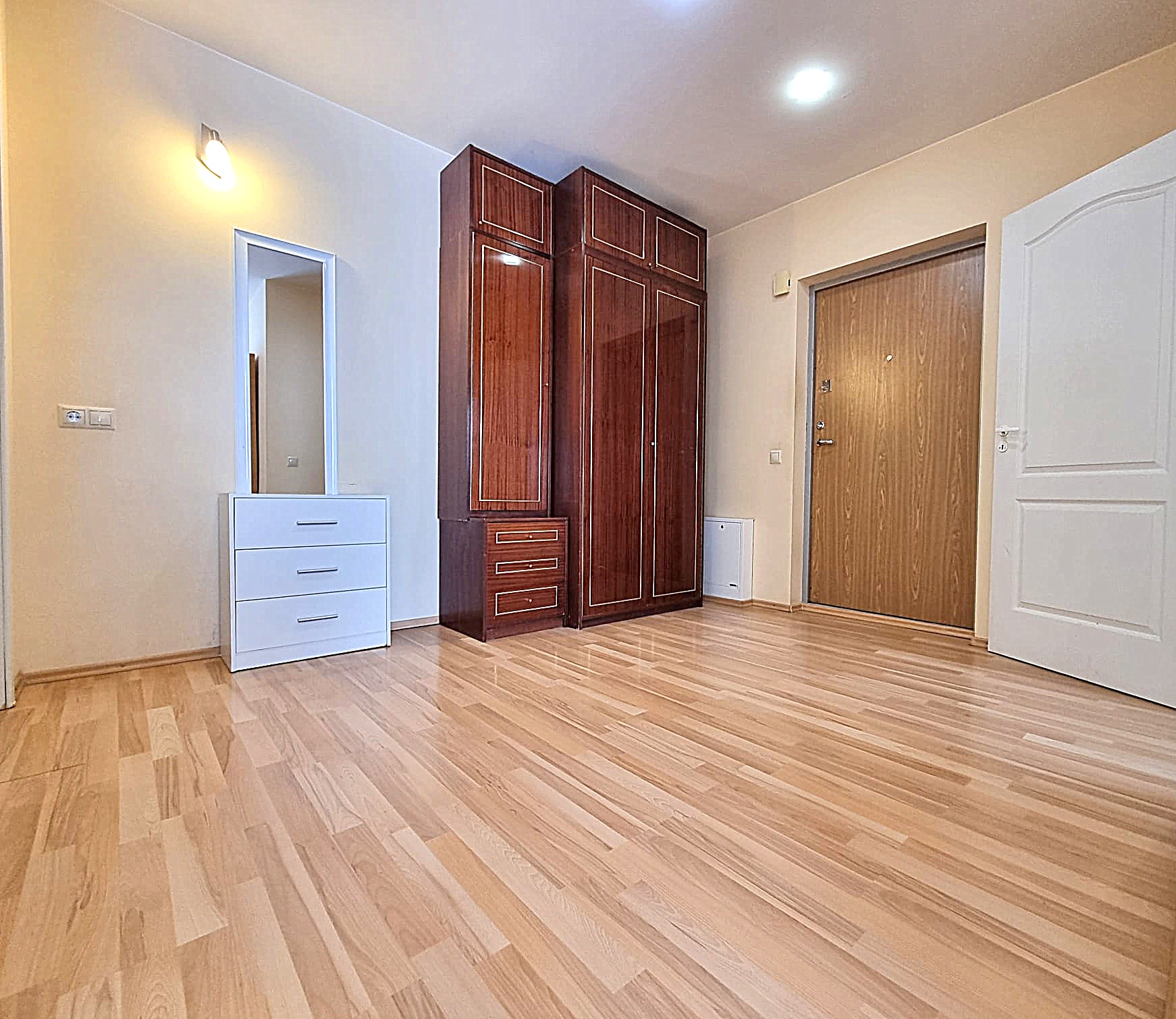 • Prieškambaryje erdvi sieninė spinta iki pat lubų.
