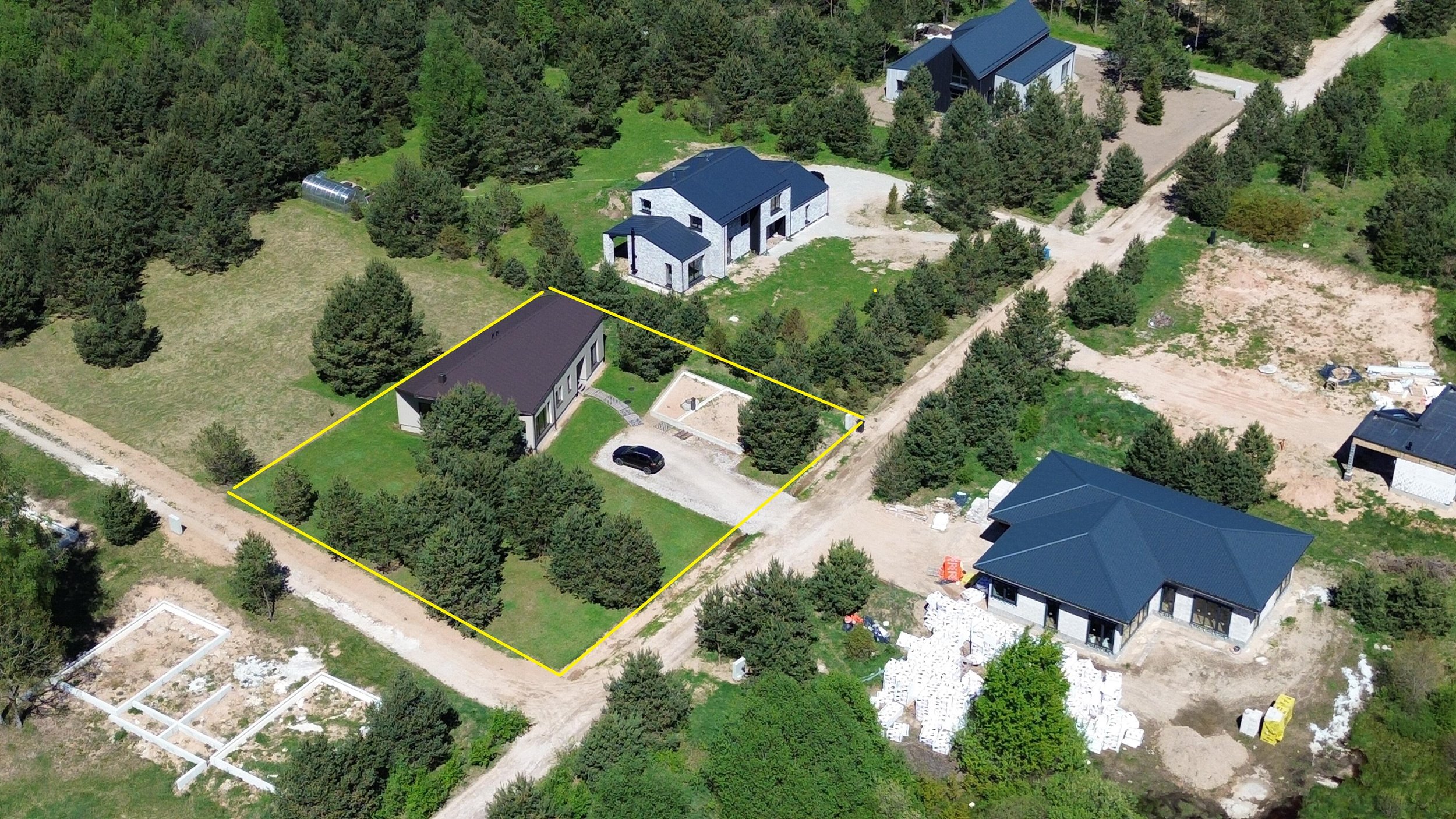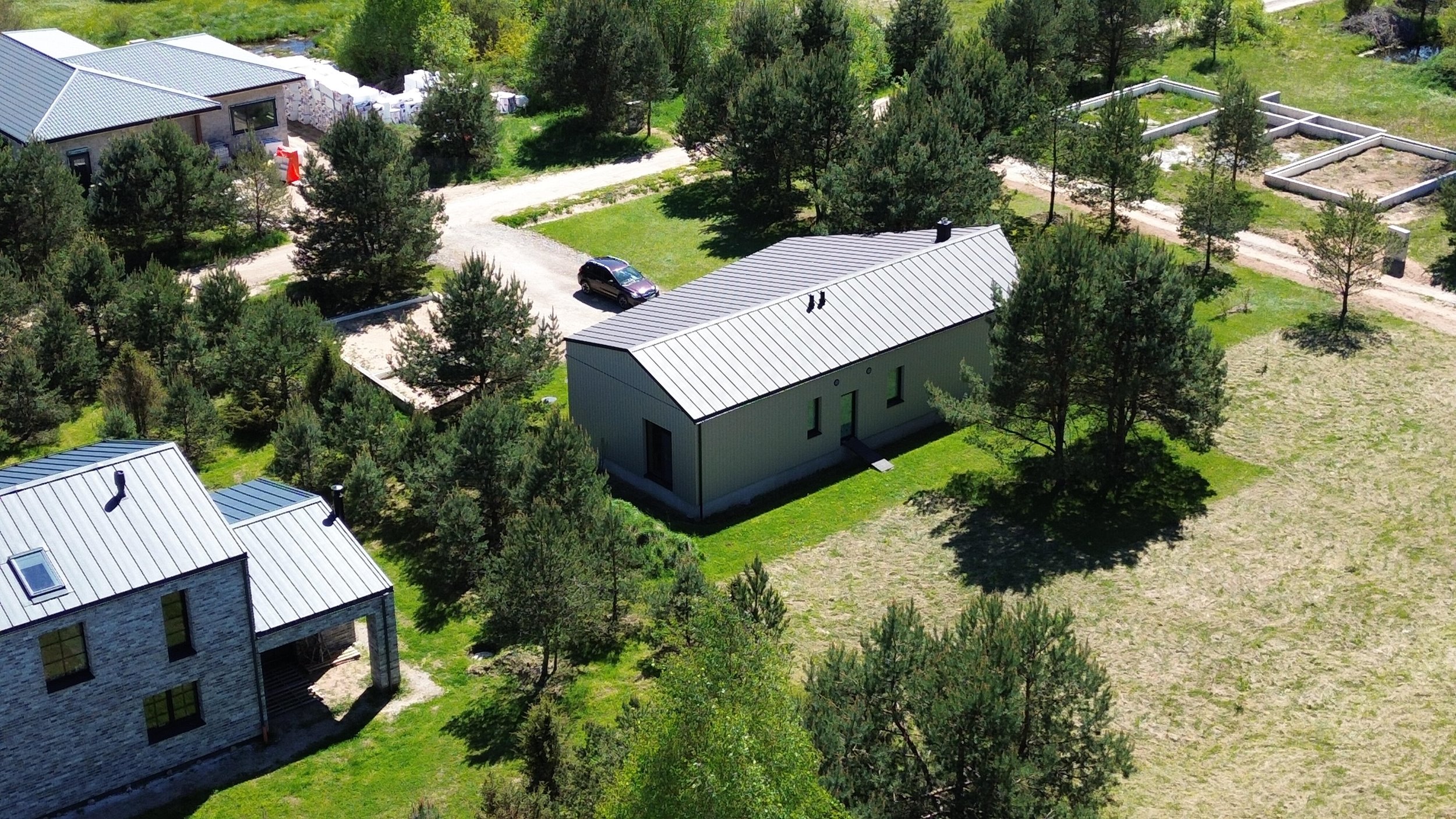 Papildomo pastato pamatai su atvestomis komunikacijomis šalia namo garažui ir pirčiai/sandėliavimui 70 kv.m;