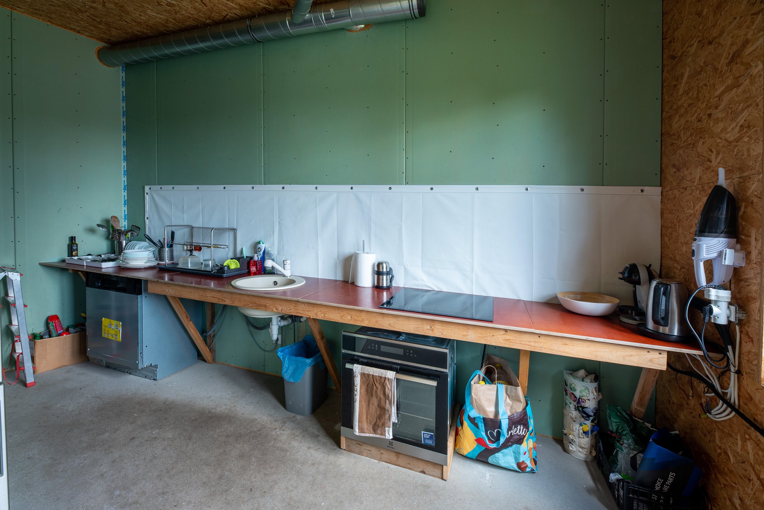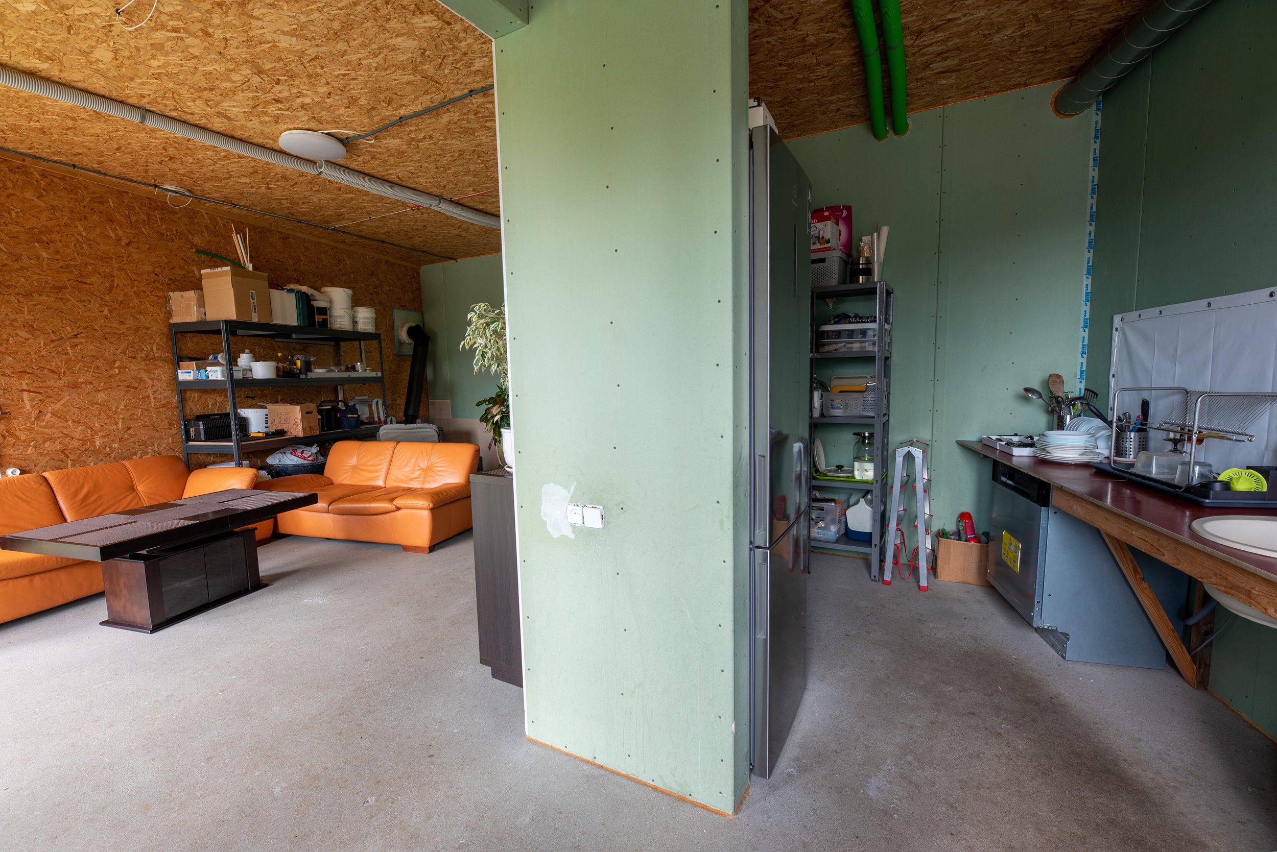 Stogas 40 cm šiltintas atvirų porų poliuretanu, pastogė ties kraigu apie 2 m. aukštis (galimas sandėliavimas)
