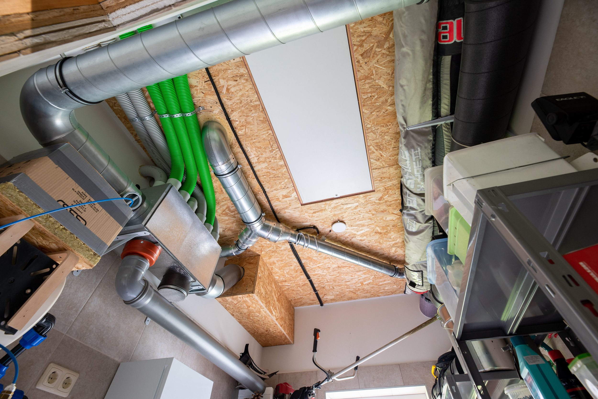 Unikalūs inžineriniai sprendimai – dviguba naturali ir priverstinė ventiliacijos sistemos (priverstinė atskira, programuojama, veikimas nėra girdimas), papildomai iš komunikacijų šulinio į namą atvestas vėdinimo kanalas žiemą paduoda apie +10 laipsnių šviežų orą ir veikia rekuperacijos principu;