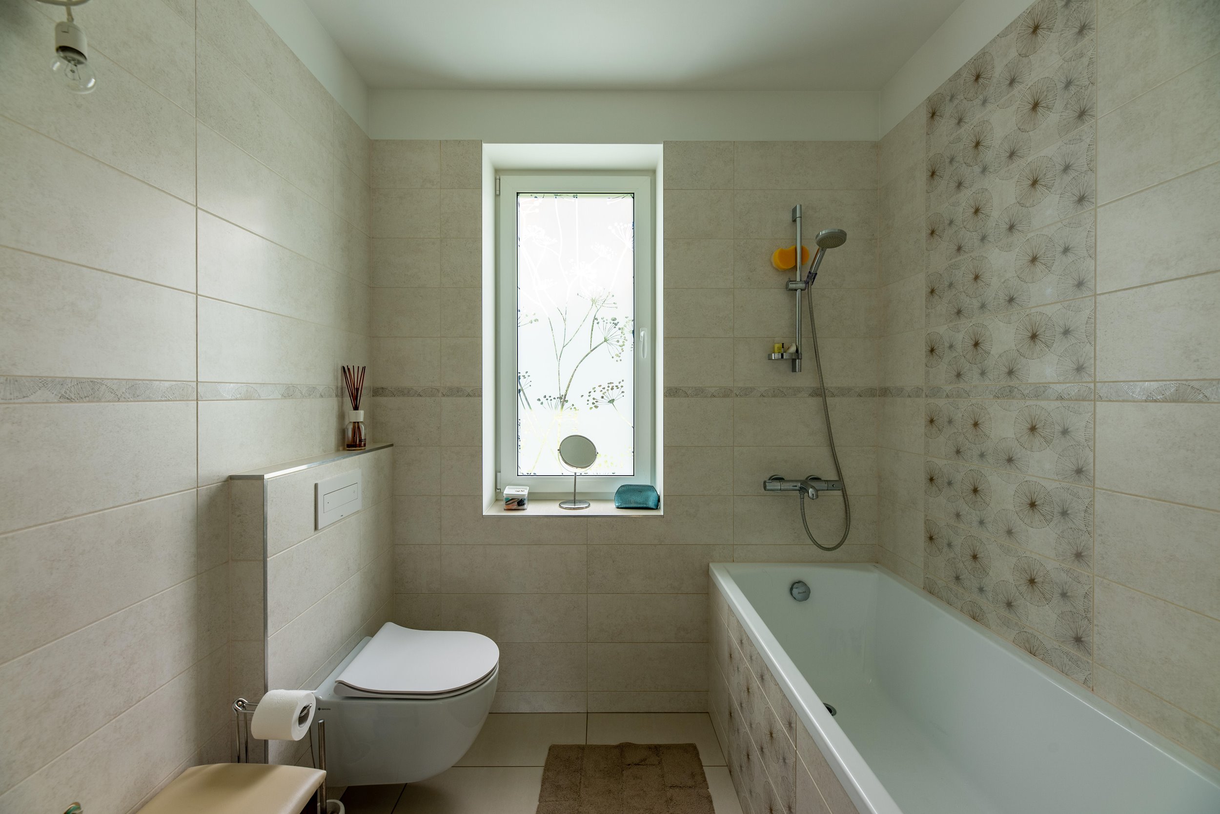 Šviesūs kambariai, vitrininiai langai rytinėje, pietinėje ir vakarinėje pusėse;