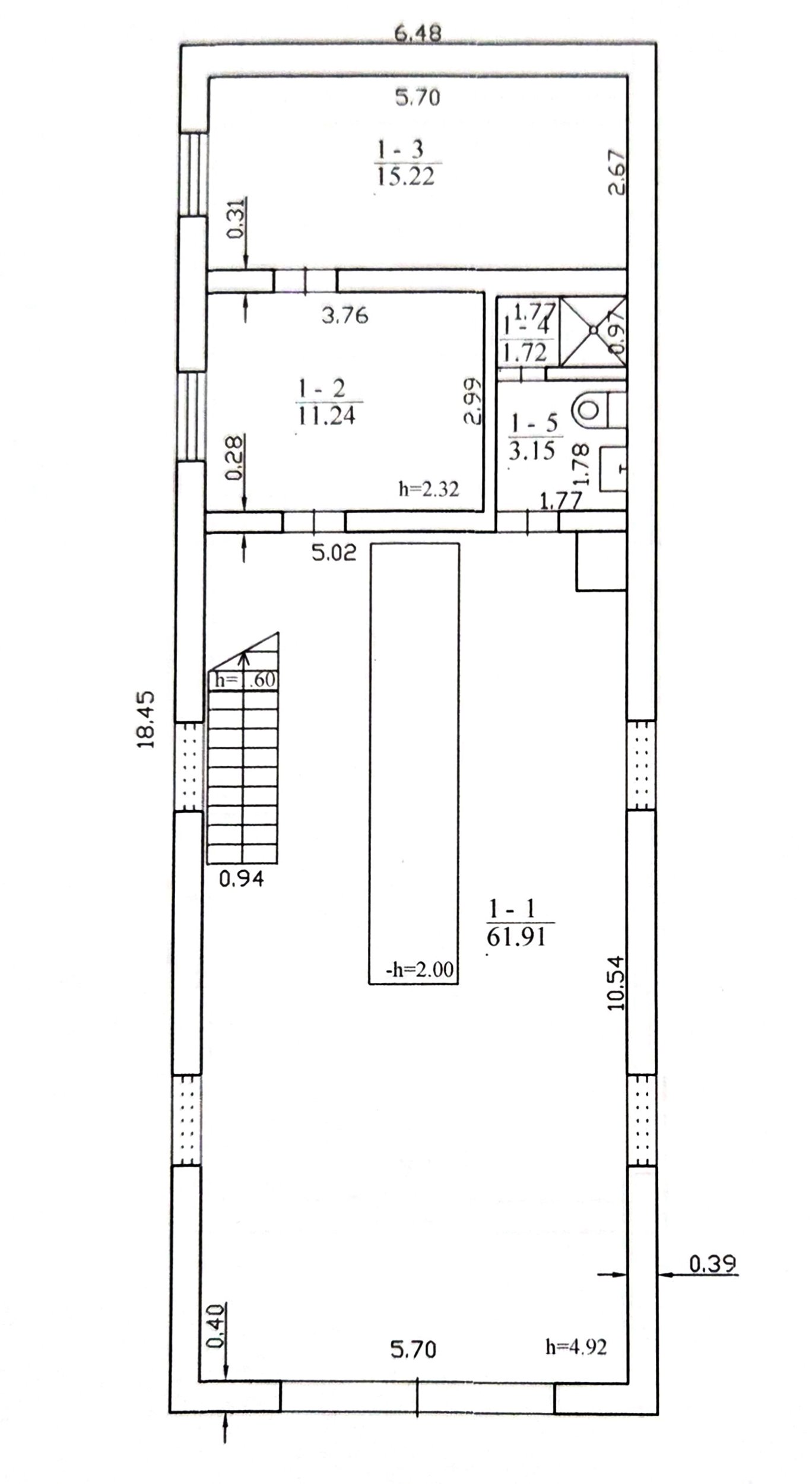 Iš viso: 7 patalpos, bendras plotas 125,33 m²