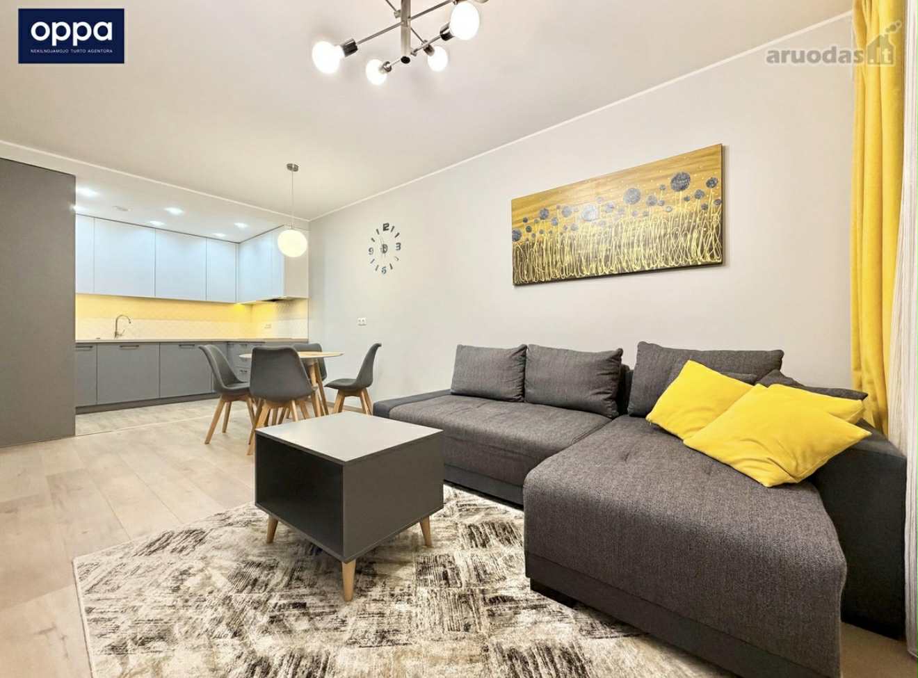 • Erdvi svetainė su virtuve + atskiras miegamasis