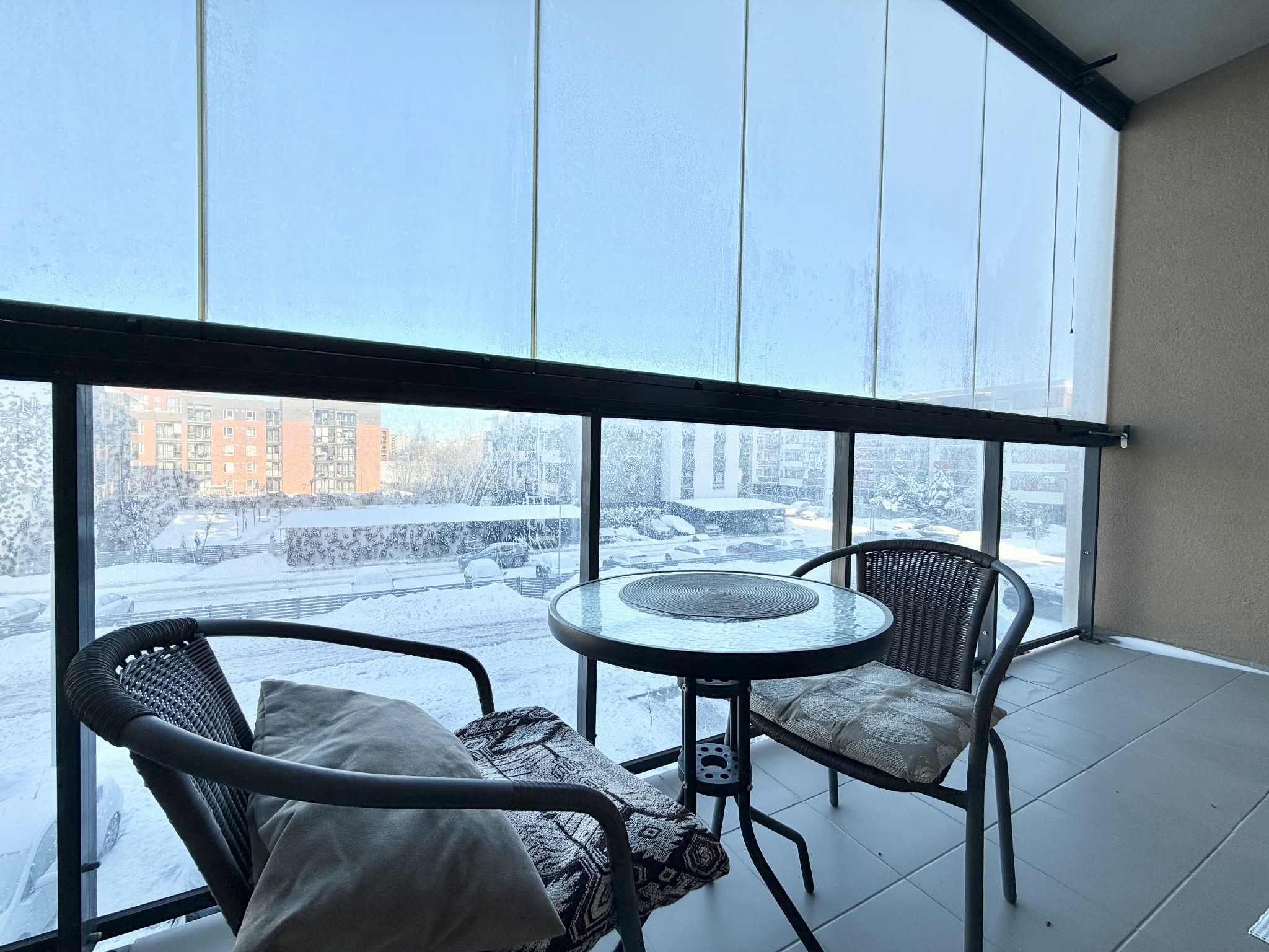 Tikras šio buto akcentas – erdvus įstiklintas balkonas su terasos baldais. Tai puiki vieta rytinei kavai, poilsiui ar jaukiems vakarams nepriklausomai nuo oro.