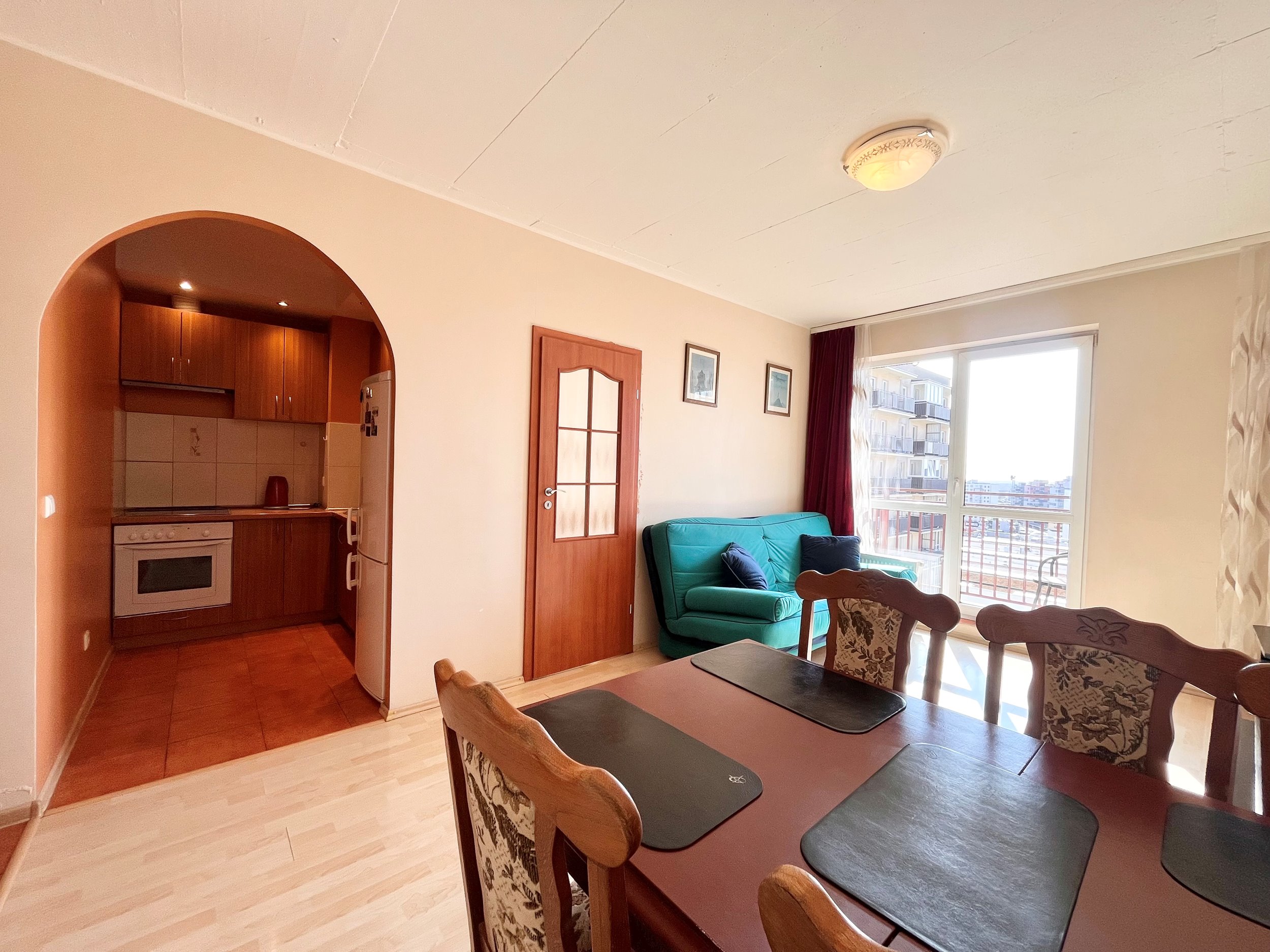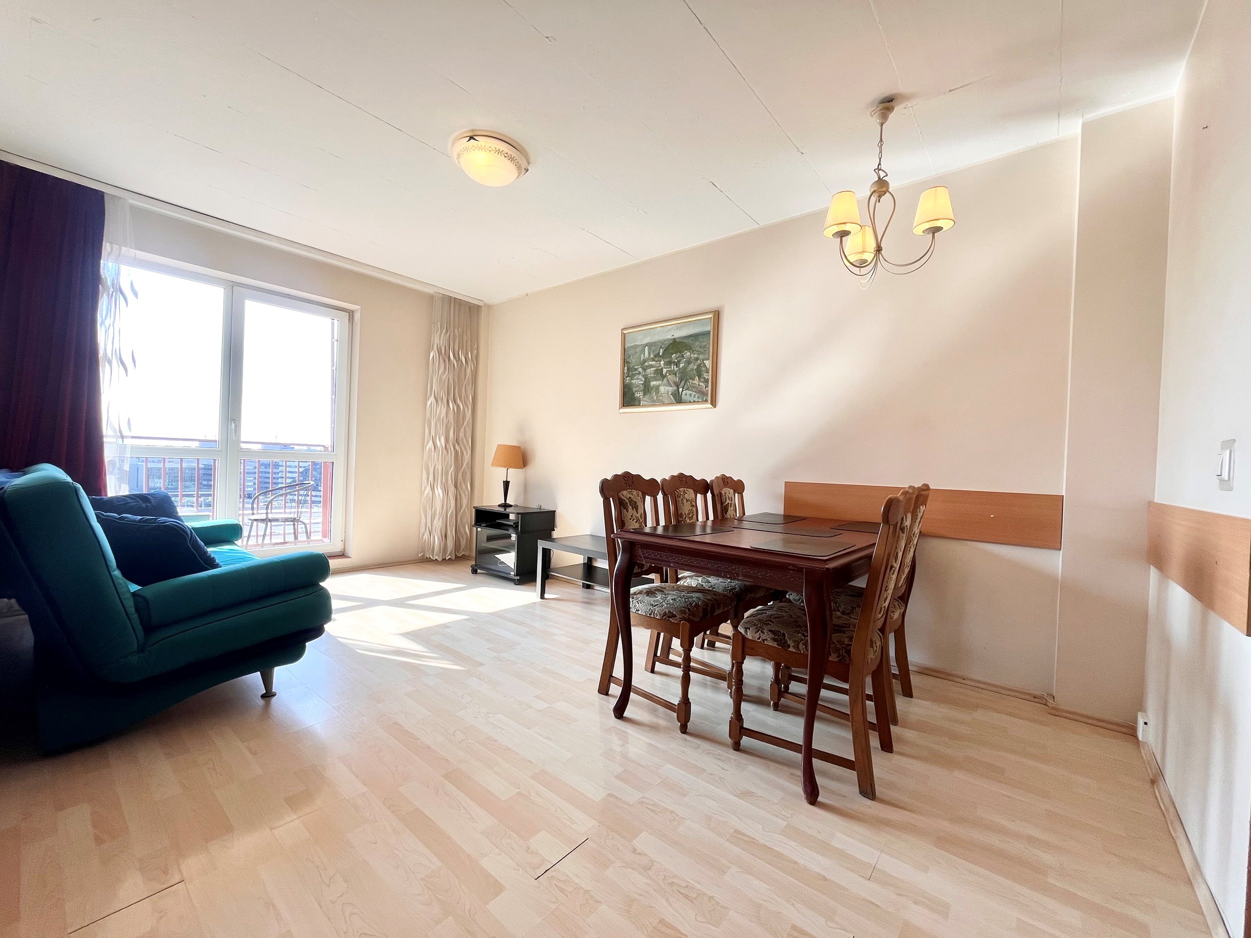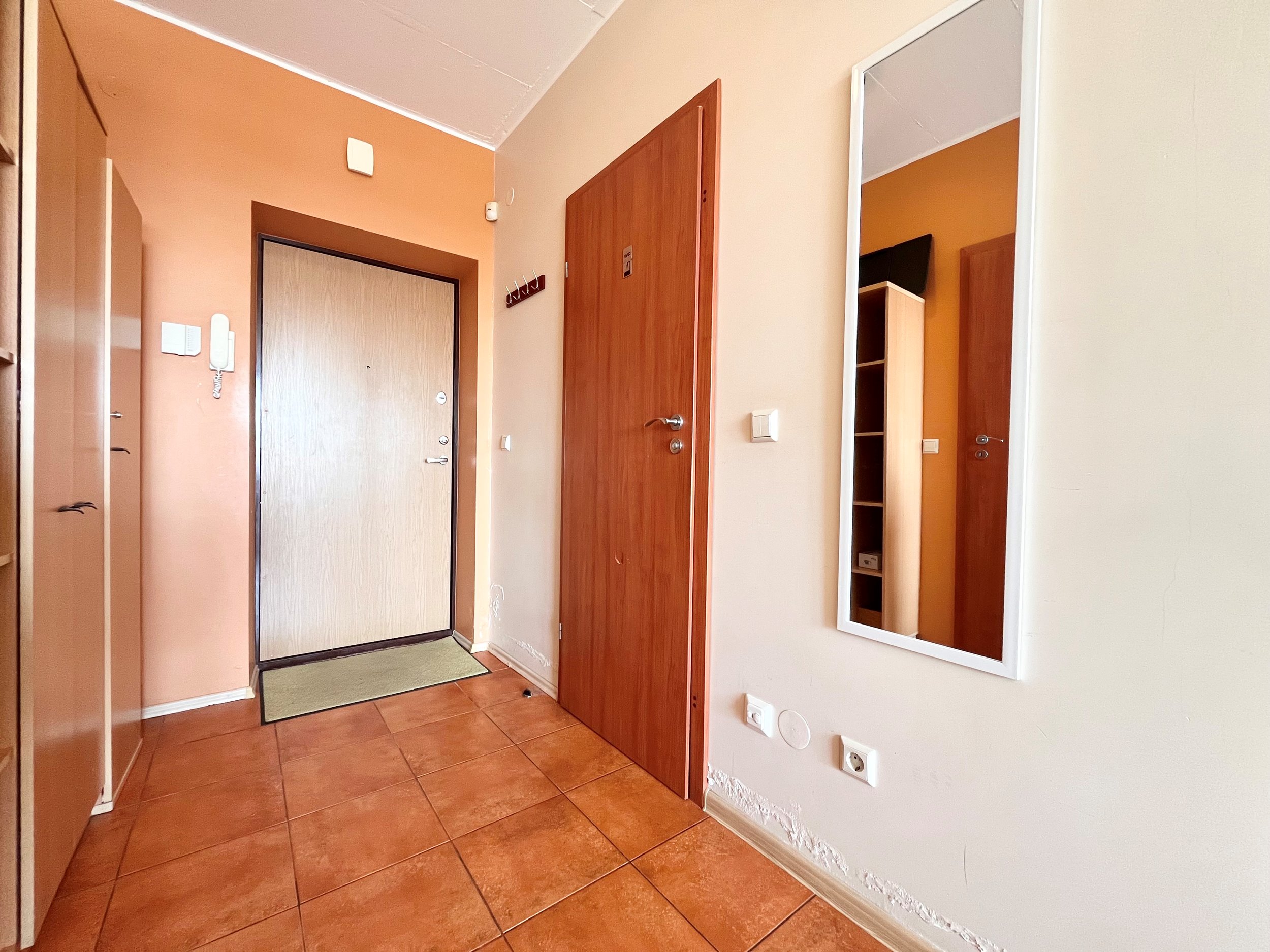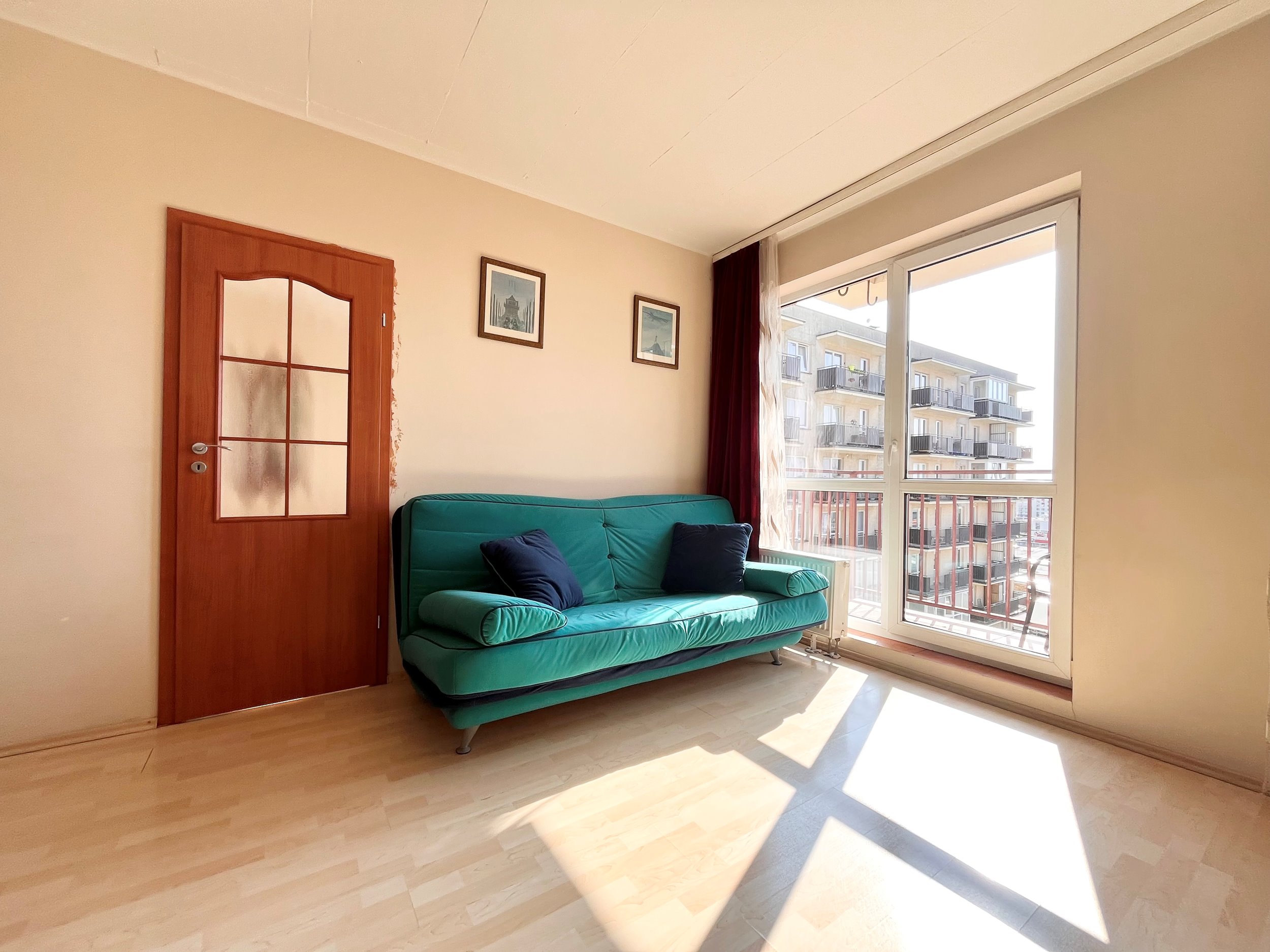 43 kv. m butas įsikūręs 10 aukšte iš 12, todėl būste daug natūralios šviesos, o balkonas suteikia papildomos erdvės poilsiui ar rytinei kavai. Butas funkcionaliai suplanuotas, yra atskiras tamsus kambariukas / rūbinė daiktams laikyti, skalbimo mašina, liftas name. Didelis privalumas – butas nuomojamas kartu su automobilių parkavimo vieta be papildomo mokesčio.