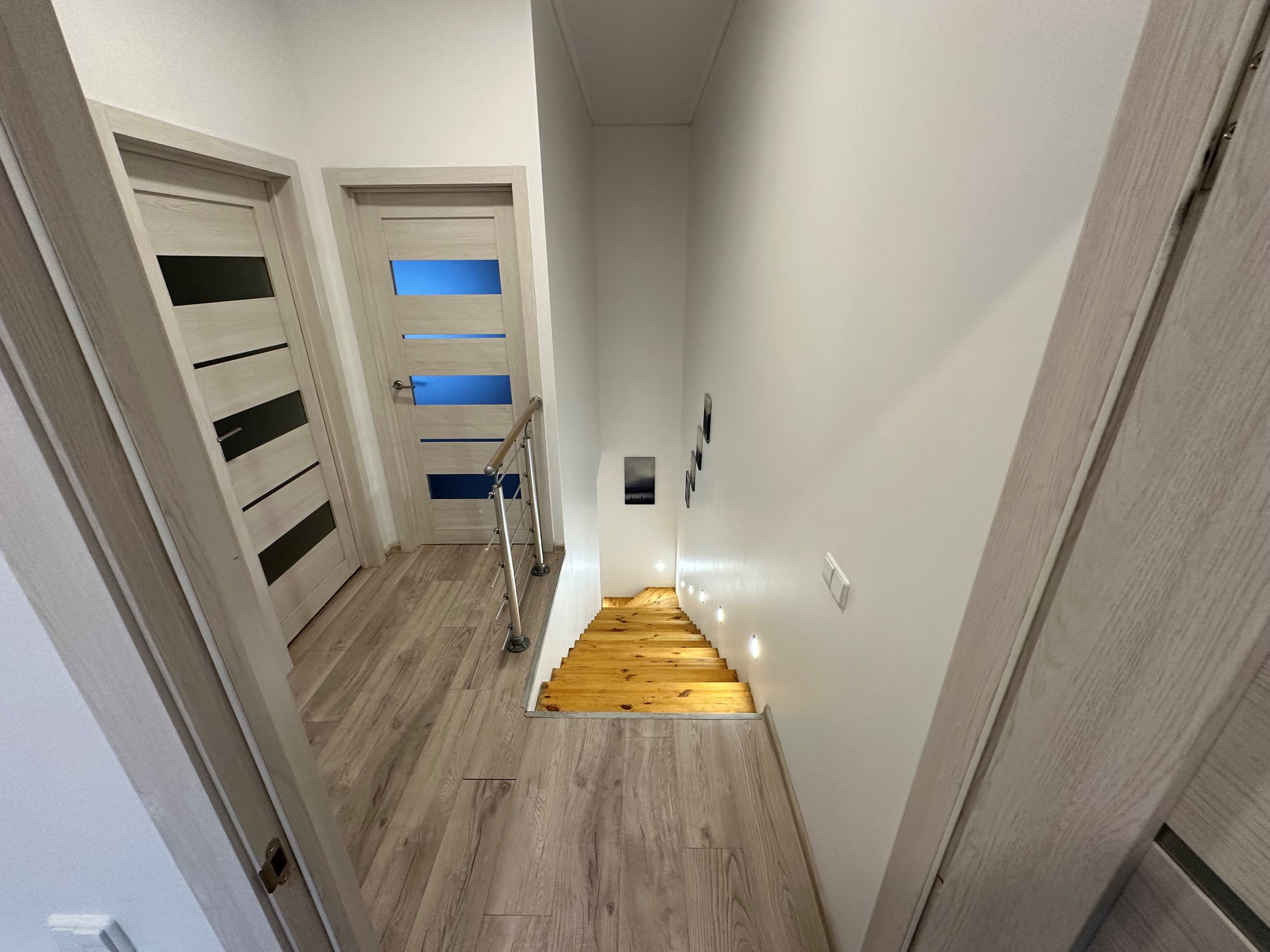 Antras aukštas: Trys miegamieji kambariai, funkcionali vonia su WC.