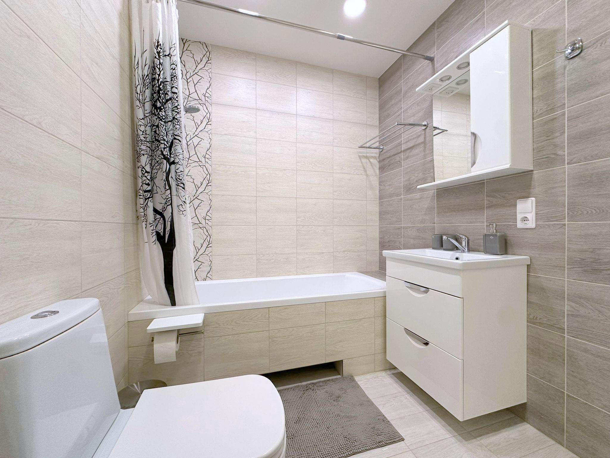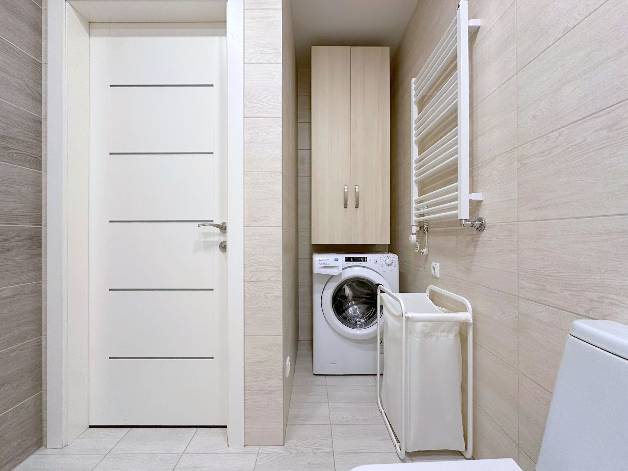 Butas įrengtas kokybiškai ir patogiai nuomai – daug dėmesio skirta detalėms, komfortui ir praktiškumui. Bute įrengtas foninis, reguliuojamas apšvietimas, leidžiantis susikurti norimą nuotaiką bet kuriuo paros metu. Saulėta pusė ir šilta buto aura suteikia ramybės jausmą bei leidžia atsipalaiduoti po darbo dienos.