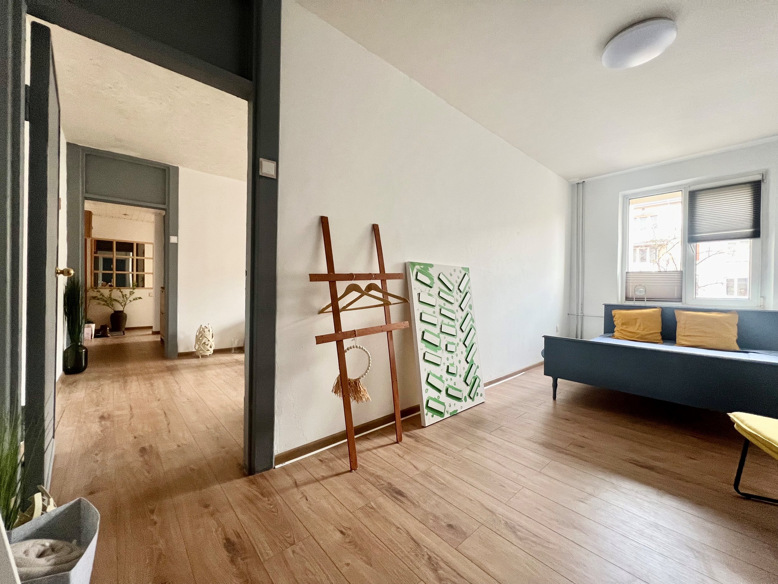 Geroje vietoje, Naujamiestyje netoli centro, Birželio 23-iosios g. išnuomojamas visiškai naujai po kapitalinio remonto jaukiai ir stilingai įrengtas 58 kv.m. ploto, trijų kambarių butas RENOVUOAME NAME su reguliuojamu šildymu.