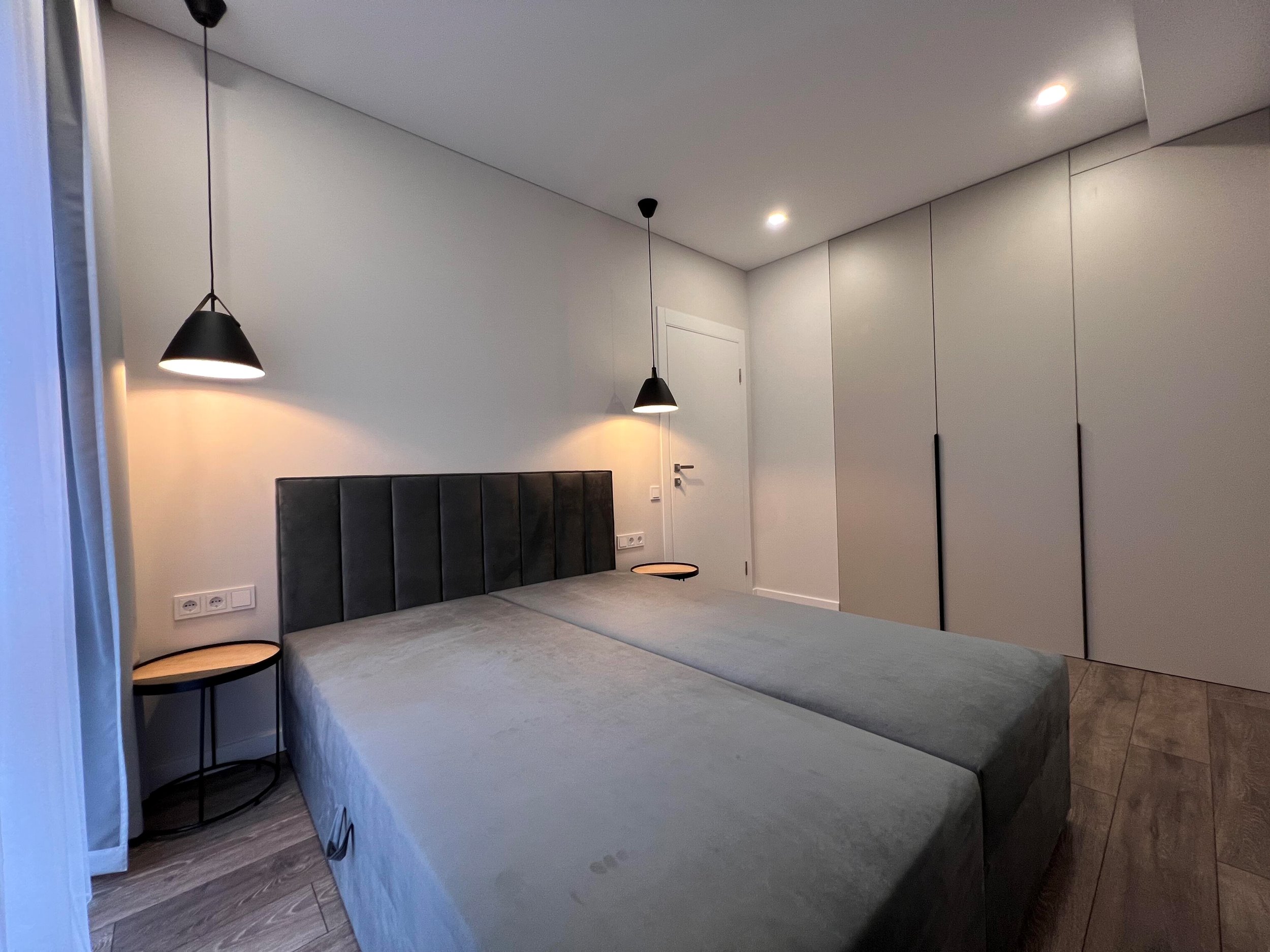 Nuomojamas ką tik naujai įrengtas dviejų kambarių butas Justiniškėse, šalia Buivydiškių tvenkinių naujame mažaaukštės statybos projekte su privačia teritorija namo gyventojams.