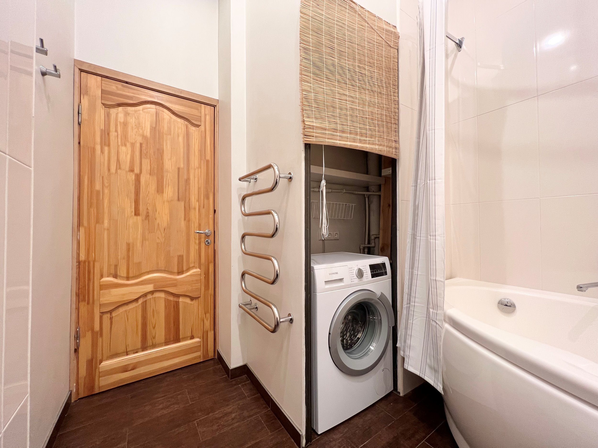 - Virtuvės baldai su visa reikalinga buitine technika (šaldytuvu, virykle, orkaite, indaplove, skalbimo mašina).