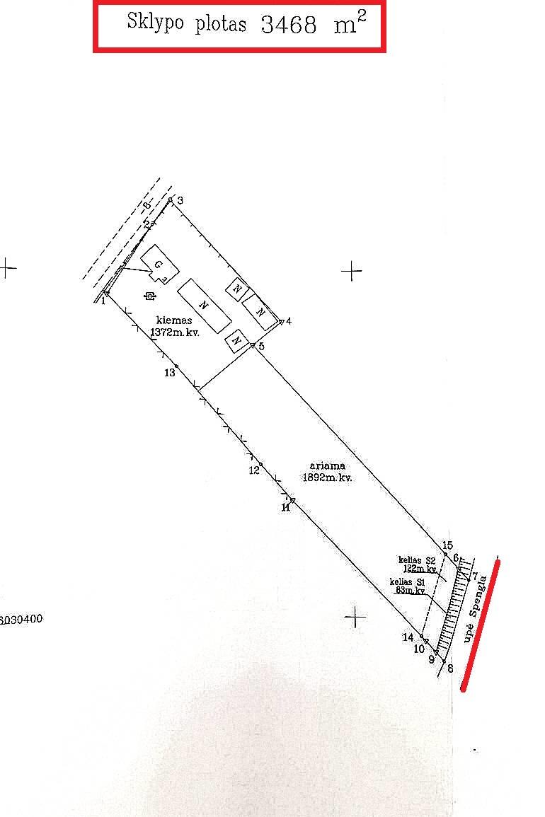 Parduodamas didelis namų valdos paskirties sklypas 34,68 arų su užregistruotais pastatais, ribojantis su upe Spengla.