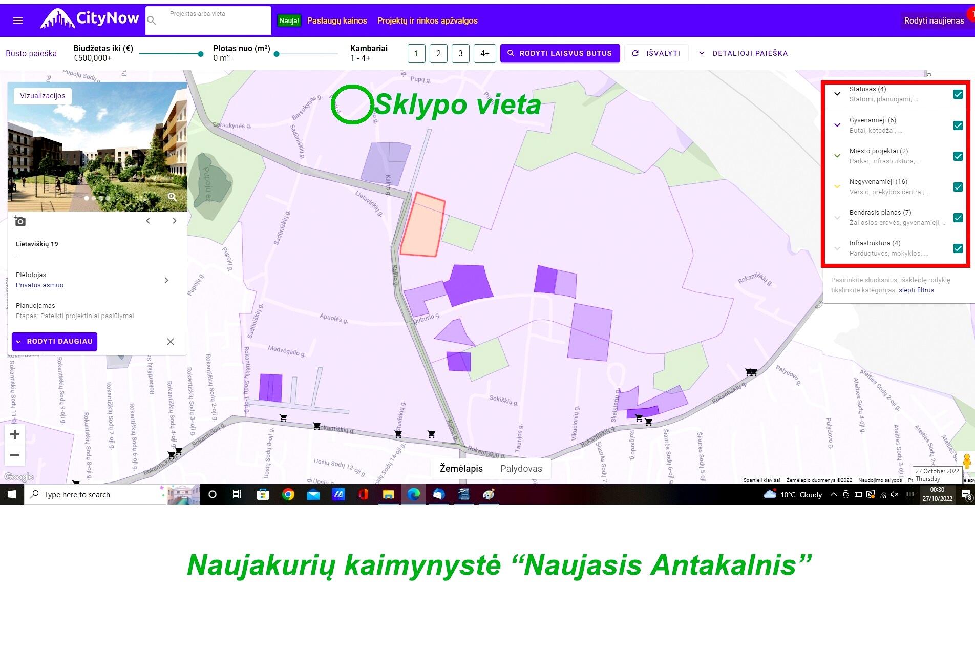 - Visai šalia sklypo „Naujasis Antakalnis"– suprojektuota didelė teritorija, kurioje numatyta visa reikalinga infrastruktūra: mokyklos, darželiai, prekybos centrai, žalios zonos, pėsčiųjų ir dviračių takai, viešojo transporto stotelės