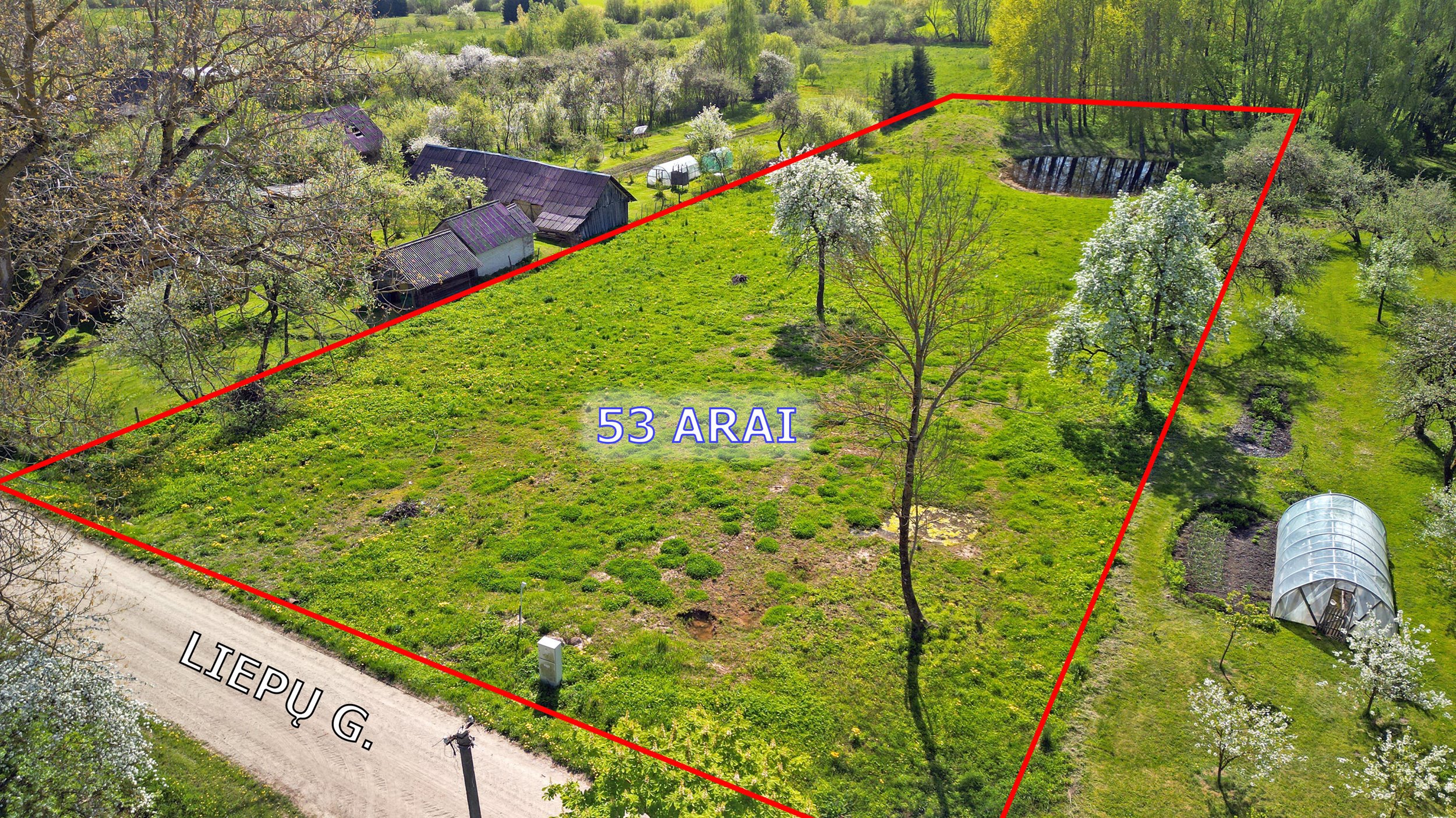 Galinėje sklypo dalyje auga berželiai, o šalia iškasto tvenkinuko puiki vieta pirtelei. Anksčiau čia buvo sodyba. Jos visi statiniai yra nugriauti, o dokumentuose palikome. Patogu tai, kad statinius galėsite rekonstuoti į B ar A energinio naudingumo klasę. Apie tai paaiškinsiu, jei tikrai domins šis sklypas.