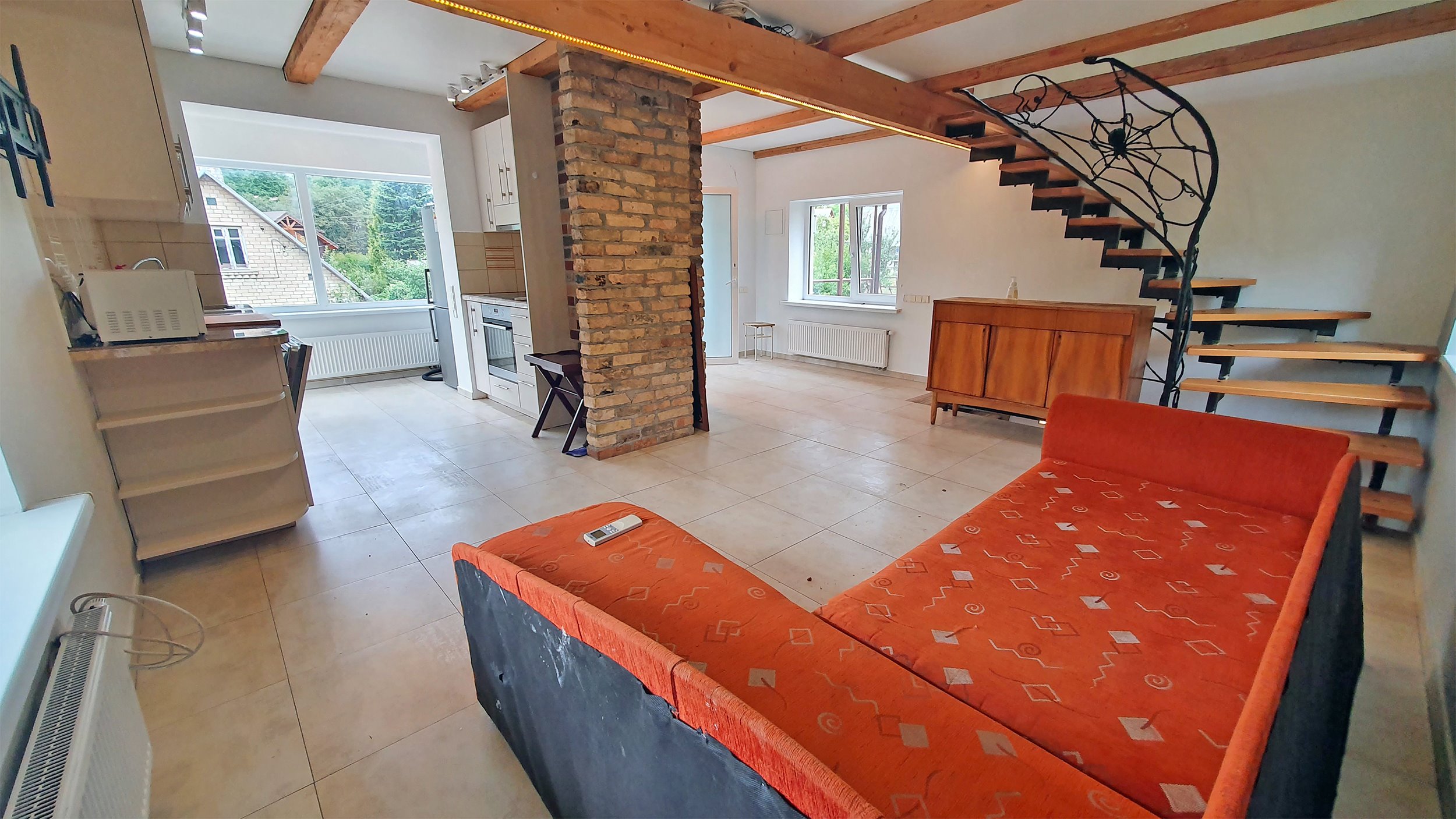 Pirmame aukšte : Kambarys, virtuvė, terasa.
