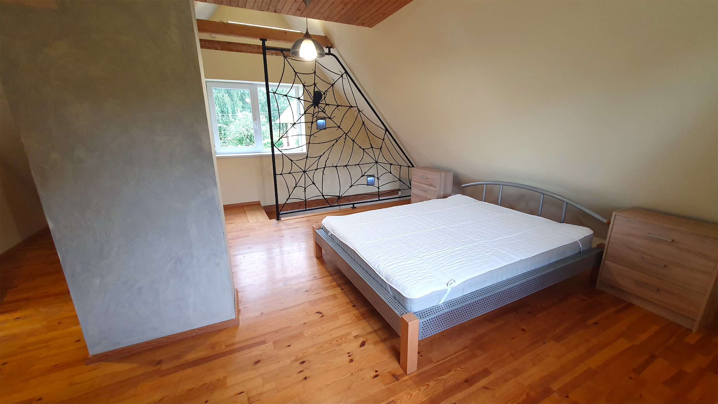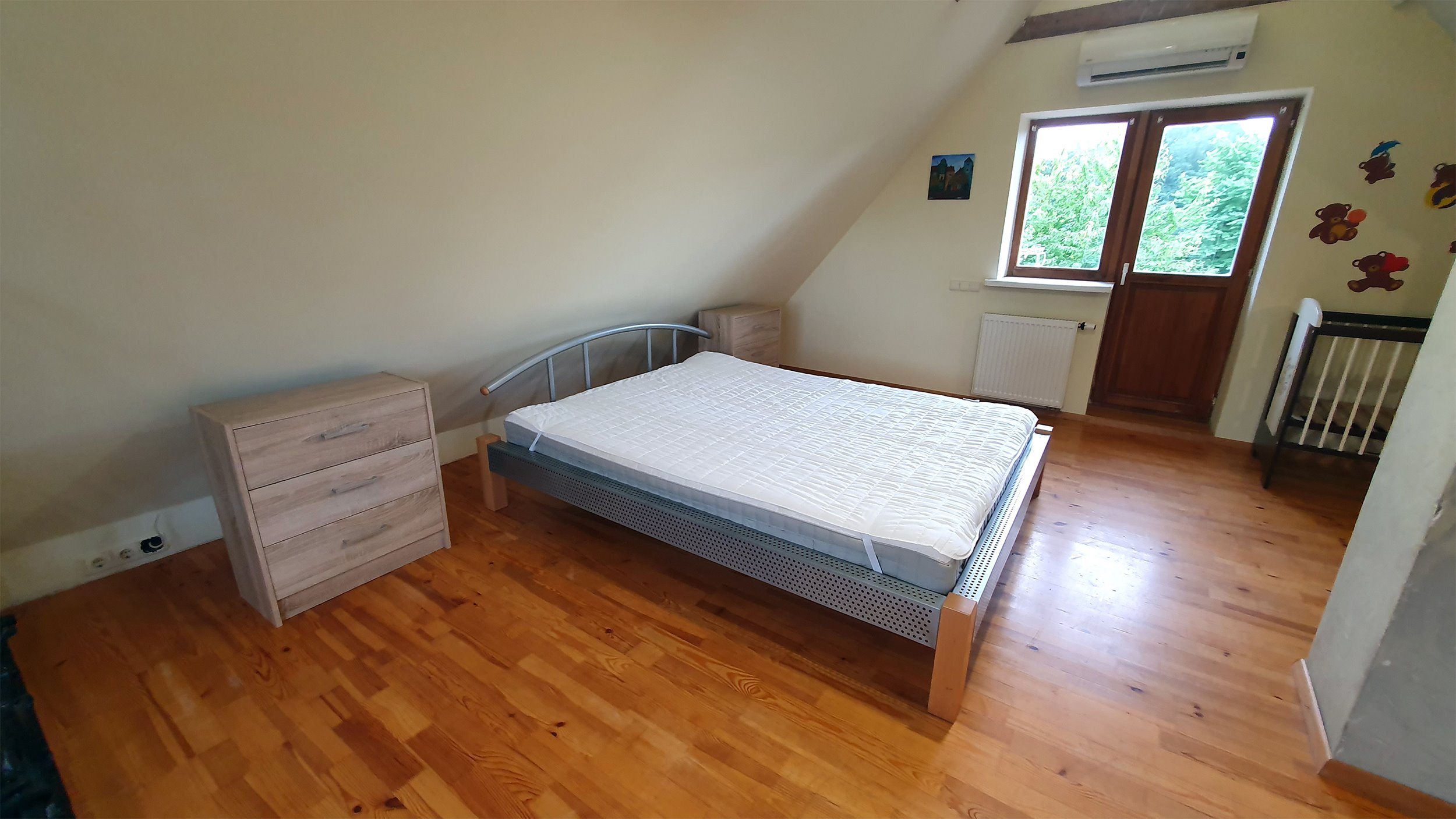 Antrame namo aukšte yra miegamasis, tualetas, vonia, balkonas.
