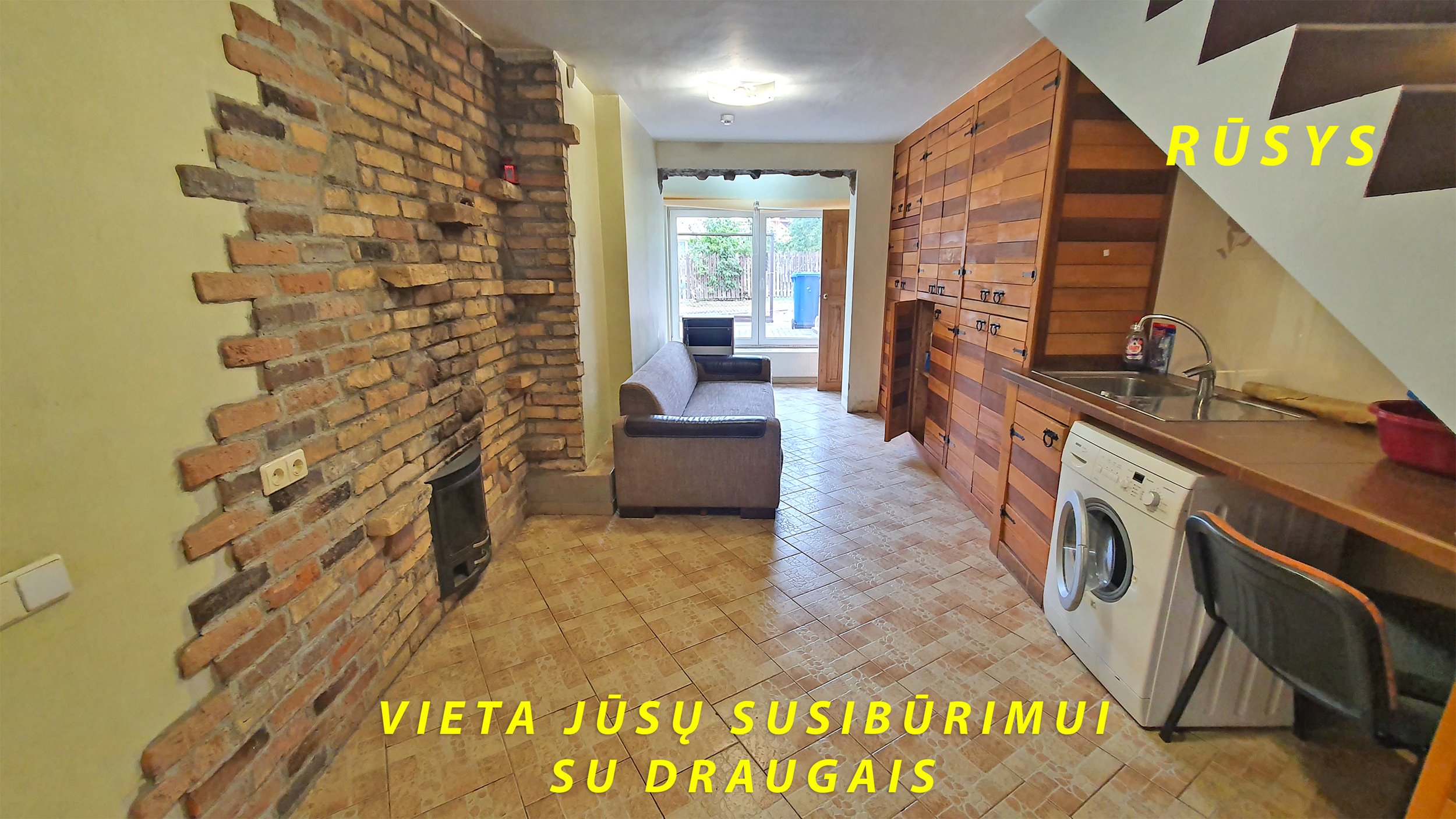 Rūsyje įrengtas tualetas, Mini virtuvė, pirtis, dušas.