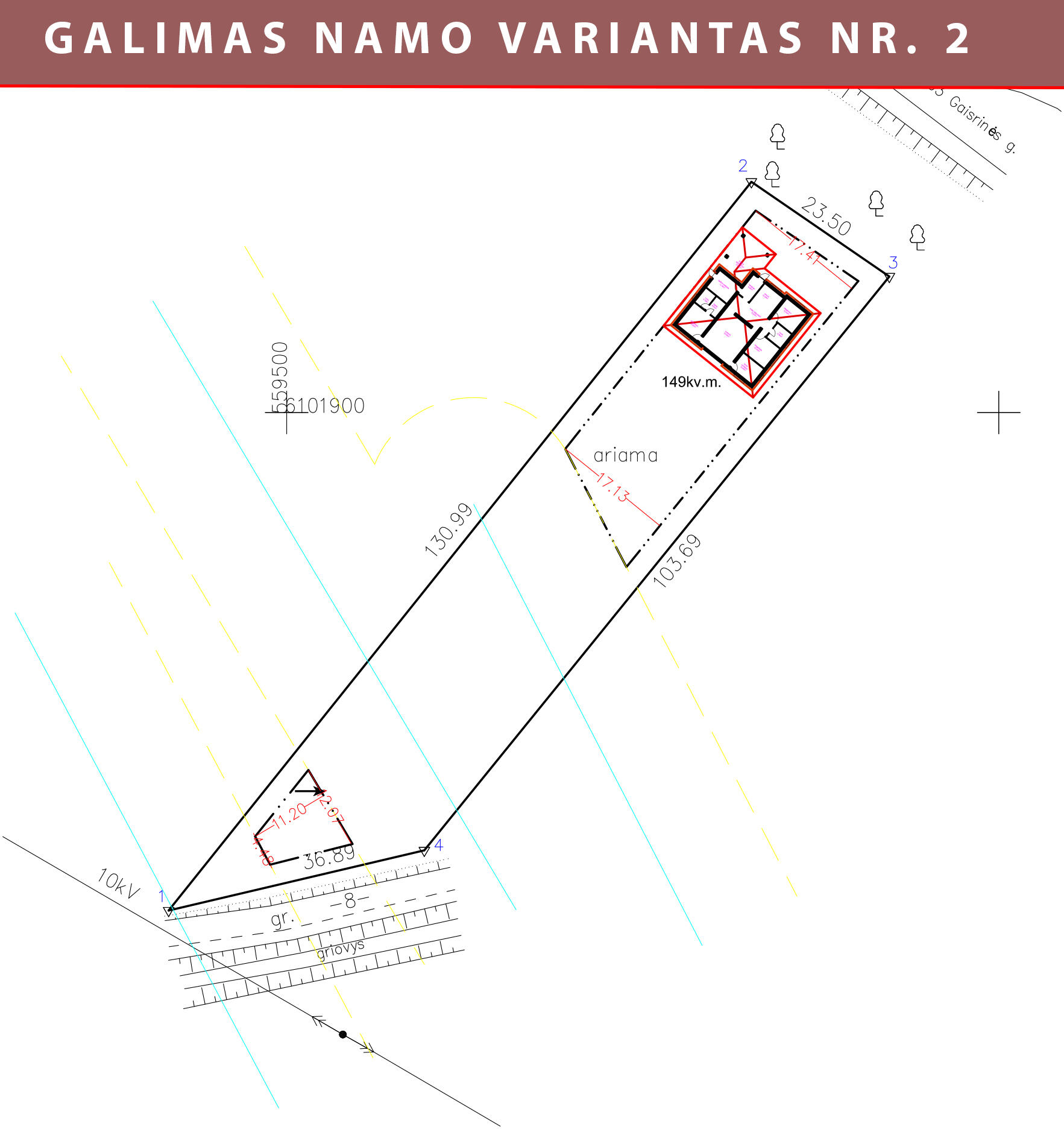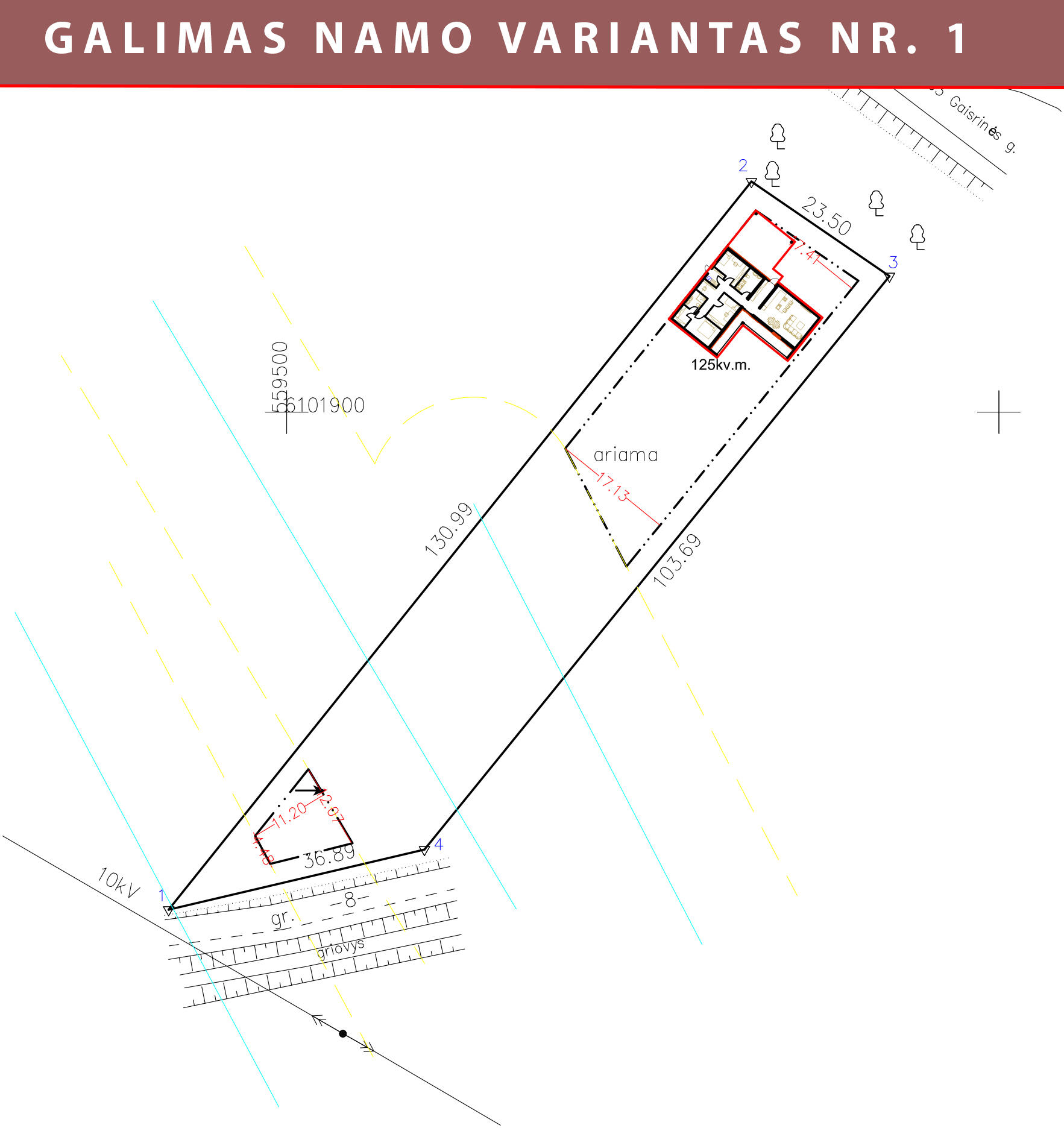 Užstatymo ploto užteks tiek vienbučiui tiek dvibučiui gyvenamajam namui. Nuotraukose parodyta, kaip galima įkomponuoti 125kv.m ir 149kv.m. Namą.
