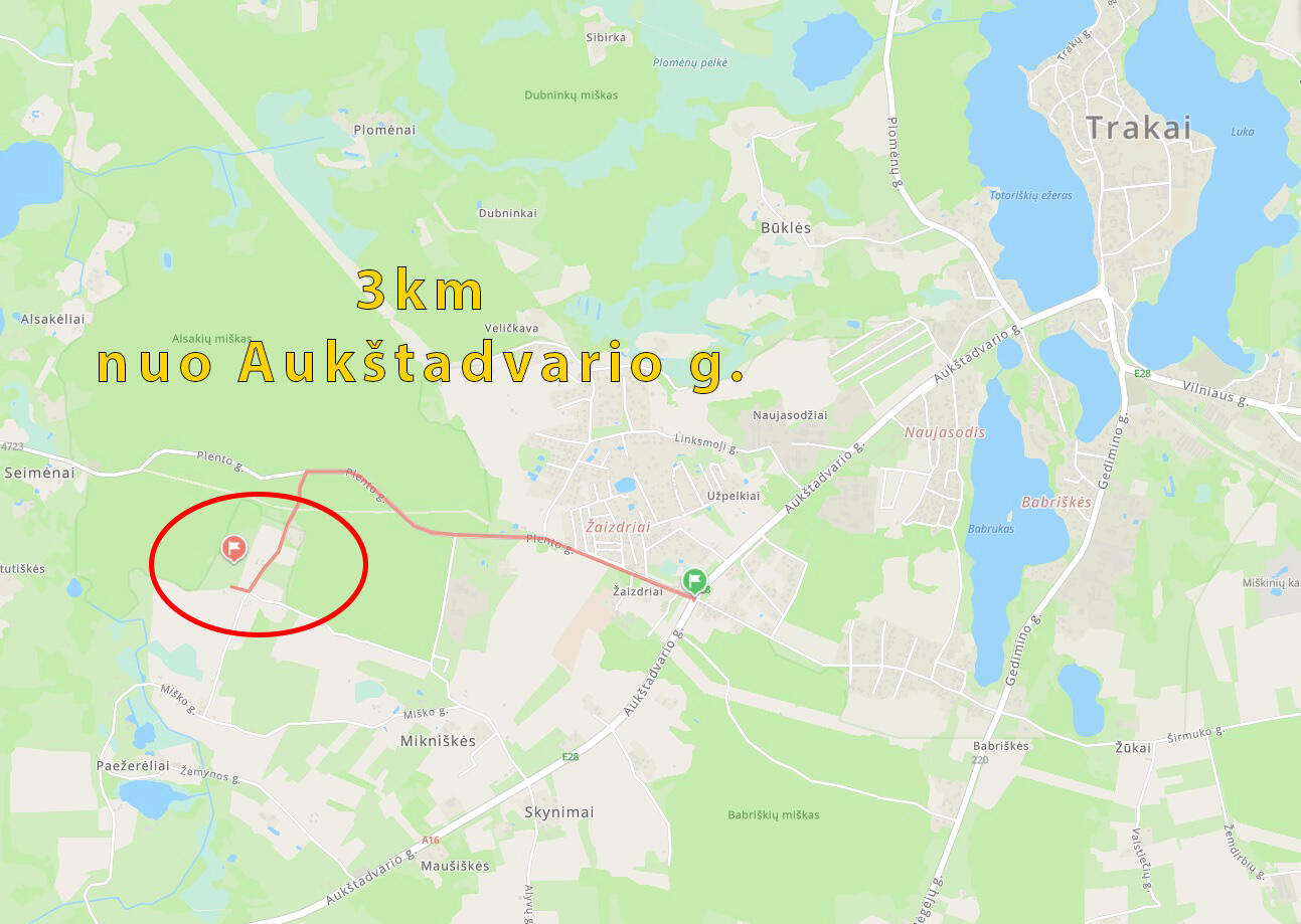 Iki asfaltuoto kelio Trakai – Aukštadvaris ~ 3 km,