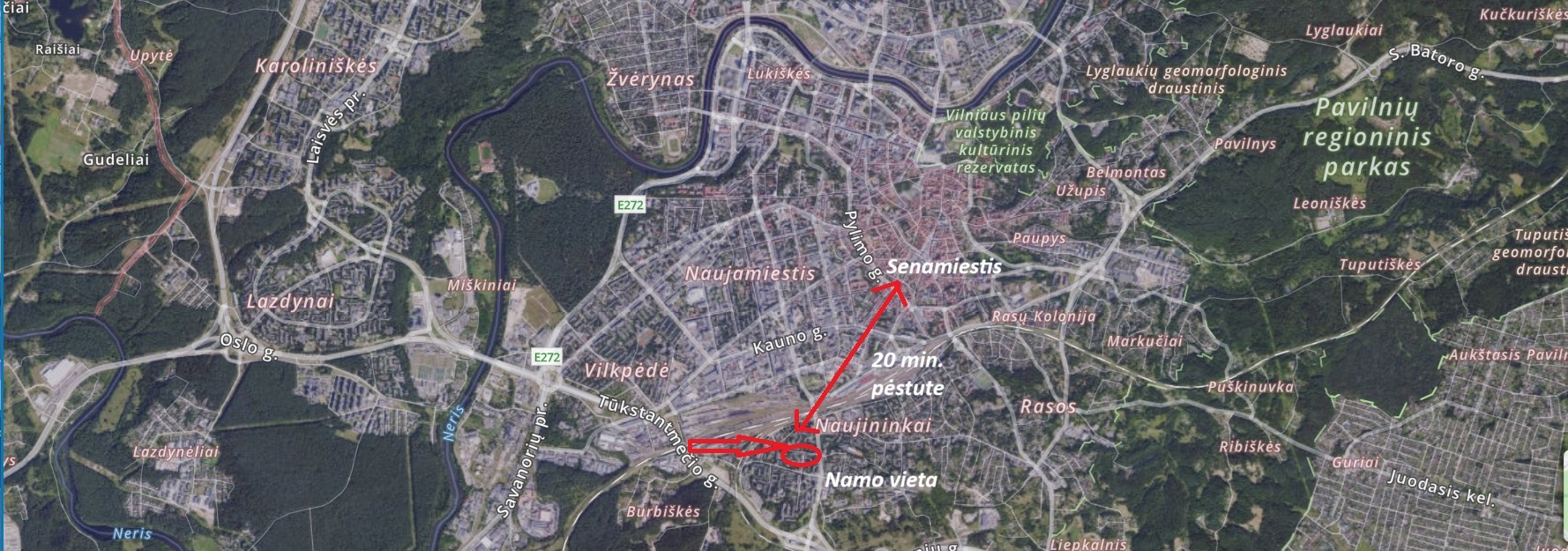 Vilniaus Senamiestį ir centrą pasieksite be jokių automobilių spūsčių vos per 5-10 min. automobiliu. Per 20-30 min. pėstute.