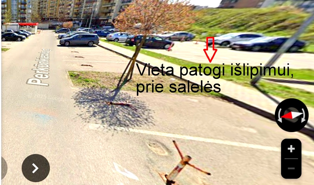 110 vieta prie salelės, kur bus patogus išlipimas, nes iš vienos pusės nebus kito automobilio.
