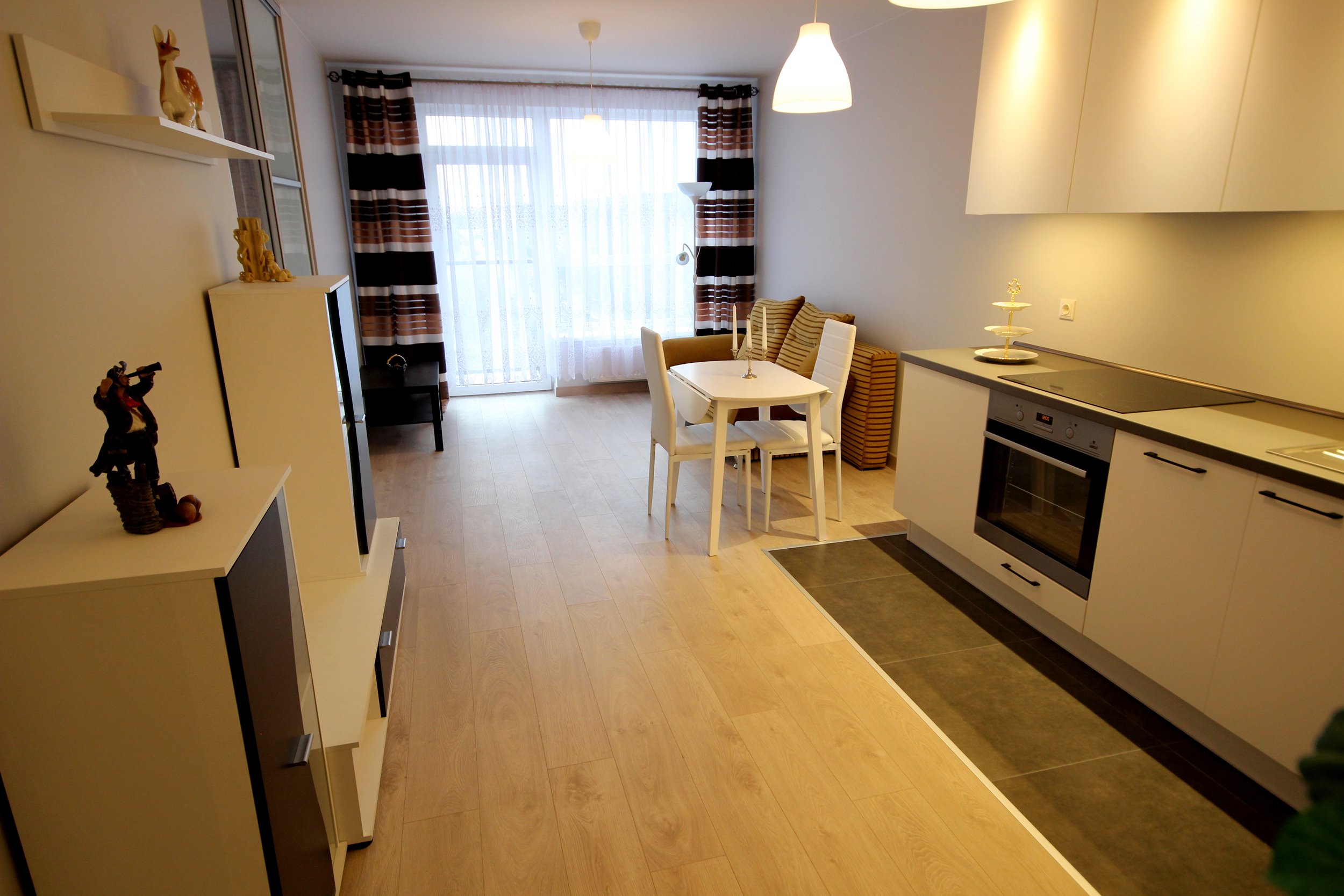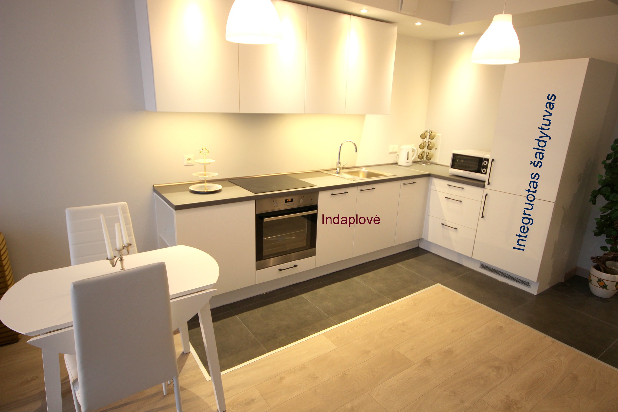 Butas ŠIUOLAIKIŠKAI ĮRENGTAS, NAUJI BALDAI IR BUITINĖ TECHNIKA, skalbimo mašina, šaldytuvas, viryklė, INDAPLOVĖ.