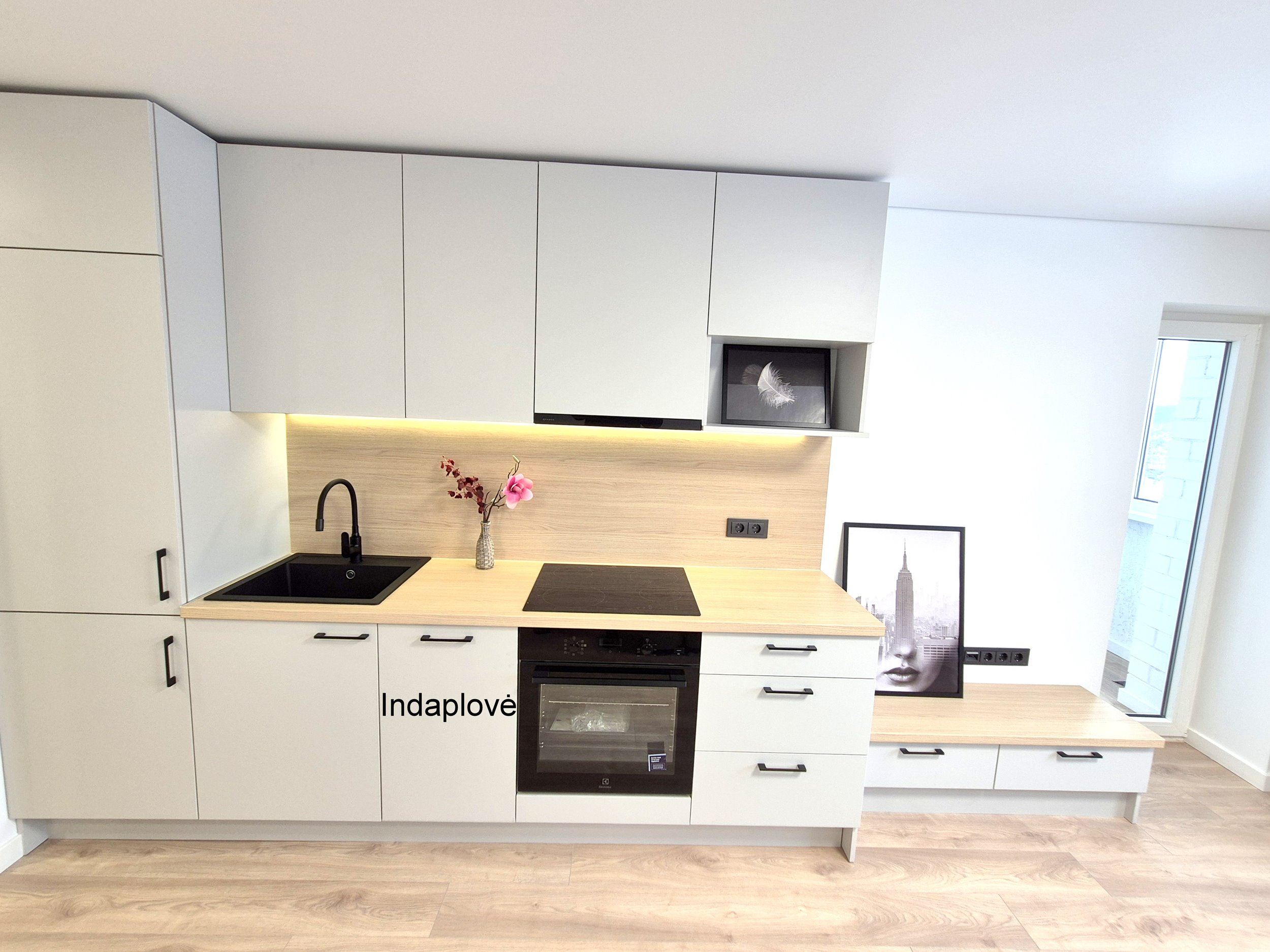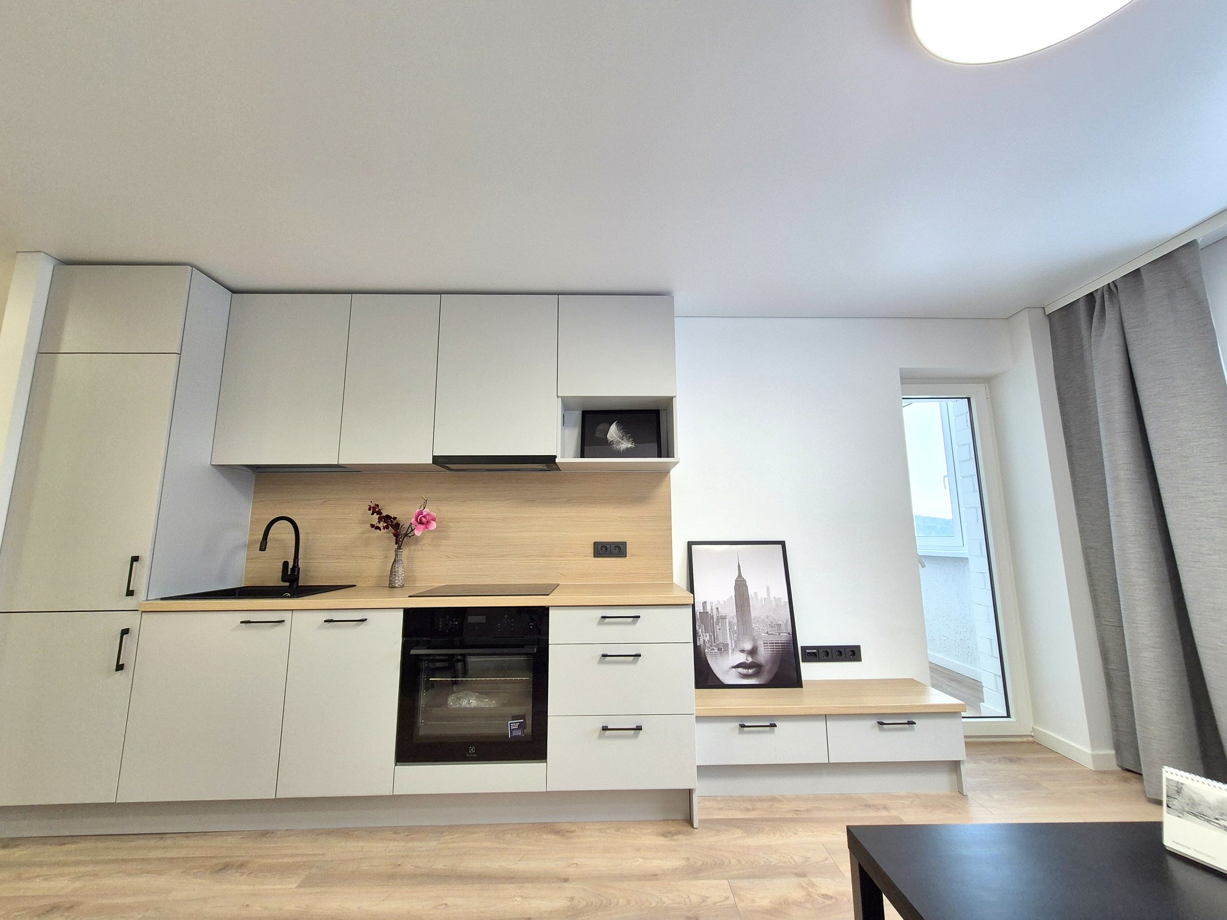 Butas parduodamas SU BALDAIS, VIRTUVĖS KOMPLEKTU SU INTEGRUOTA BUITINE TECHNIKA, ŠALDYTUVU, ORKAITE, KAITLENTE, INDAPLOVE,SKALBIMO - DŽIOVINIMO MAŠINA.